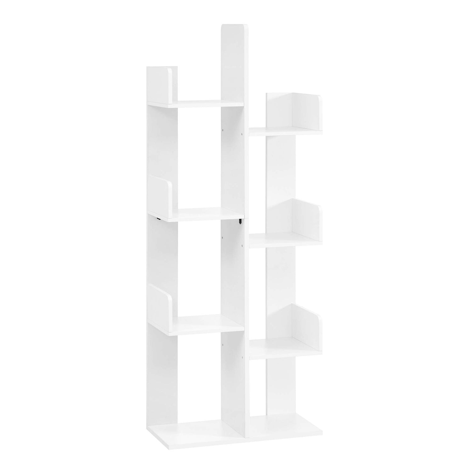 VASAGLE Bookcase, Tree-Shaped Bookshelf with 8 Storage Shelves, Rounded Corners, White 9.8D x 19.7W x 55.1H in, Engineered Wood