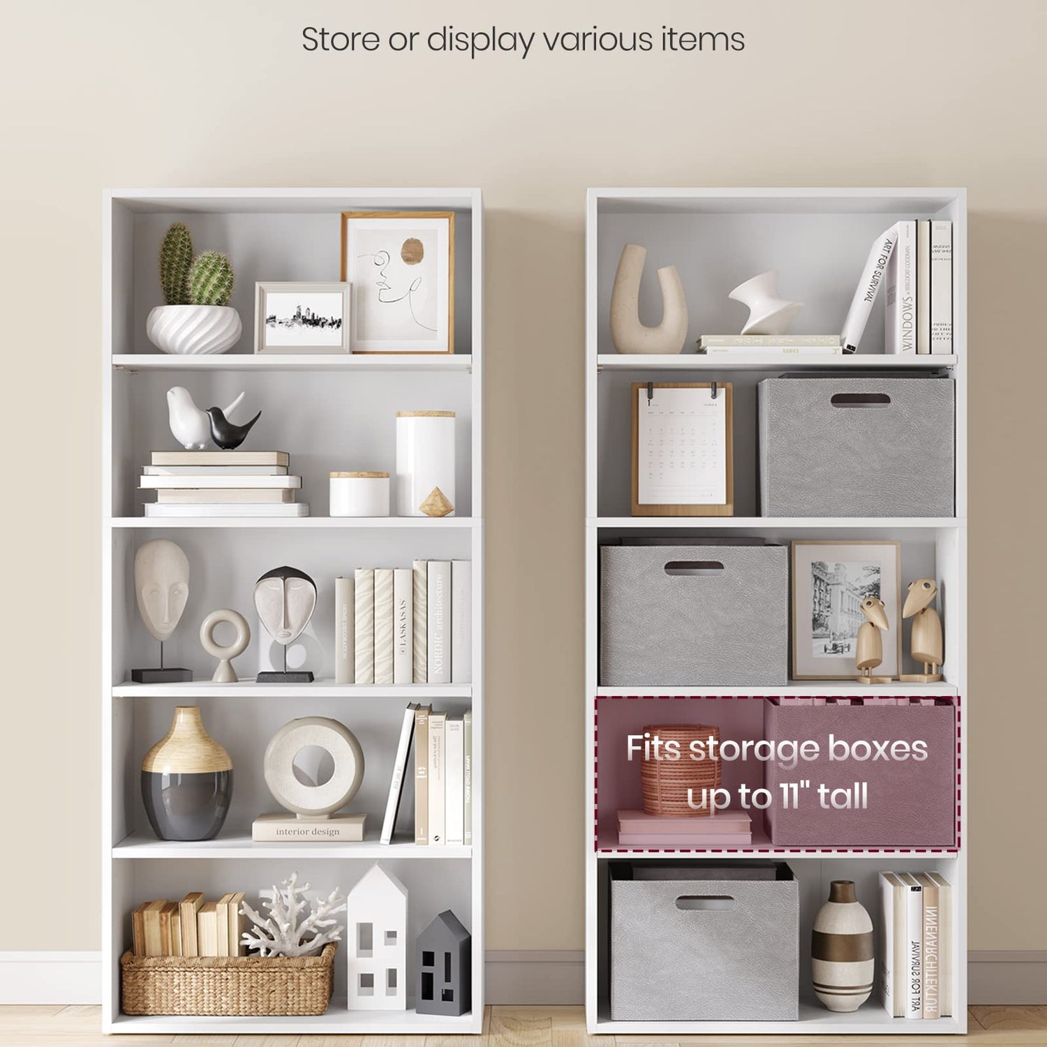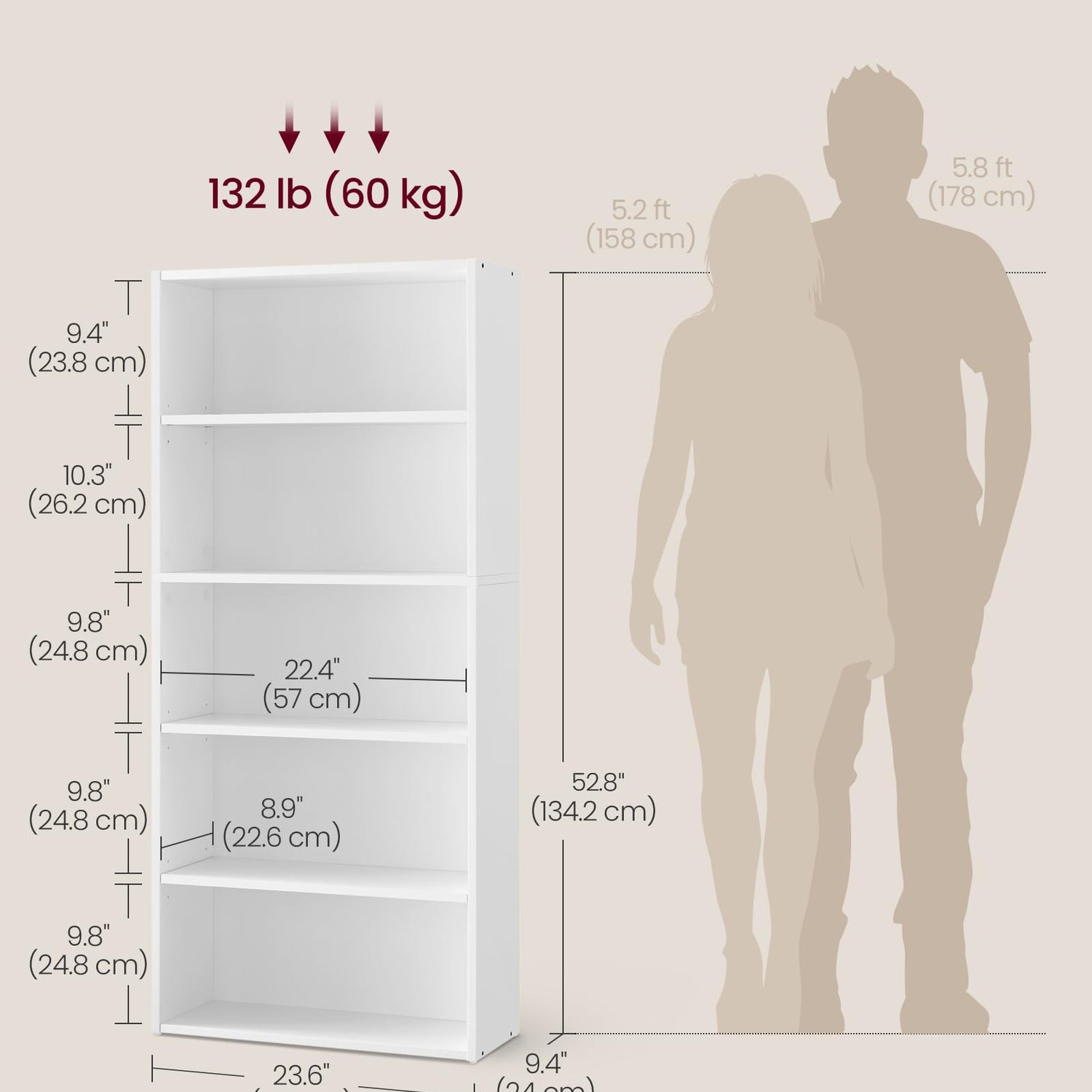 VASAGLE Bookshelf, 23.6 Inches Wide, 5-Tier Open Bookcase with Adjustable Storage Shelves, Floor Standing Unit, Cloud White ULBC165T14