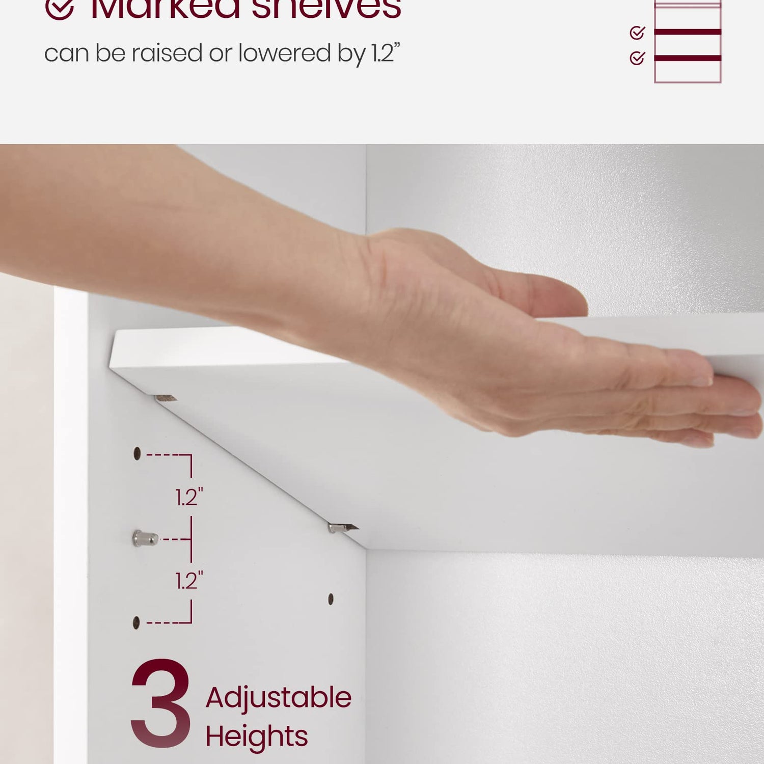 - [Adjustable Shelves] The first, third, and fourth shelves can be adjusted to 3 height positions (up or down 1.2"), making the shelf spacing adjustable between 8.7-11", so tall books, artwork, or storage boxes can easily fit in this bookshelf