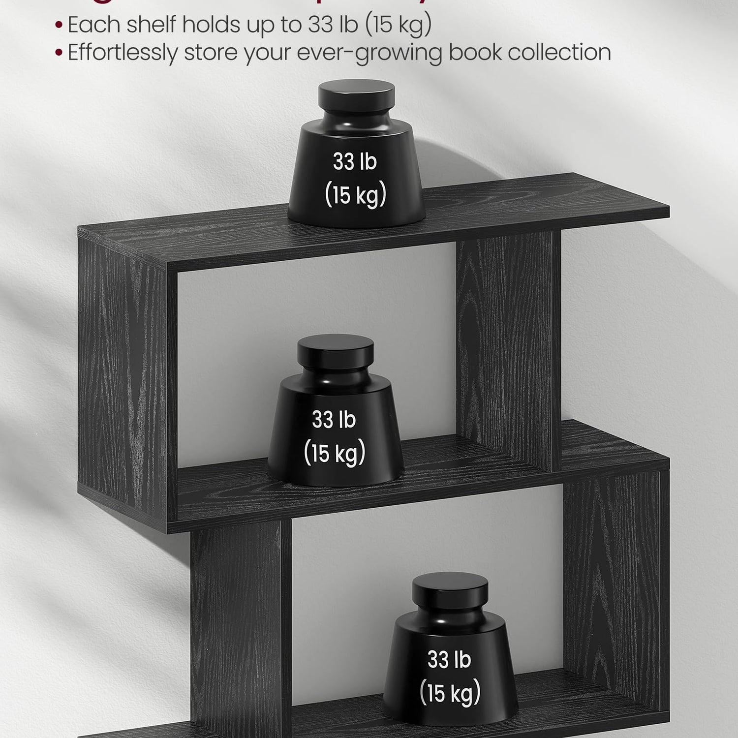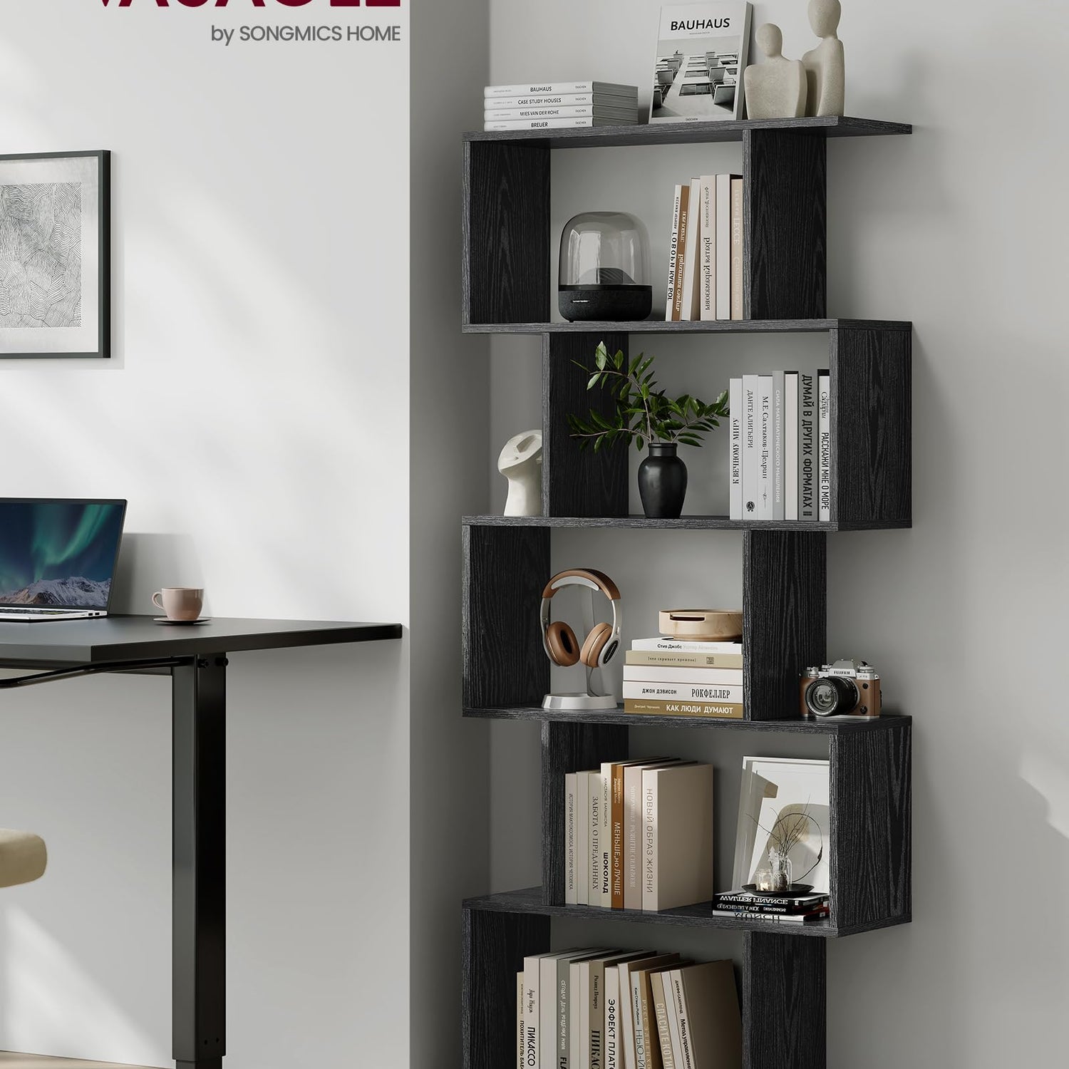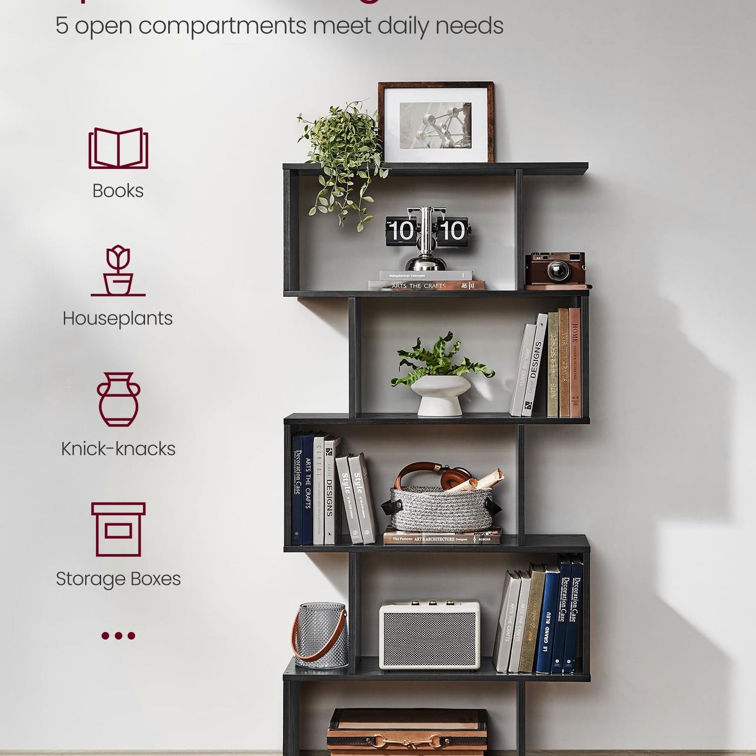 VASAGLE Bookshelf, 5-Tier Bookcase, Tall Display Shelf, Freestanding Storage Shelf, Room Divider, for Home Office, Living Room, Bedroom, Study, Ebony Black ULBC062T56
