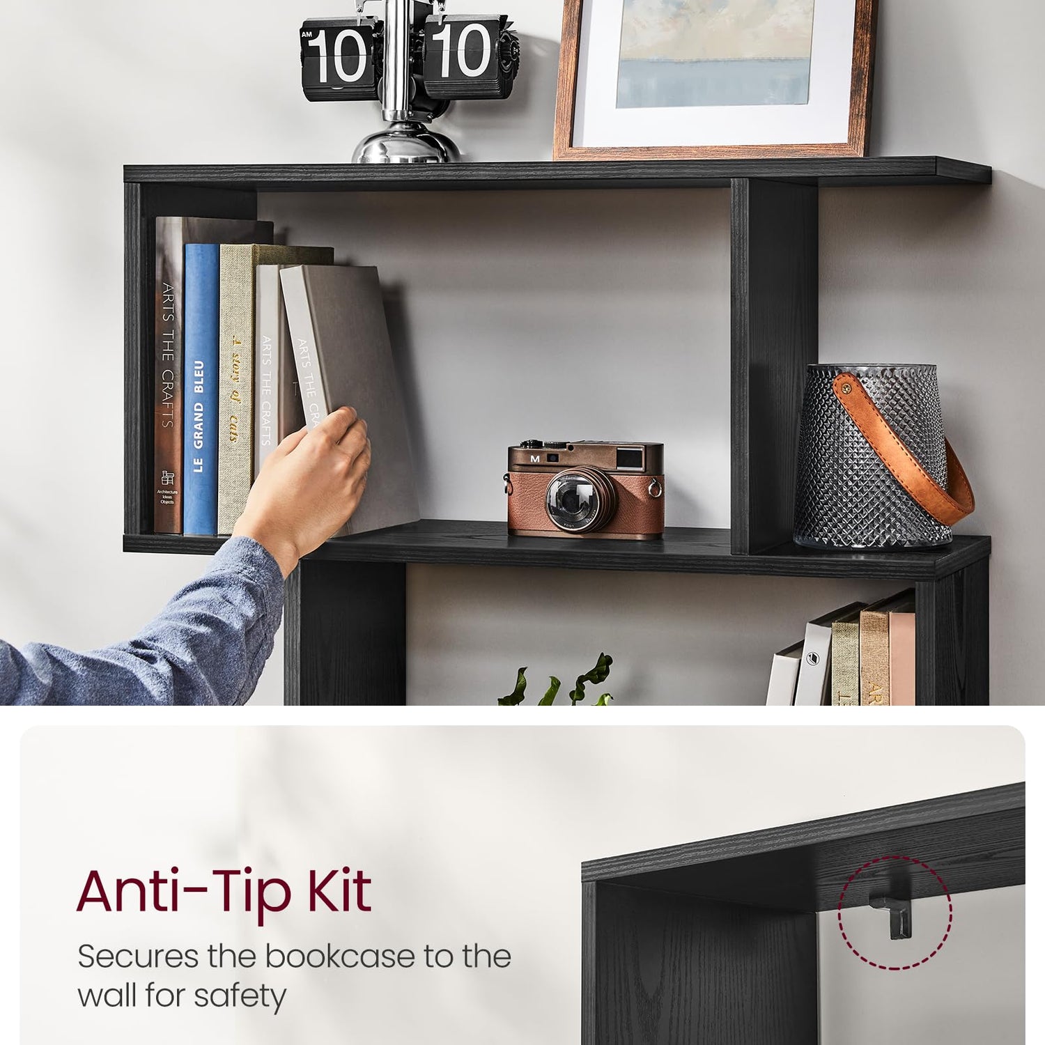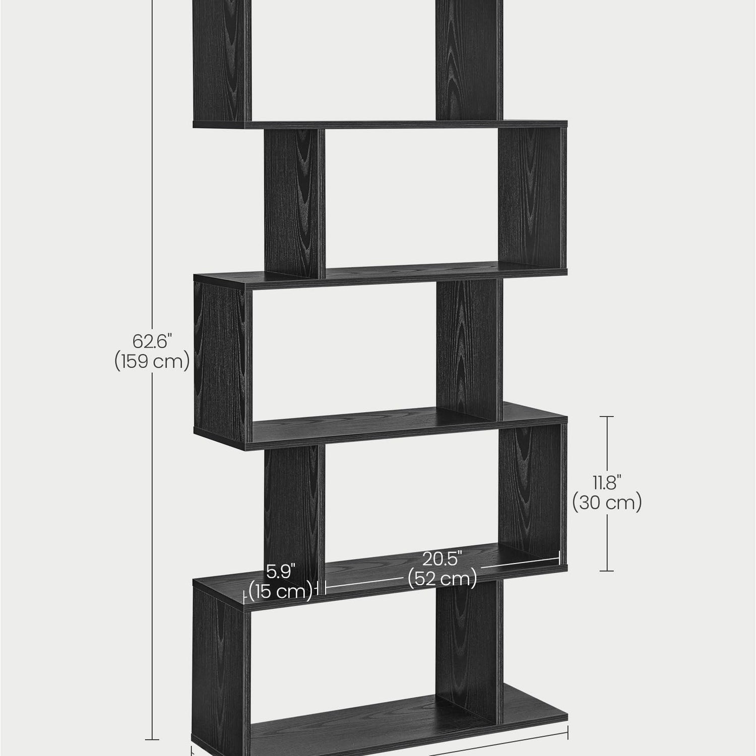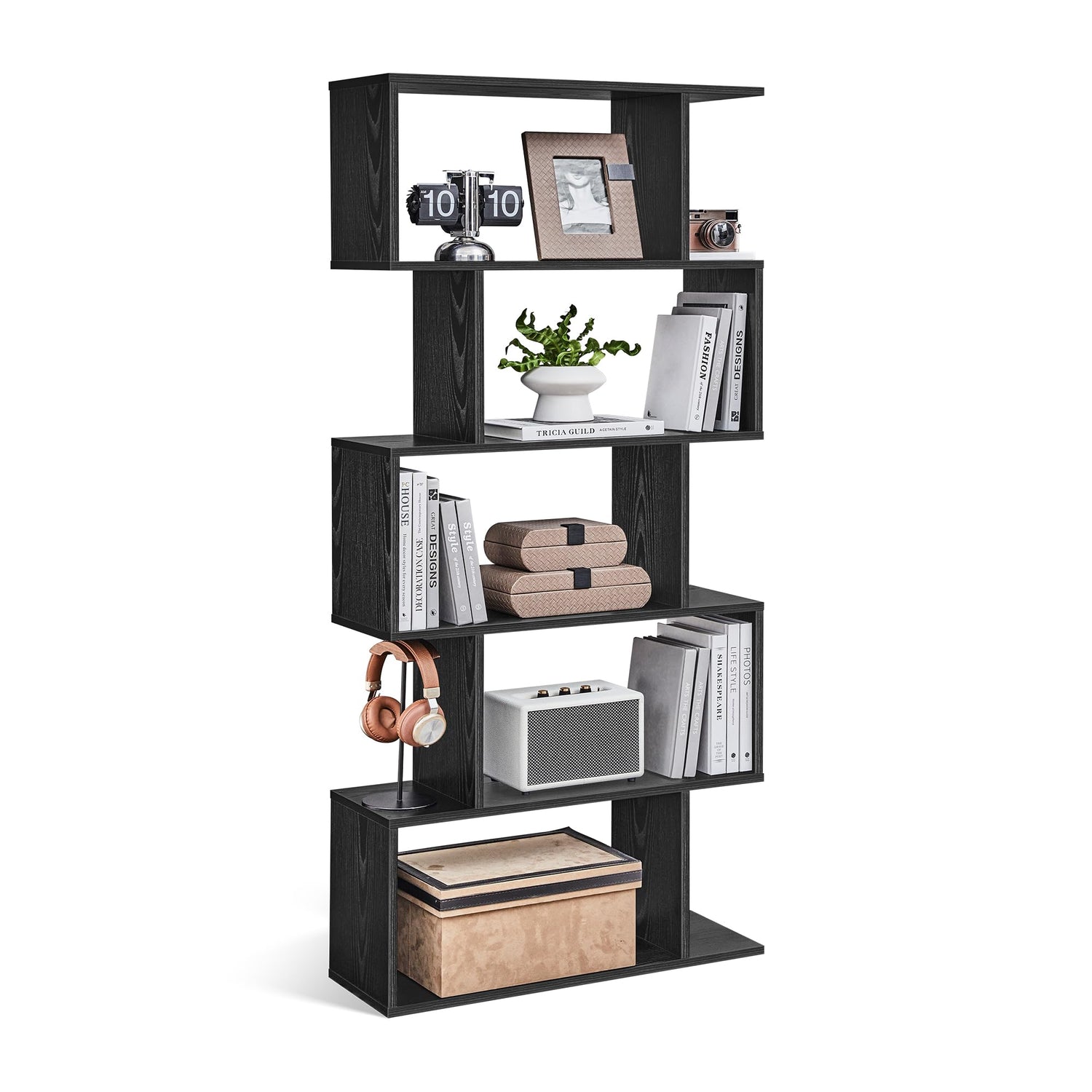 VASAGLE Bookshelf, 5-Tier Bookcase, Tall Display Shelf, Freestanding Storage Shelf, Room Divider, for Home Office, Living Room, Bedroom, Study, Ebony Black ULBC062T56