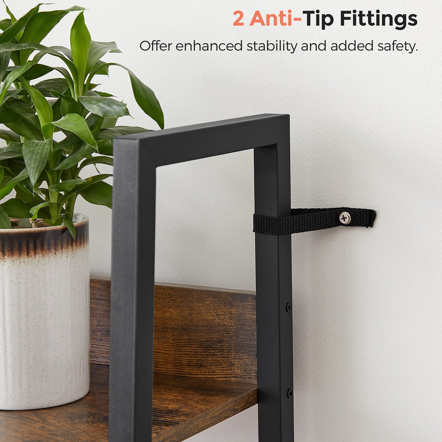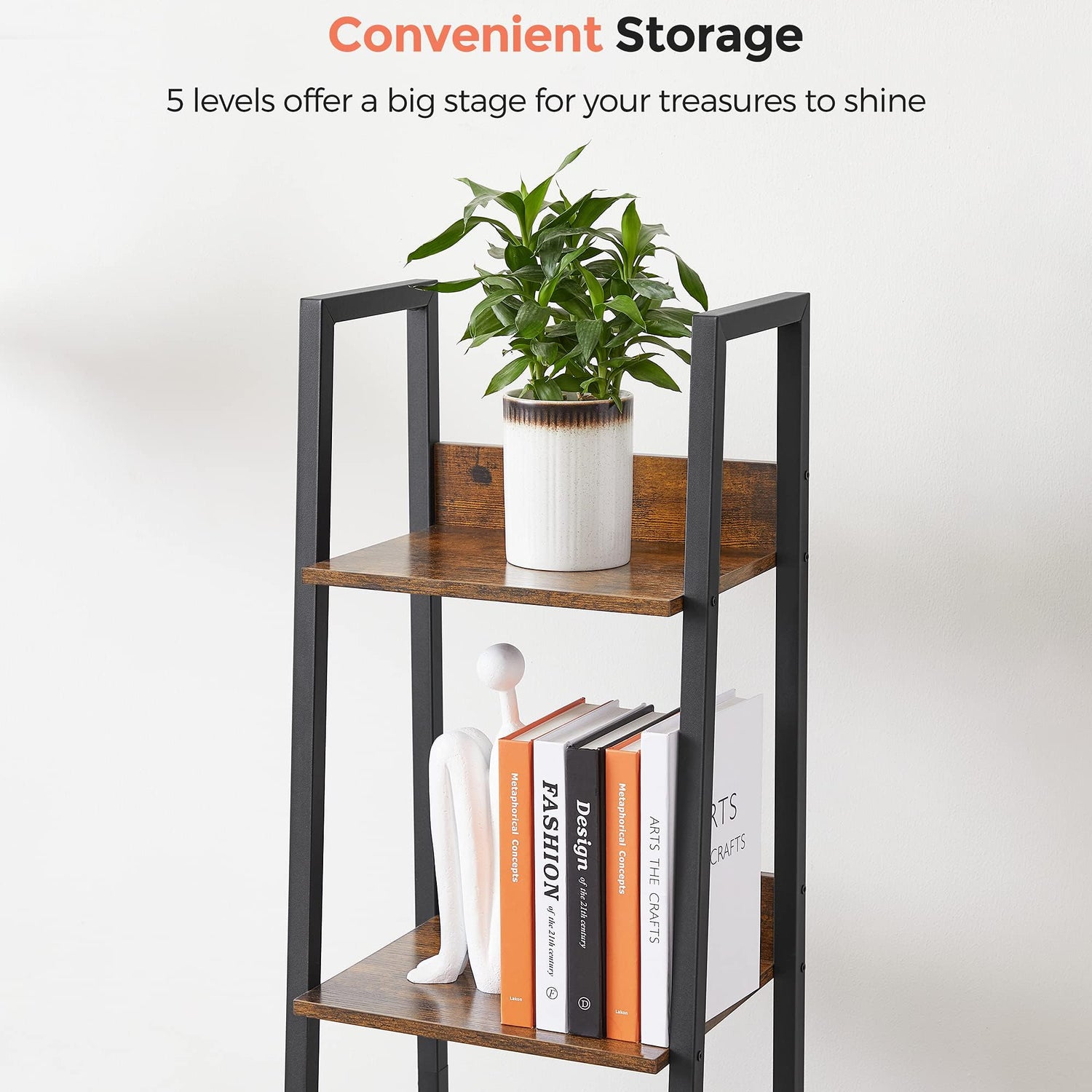 VASAGLE Bookshelf, 5-Tier Narrow Book Shelf, 11.8 x 13.3 x 66.9 Inches, Ladder Shelf for Home Office, Living Room, Bedroom, Kitchen, Rustic Brown and Ink Black ULLS109B01