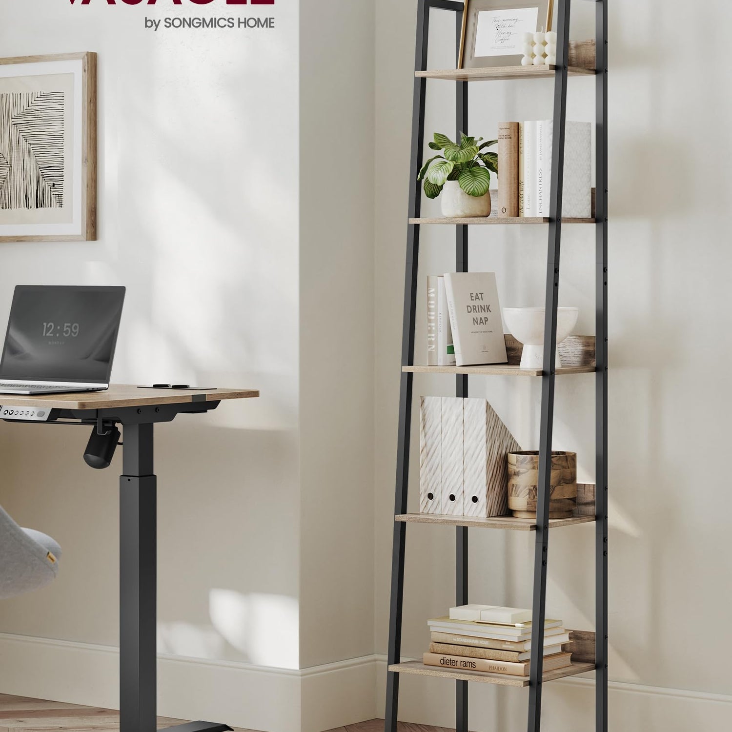 VASAGLE Bookshelf, 5-Tier Narrow Bookcase, Ladder Shelf for Home Office, Living Room, Bedroom, Kitchen, Camel Brown and Black ULLS109B50V2