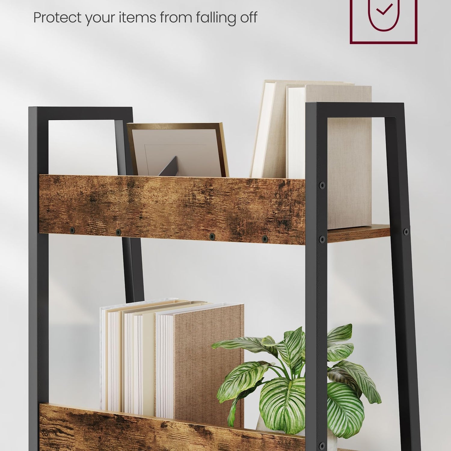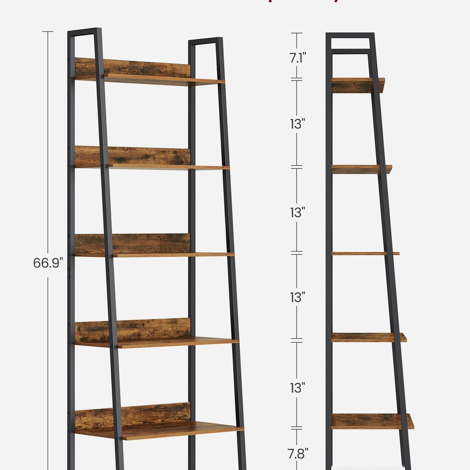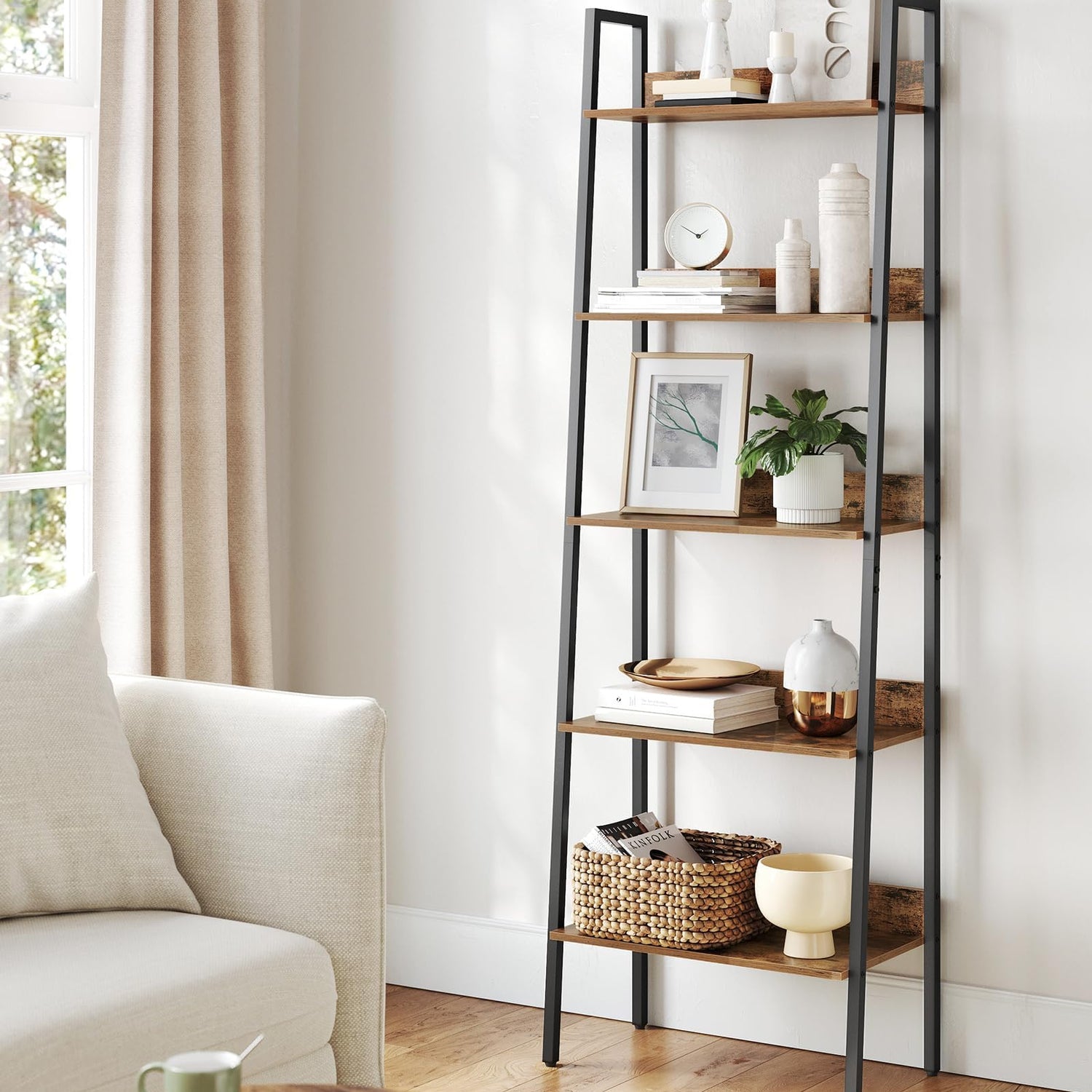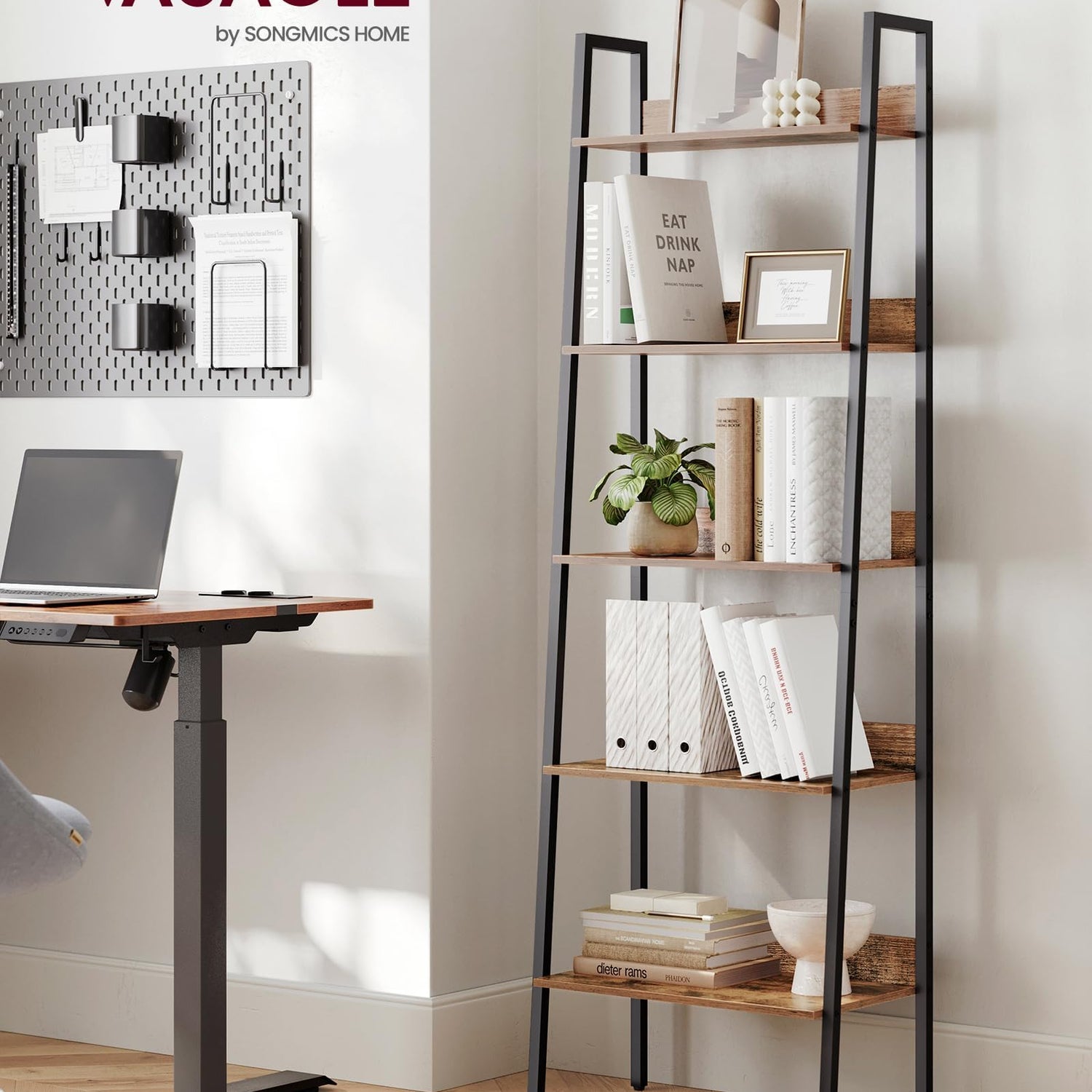VASAGLE Bookshelf, 5-Tier Narrow Bookcase, Ladder Shelf for Home Office, Living Room, Bedroom, Kitchen, Rustic Brown and Ink Black ULLS067B01
