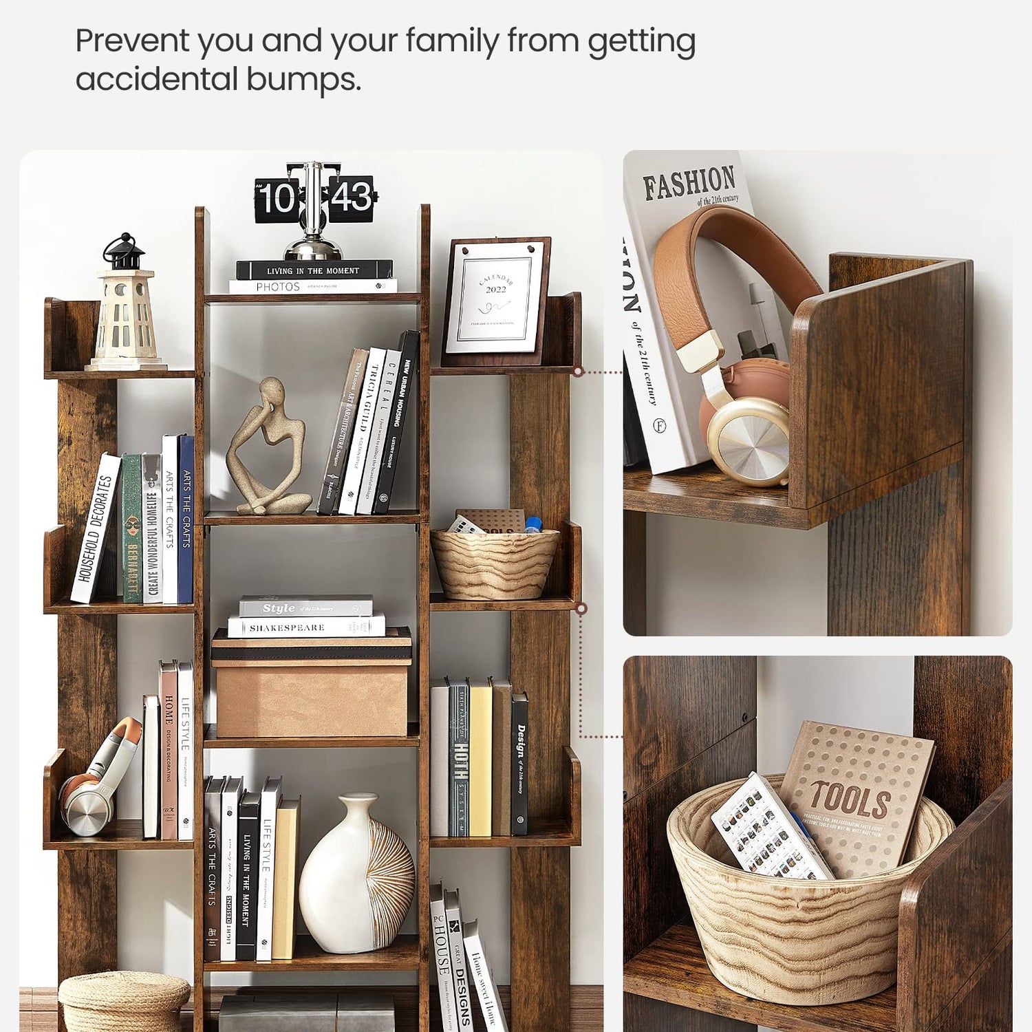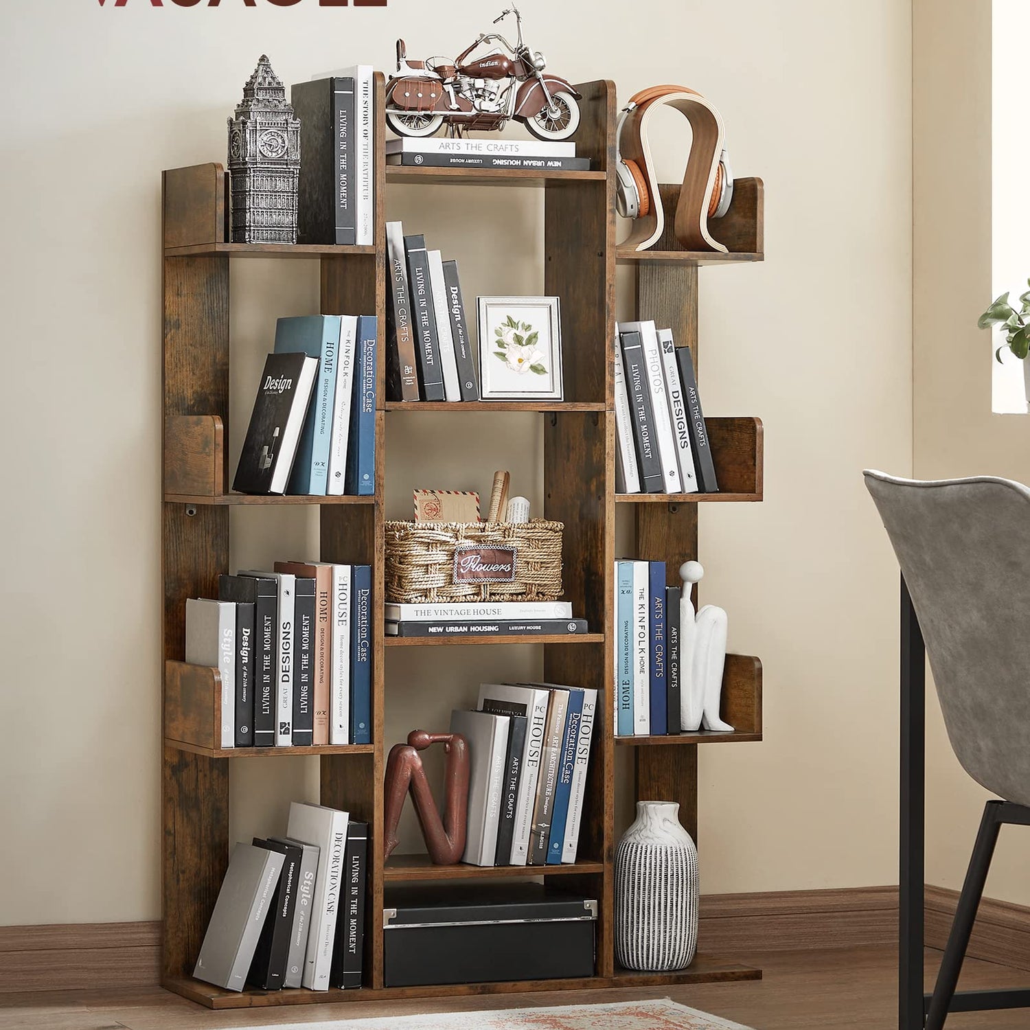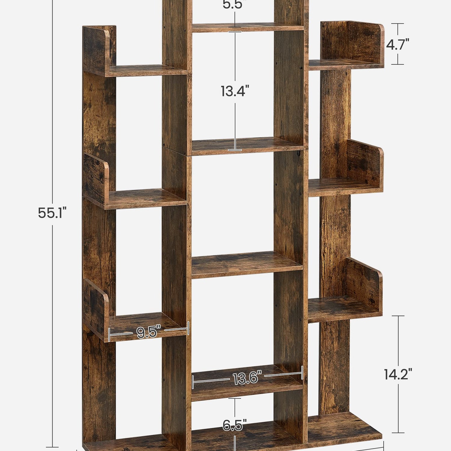 VASAGLE Tree-Shaped Bookshelf with 13 Shelves in Rustic Brown