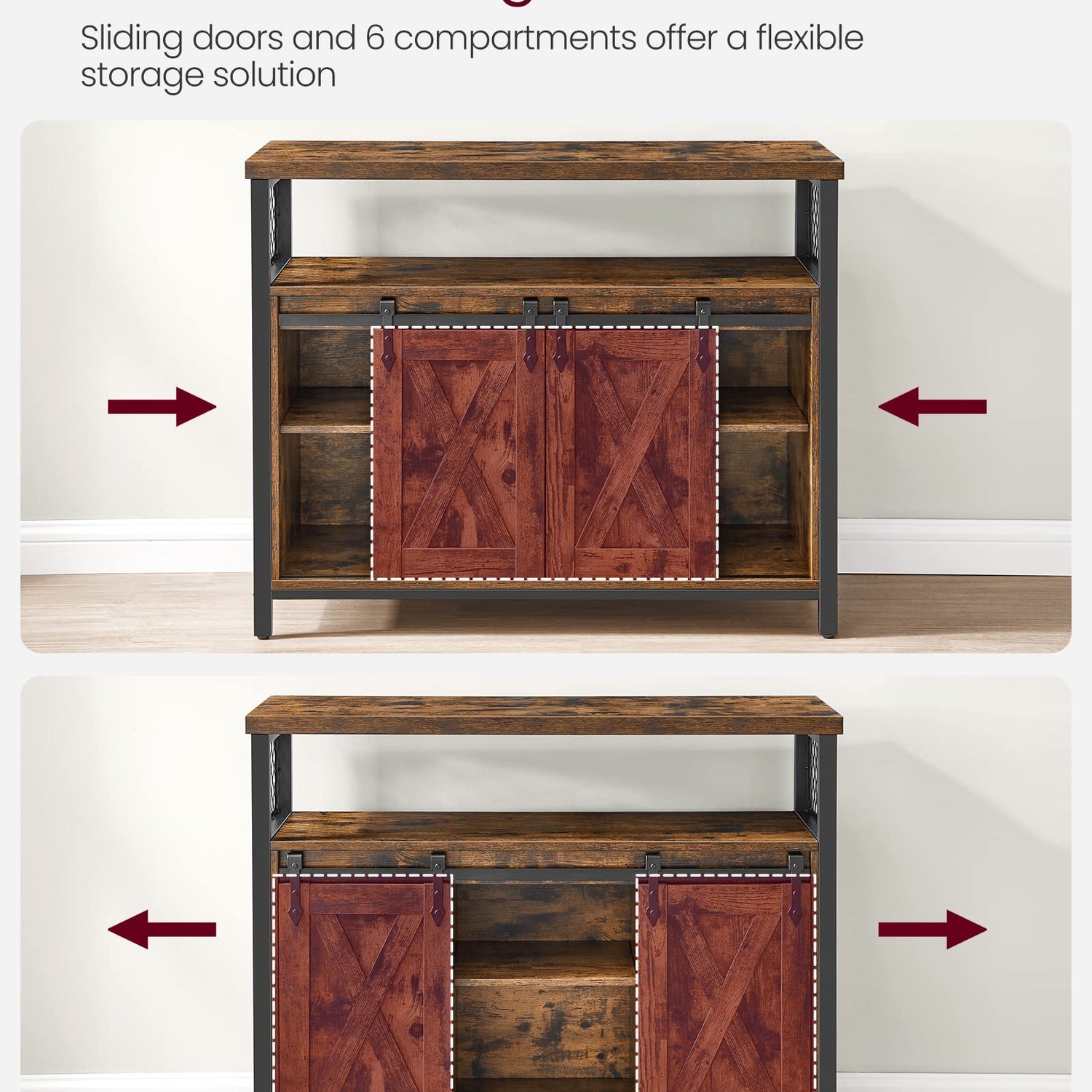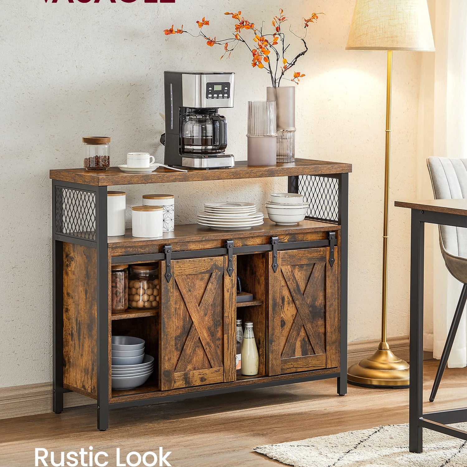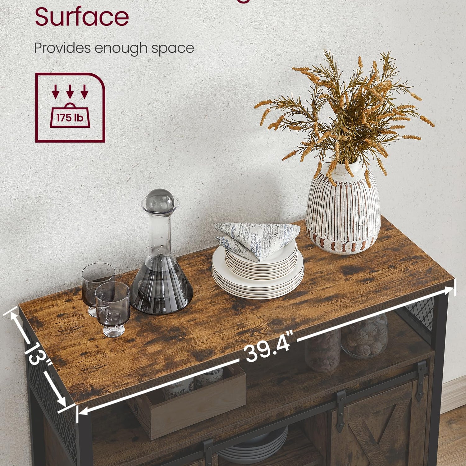 VASAGLE Buffet Cabinet, Storage Cabinet, Sideboard with 2 Sliding Barn Doors, Adjustable Shelves, 13 x 39.4 x 31.5 Inches, for Living Room, Rustic