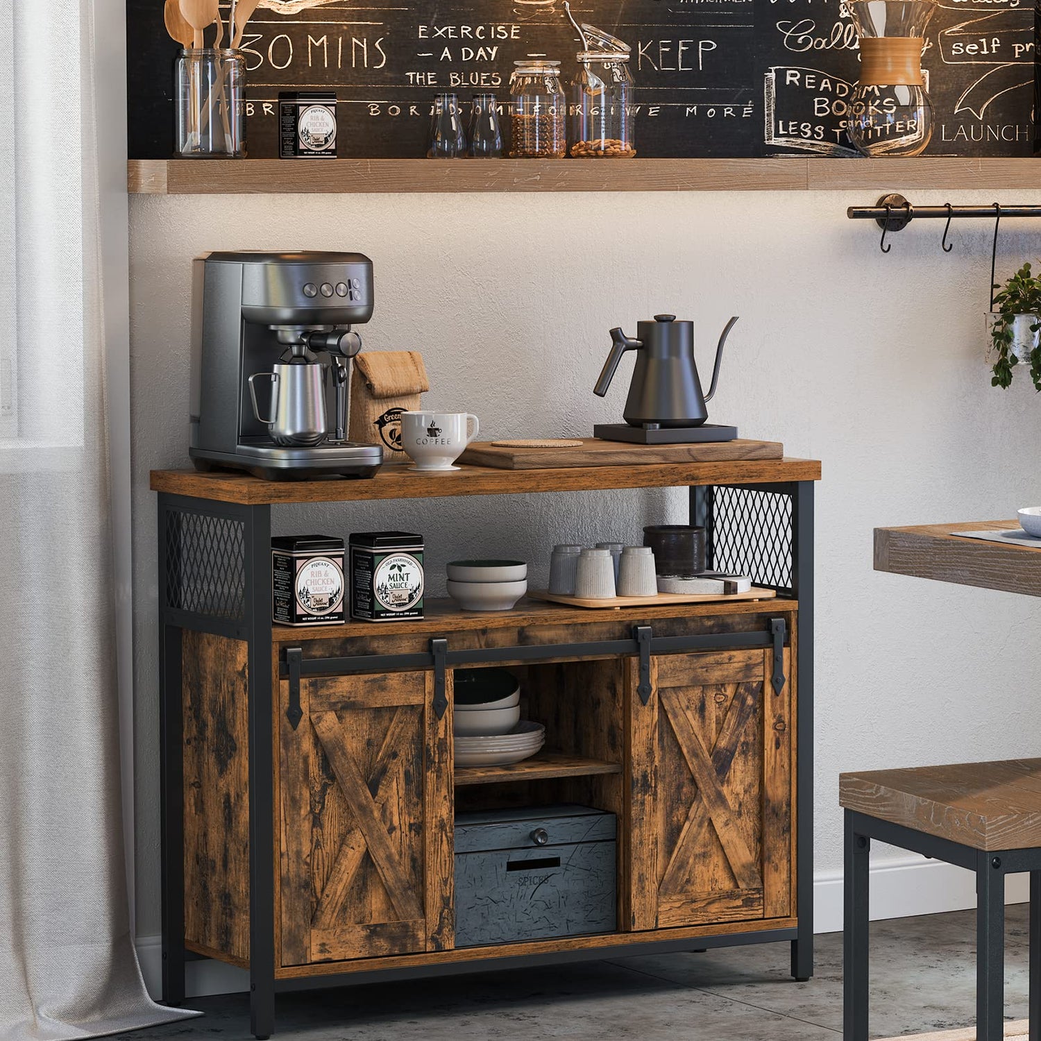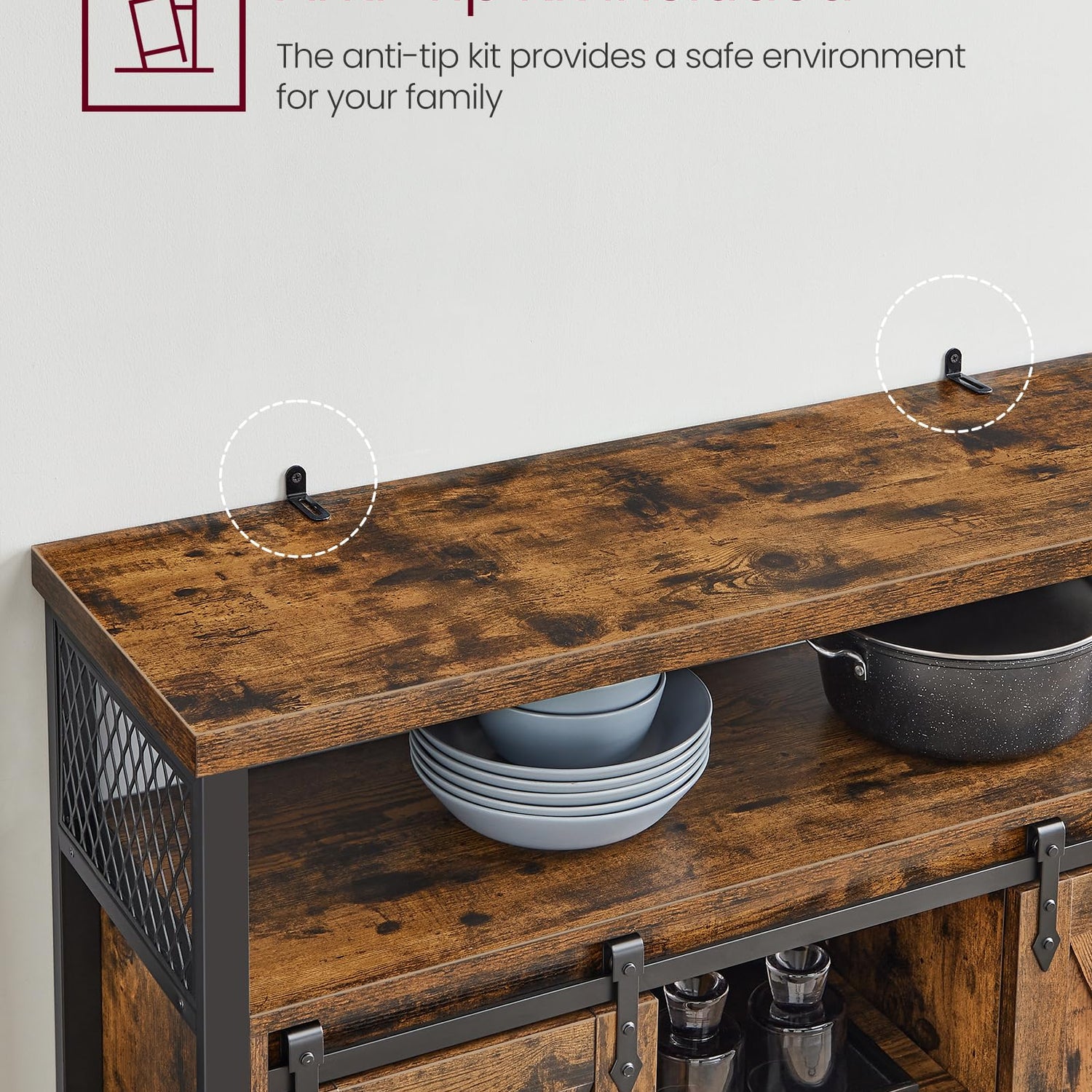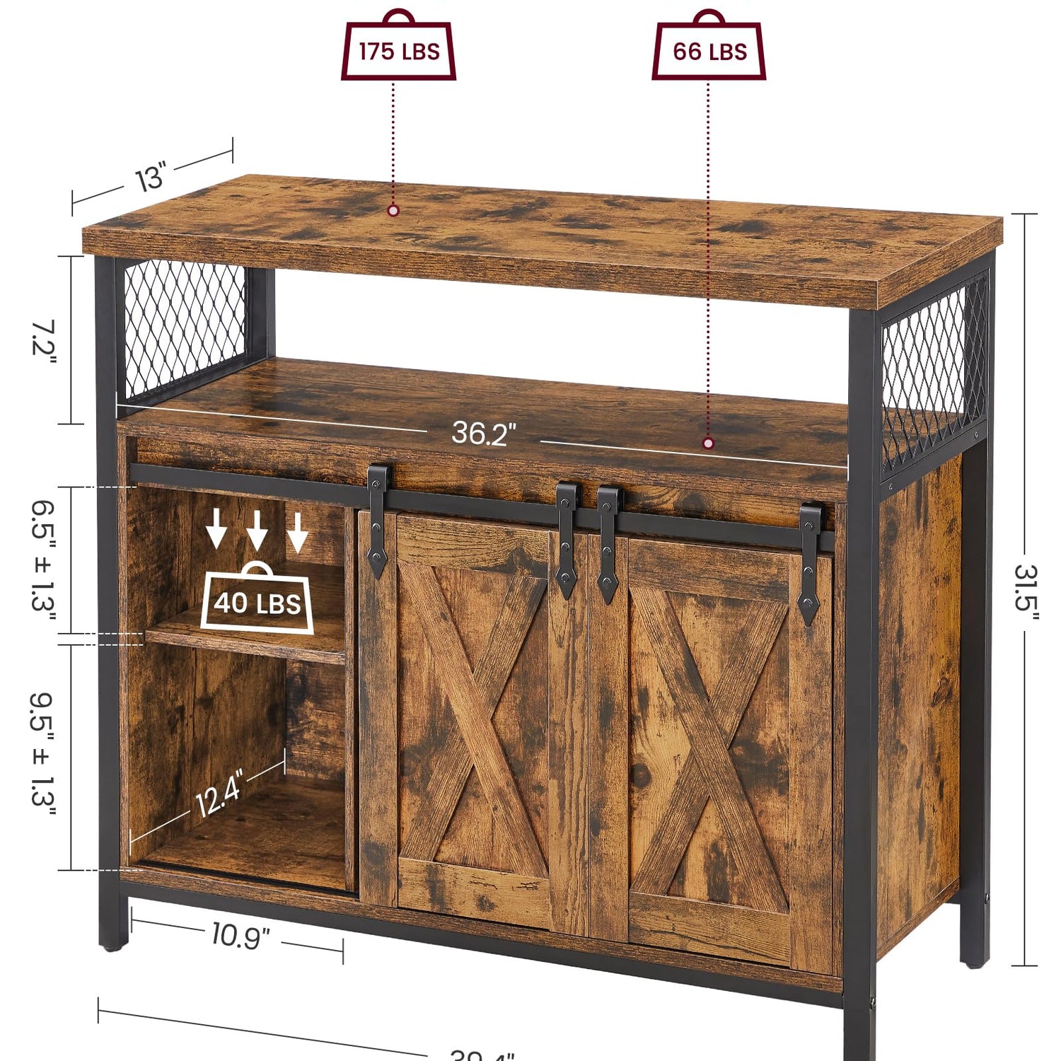 VASAGLE Buffet Cabinet, Storage Cabinet, Sideboard with 2 Sliding Barn Doors, Adjustable Shelves, 13 x 39.4 x 31.5 Inches, for Living Room, Rustic