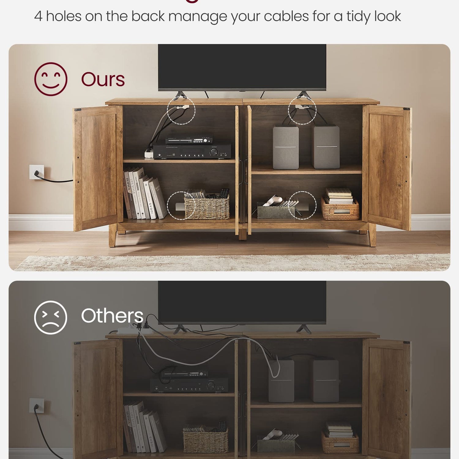 • [Hidden Cables for a Tidy Space] The buffet cabinet comes with 4 cable holes on the back, allowing cords to pass through and stay out of sight. You can even place a TV up to 65" on the stand without cables detracting from your home's aesthetic appeal
