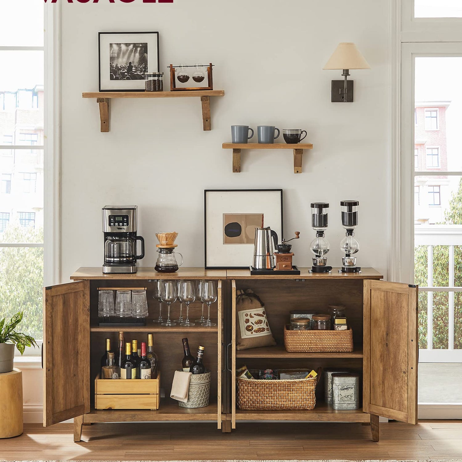 VASAGLE Buffet Storage Cabinet, 15.7" D x 59" W x 31.5" H Credenza Sideboard Table, Kitchen Cupboard with Adjustable Shelves for Living Room, Dining Room, Entryway, Rustic Walnut ULSC381T41
