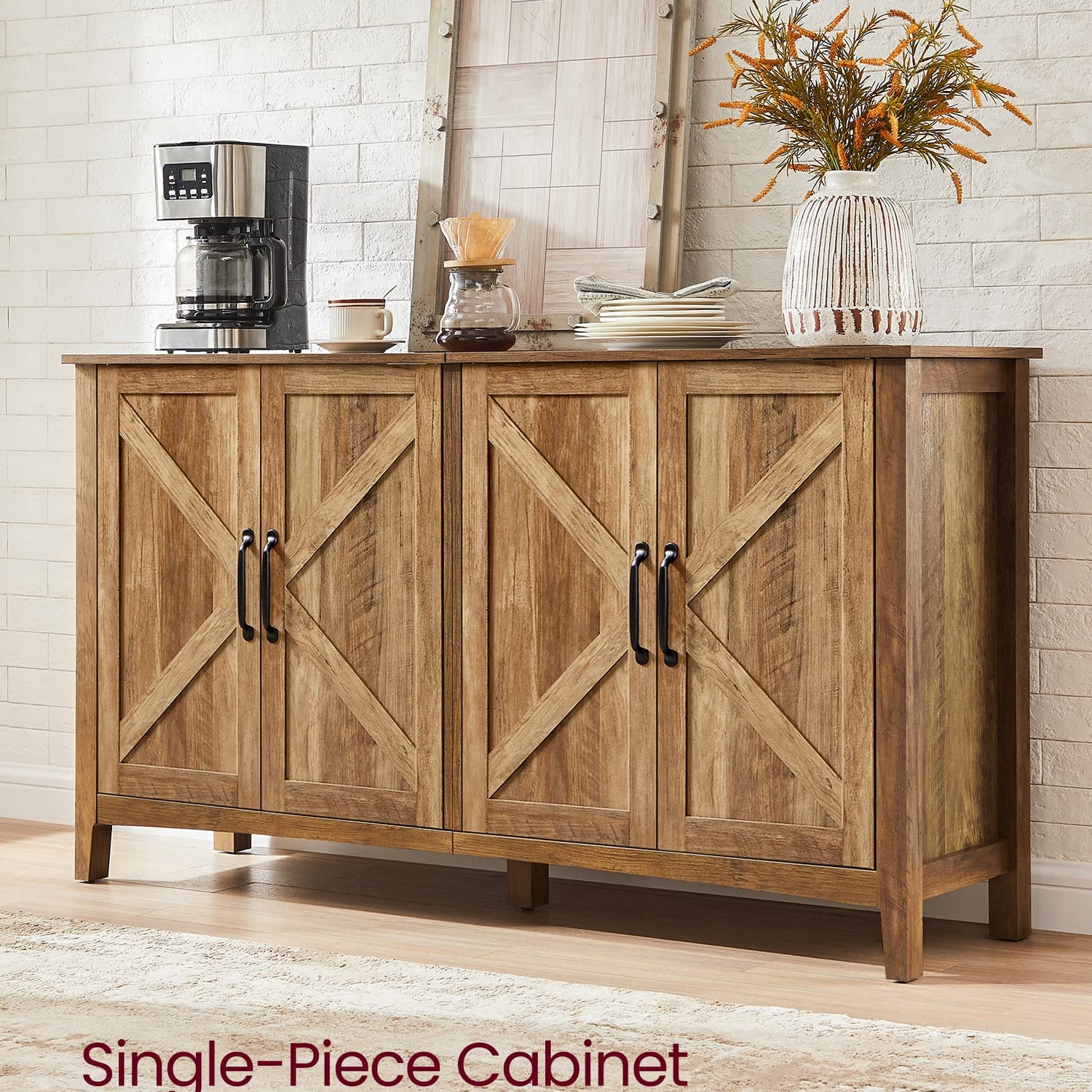 • [Storage with Farmhouse Style] Elevate your storage game with this remarkable storage cabinet! The 4-door rustic walnut cabinet adds a farmhouse flair to your home while offering ample storage space