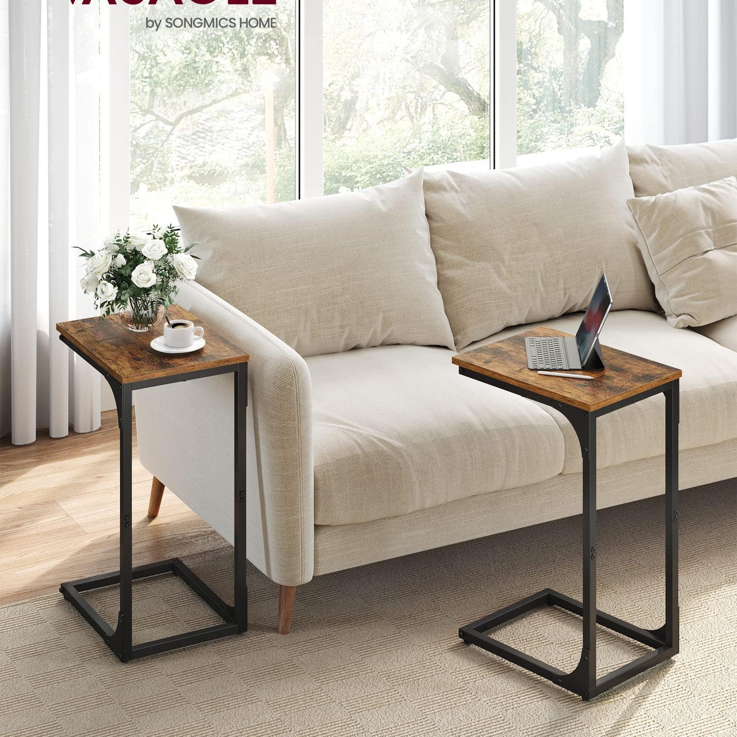 VASAGLE C-Shaped End Table Set of 2, Small Side Table for Couch, Sofa Table with Metal Frame for Living Room, Bedroom, Bedside, Rustic Brown and Black