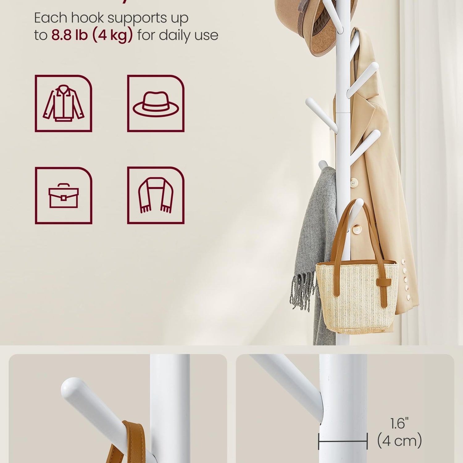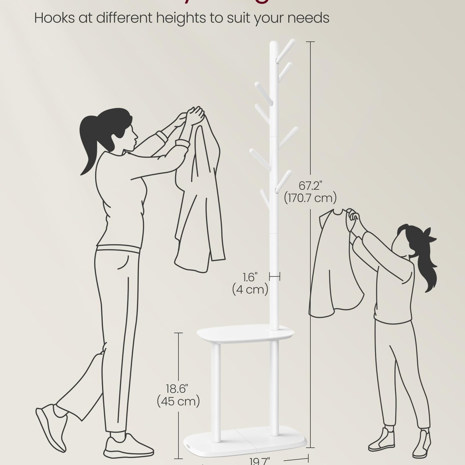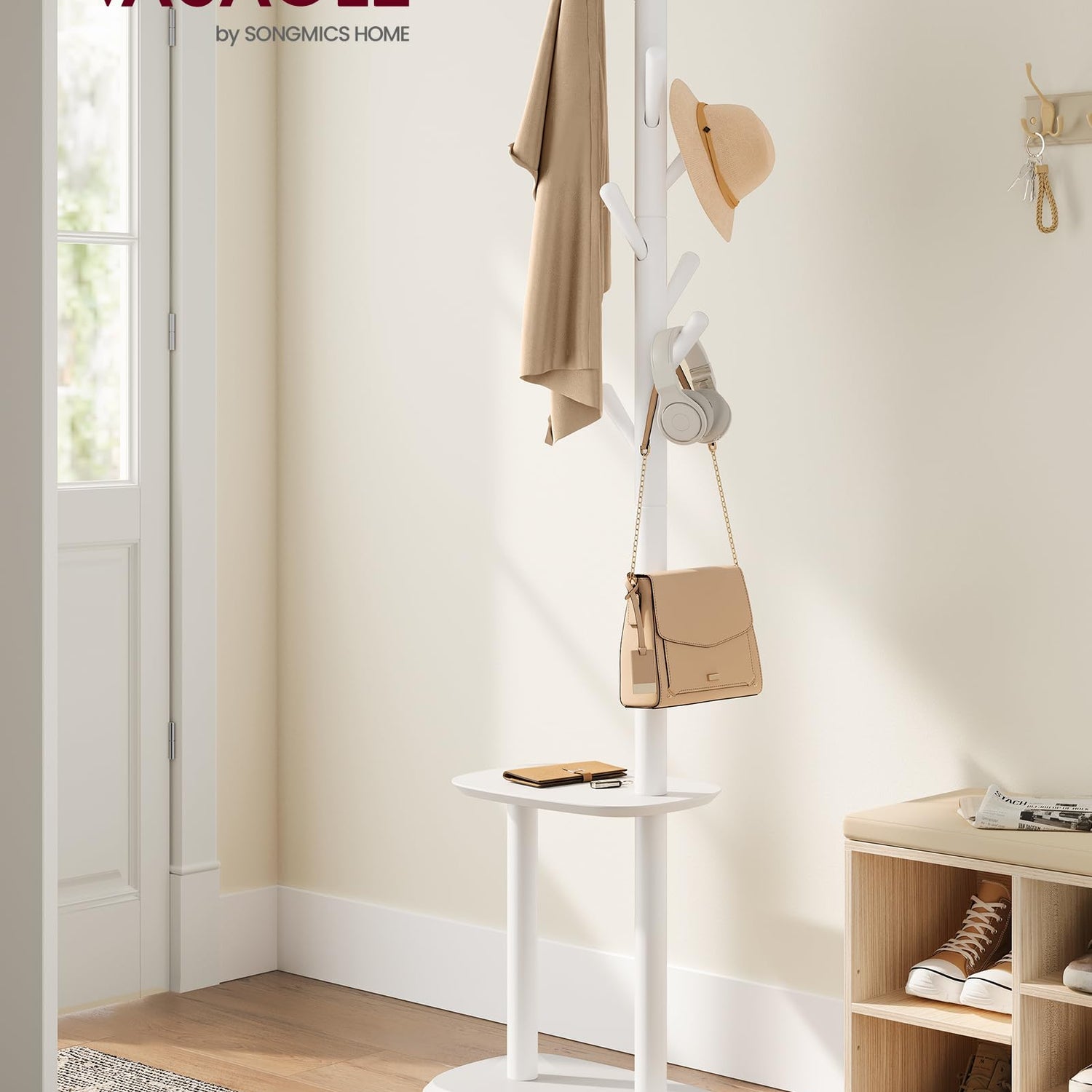 VASAGLE Coat Rack, Free Standing Coat Stand, Hall Coat Tree with 8 Hooks and Storage Shelf, 67.2 Inch Tall, for Coats, Hats, Bags, for Entryway, Hallway, Bedroom, Cloud White URCR040W01