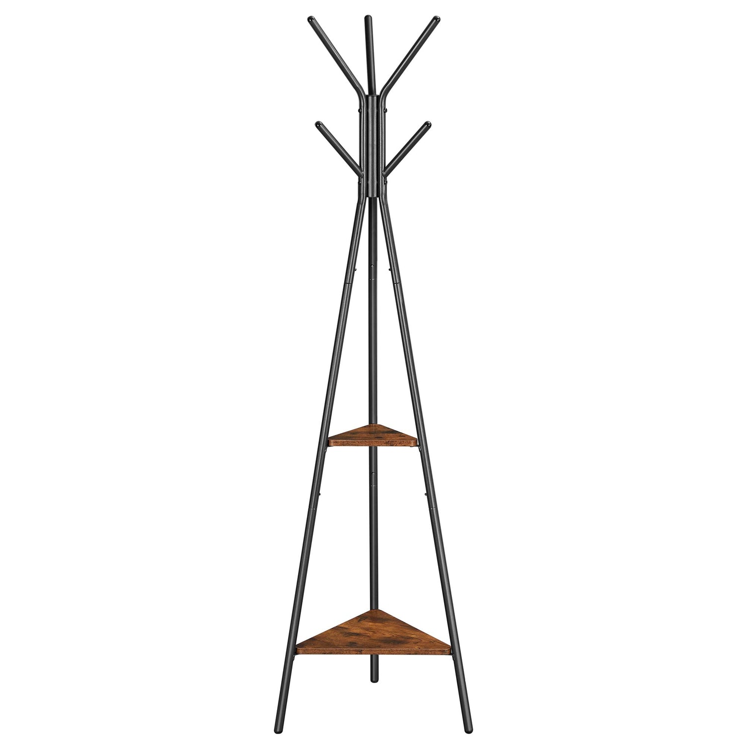 - [What You Get] An industrial-style coat rack stand with 6 smooth hooks and two triangular storage shelves, an accessory bag, and easy-to-follow instructions—bring your home an organized and stylish look