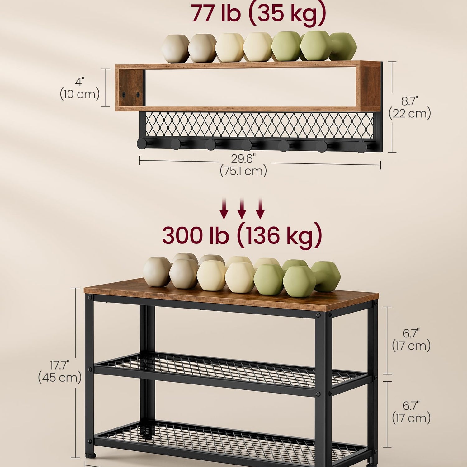 - [Strong Support] The clothes rack boasts 7 metal dot coat hooks, each supporting up to 11 lb, providing a secure place for your garments and bags. The shoe bench can hold up to 300 lb, ensuring a stable and safe seating experience