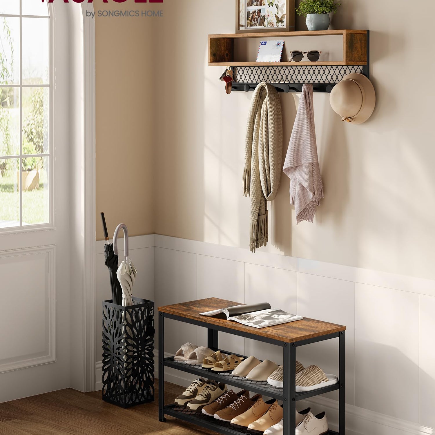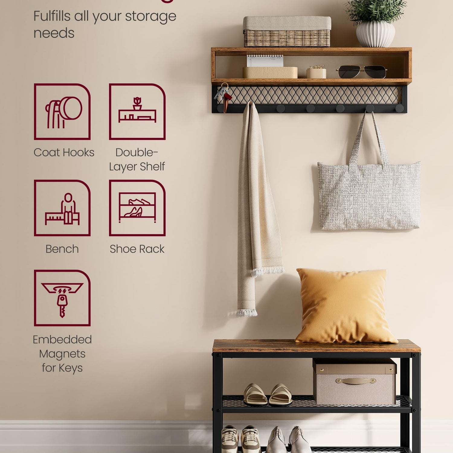VASAGLE Coat Rack Shoe Bench Set, Hall Tree with Bench, Entryway Furniture, Multifunctional, Dot Coat Hooks, 2-Tier Shoe Rack, Industrial Style, for Entryway, Hallway, Rustic Brown ULCR073K01