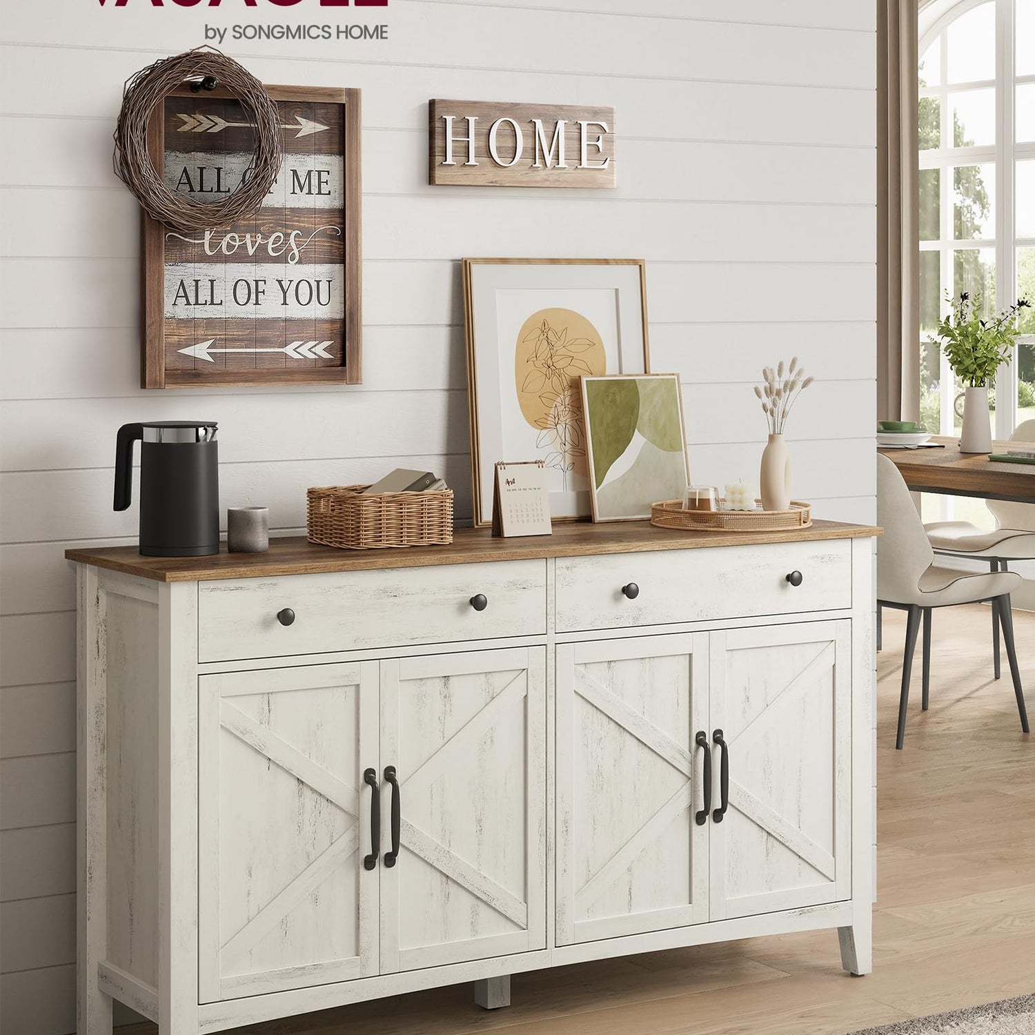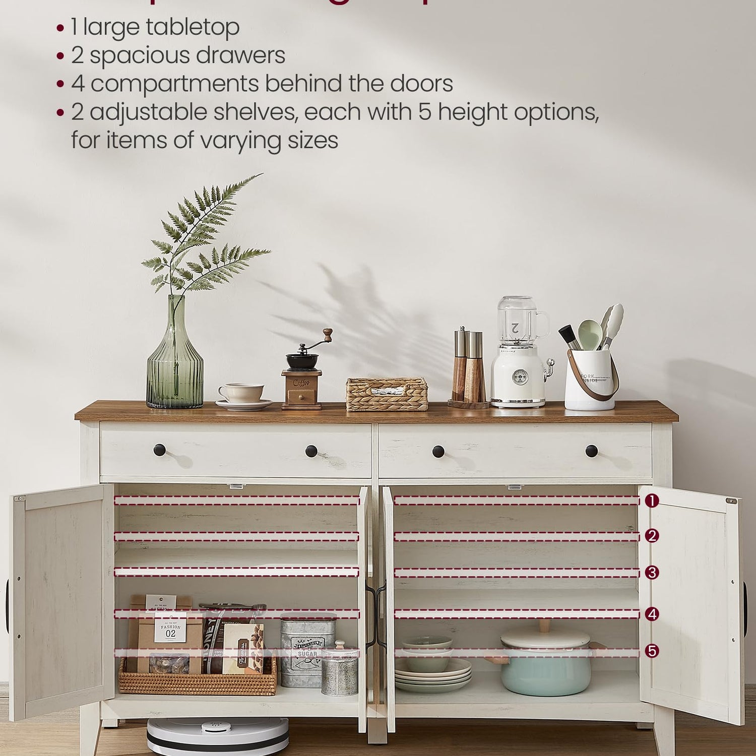 VASAGLE Coffee Bar Cabinet, Kitchen Storage Cabinet with 2 Drawers, Farmhouse Cabinet Sideboard with Adjustable Shelves for Kitchen, Rustic White and Honey Brown UBBK381W01