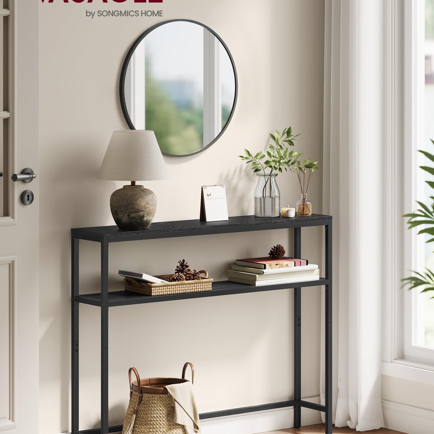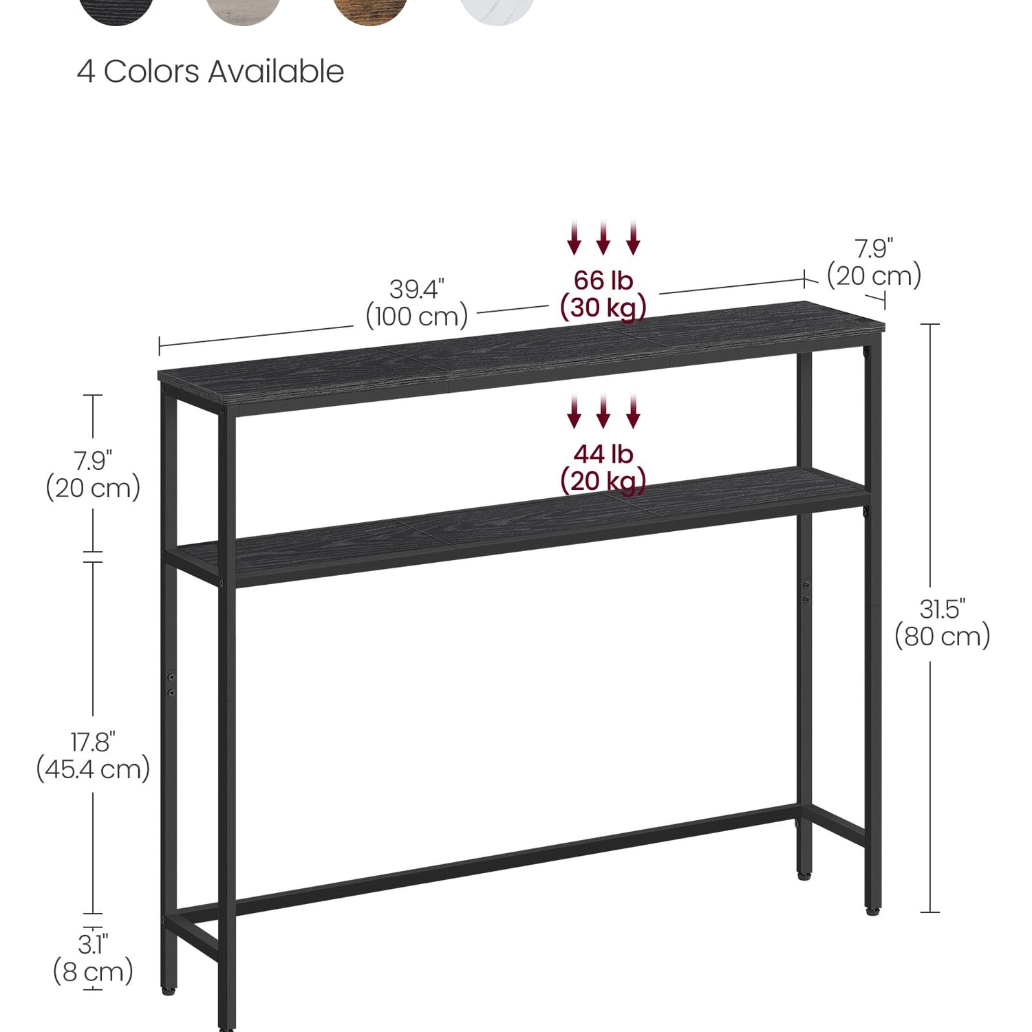 VASAGLE Console Table, 2-Tier Sofa Table, 7.9 x 39.4 x 31.5 Inches, Narrow Entryway Table, Modern Entry Table with 2 Shelves, for Living Room, Bedroom, Charcoal Gray and Ink Black ULNT131B22