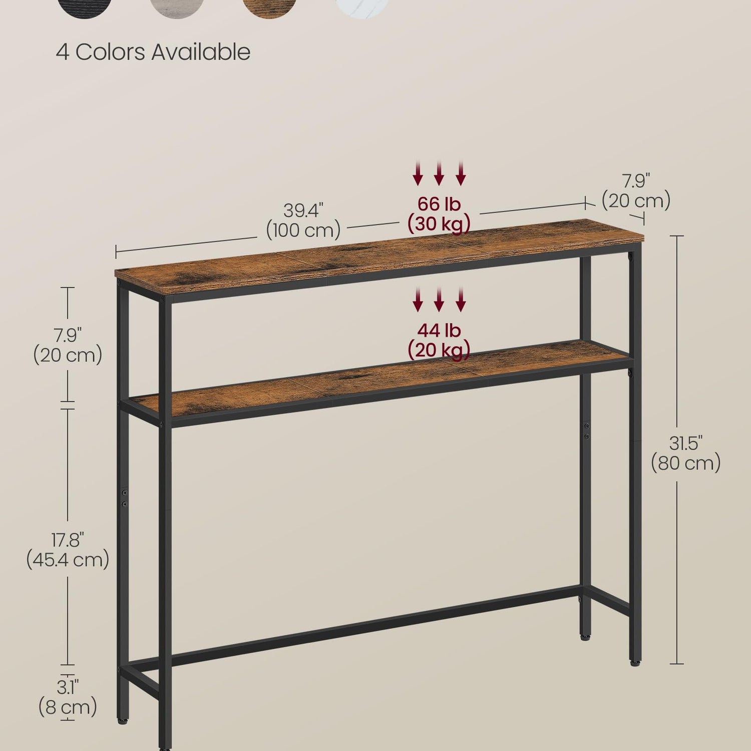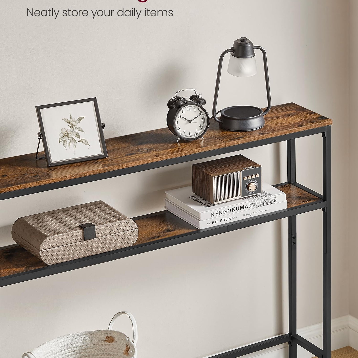 VASAGLE Console Table, 2-Tier Sofa Table, 7.9 x 39.4 x 31.5 Inches, Narrow Entryway Table, Modern Entry Table with 2 Shelves, for Living Room, Bedroom, Rustic Brown and Ink Black ULNT131K01