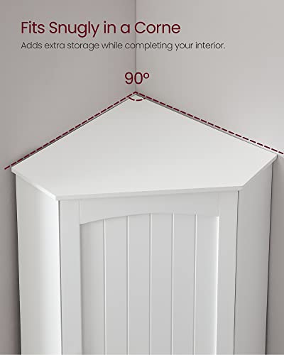 VASAGLE Corner Cabinet, Tall Corner Storage Cabinet with 2 Doors and 4 Adjustable Shelves, for Bathroom Kitchen Living Room, Modern Farmhouse Design, White UBBC541P31