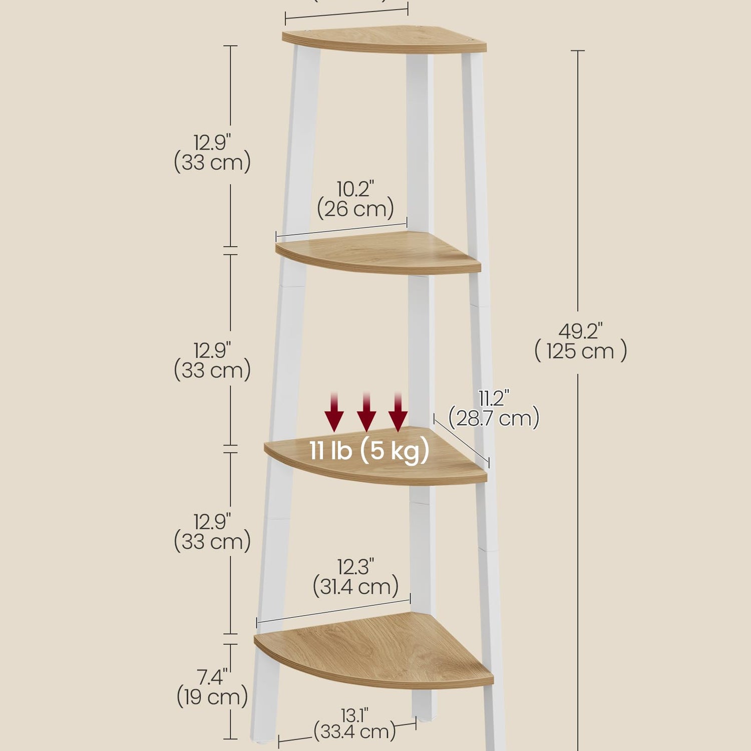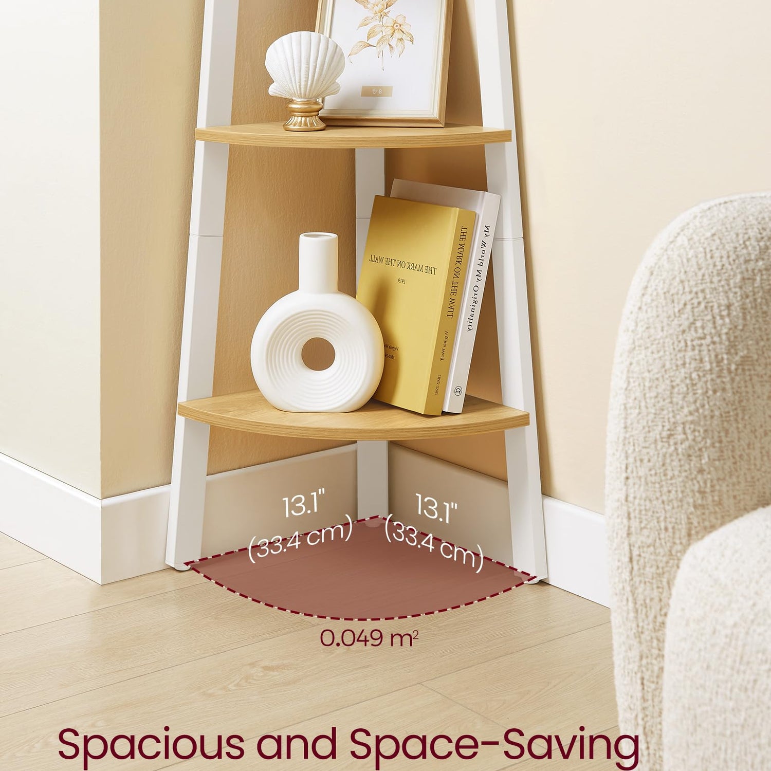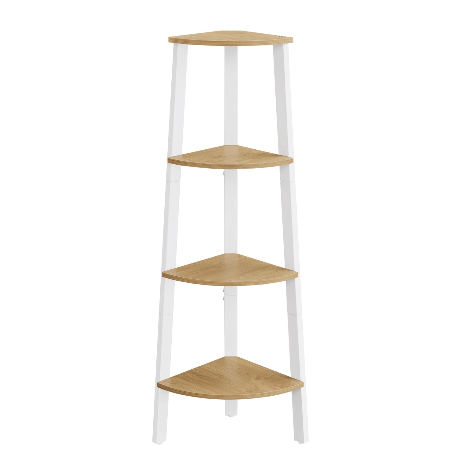 VASAGLE Corner Shelf Stand, 4-Tier Corner Bookshelf, Industrial Ladder Shelf, Plant Stand for Living Room, Office, Kitchen, Natural Oak and Matte White ULLS034Y70