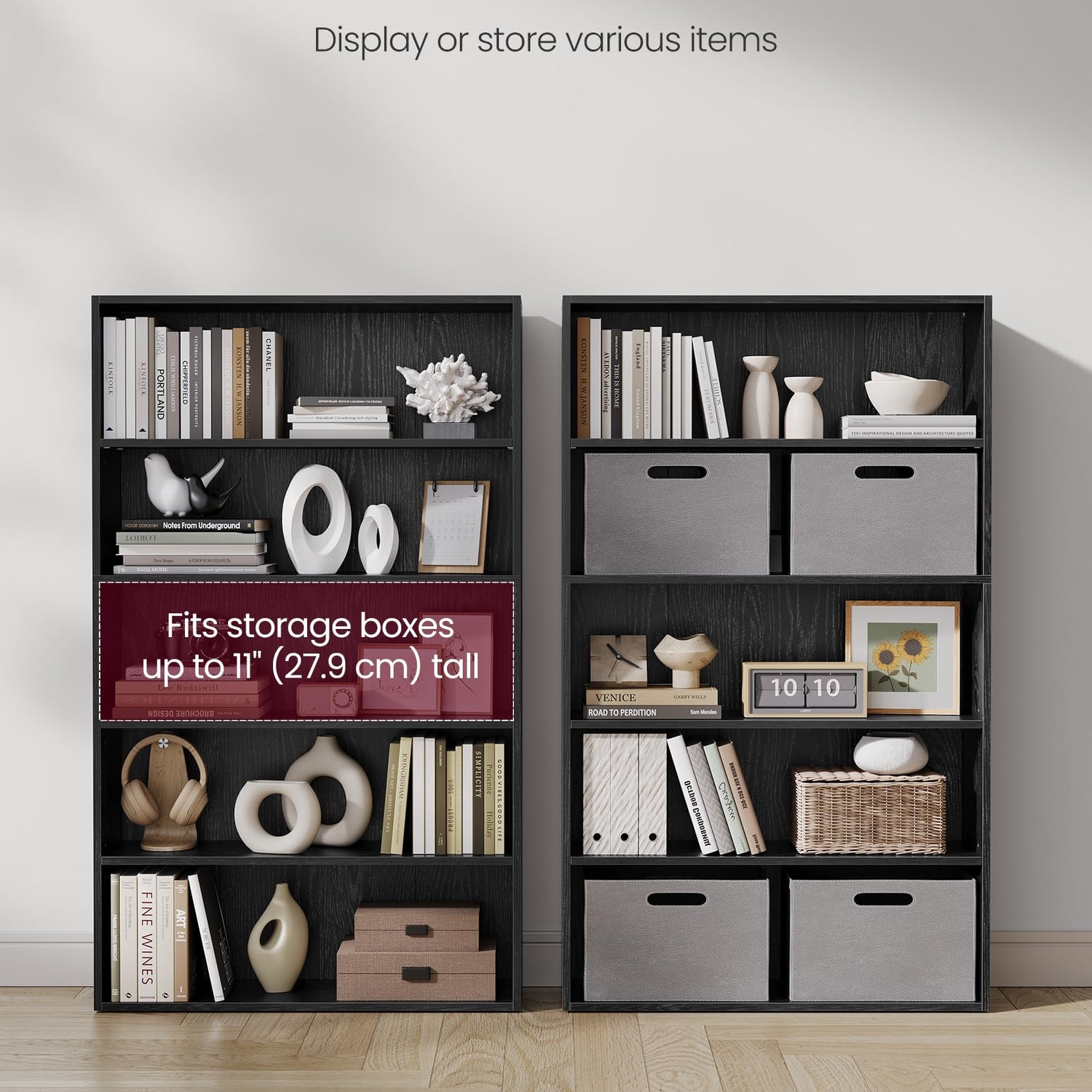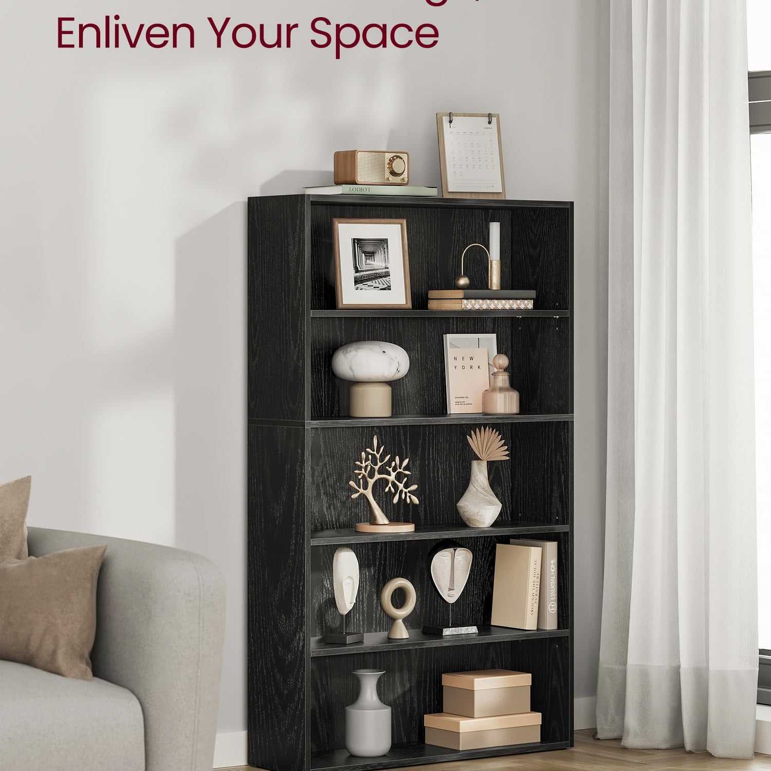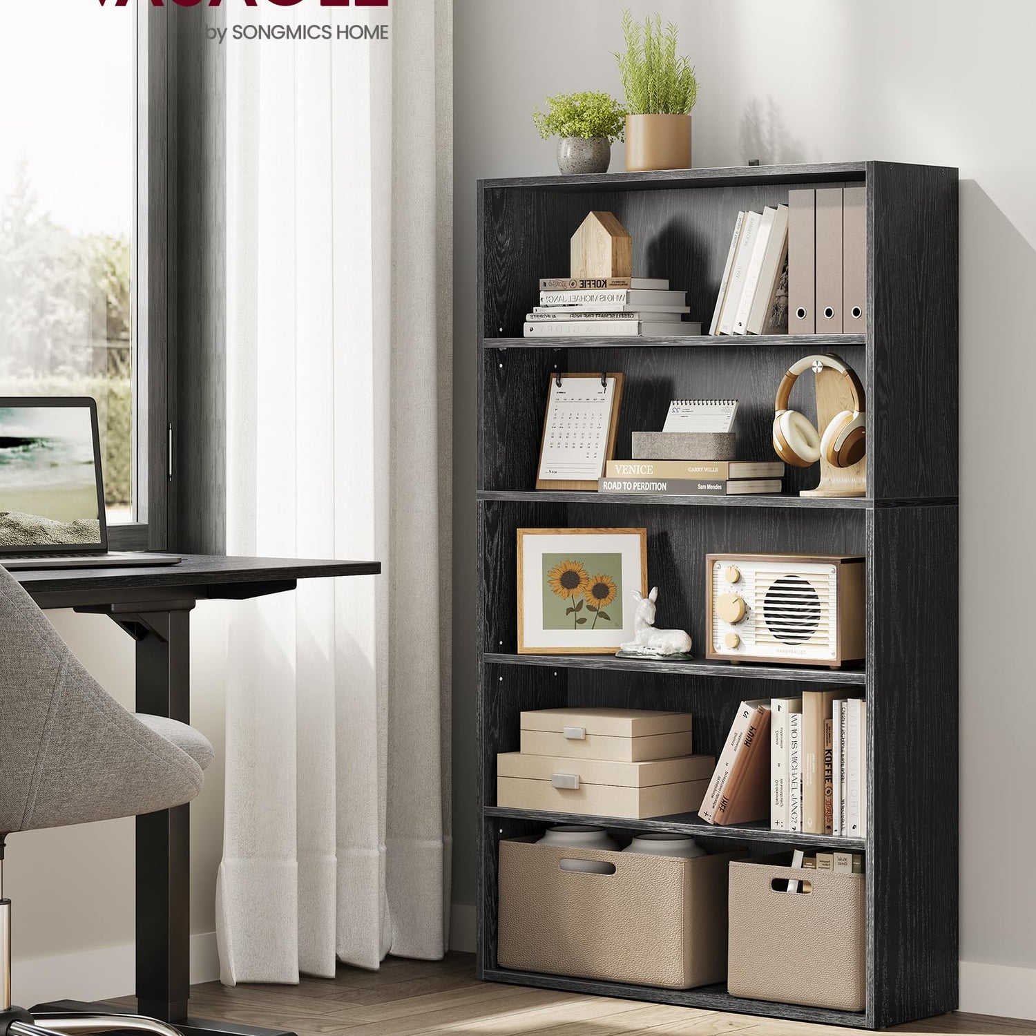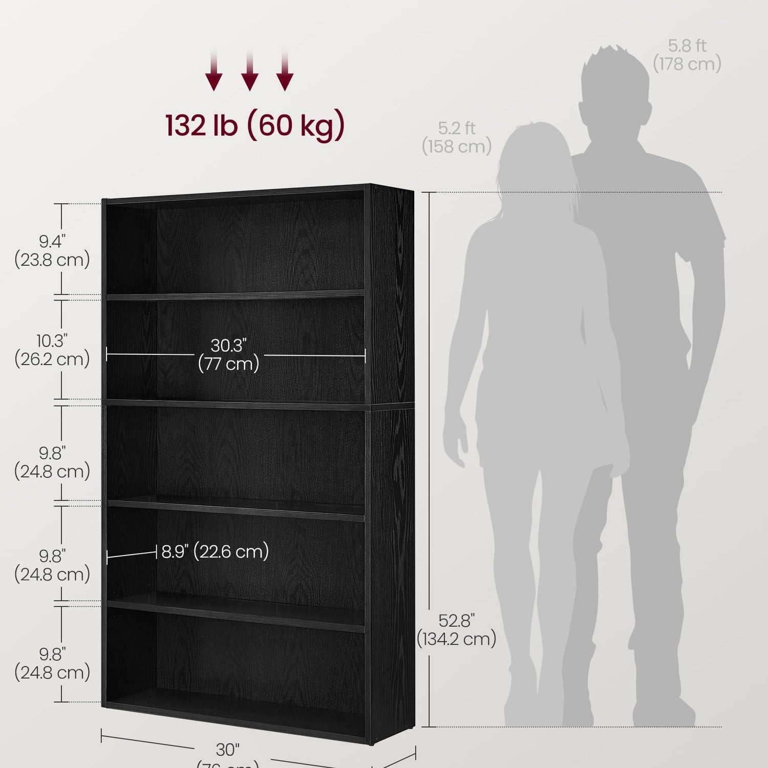 VASAGLE Custos Collection - Bookshelf, 5-Tier Bookcase, Book Shelf, Open Storage Shelf, 9.4 x 30 x 52.8 Inches, for Living Room, Home Office, Dinning Room, Ebony Black ULBC175T56