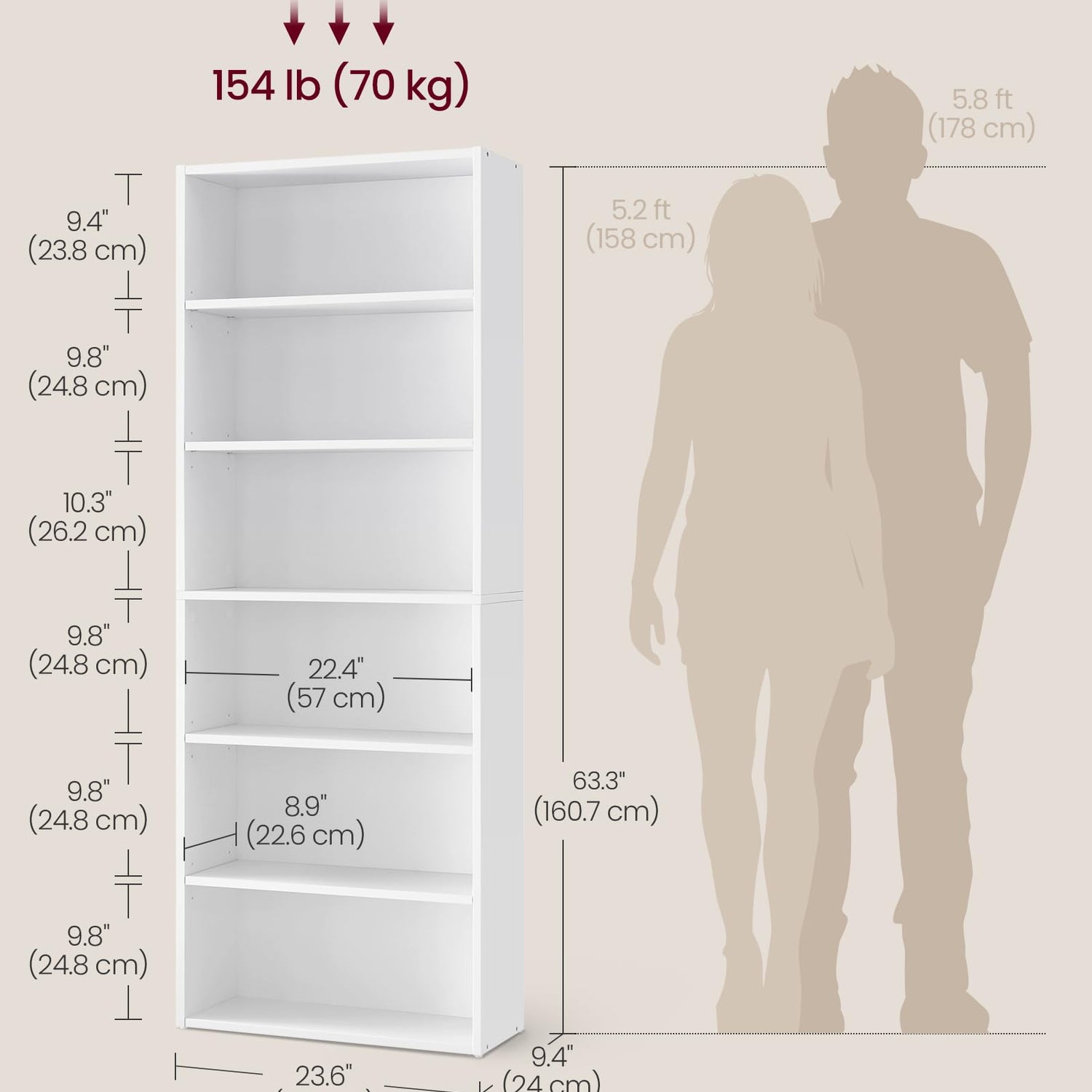 VASAGLE CUSTOS Collection - Bookshelf, 6-Tier Bookcase, Book Shelf, Open Storage Shelf, 9.4 x 23.6 x 63.3 Inches, for Living Room, Home Office, Dinning Room, Cloud White ULBC166T14