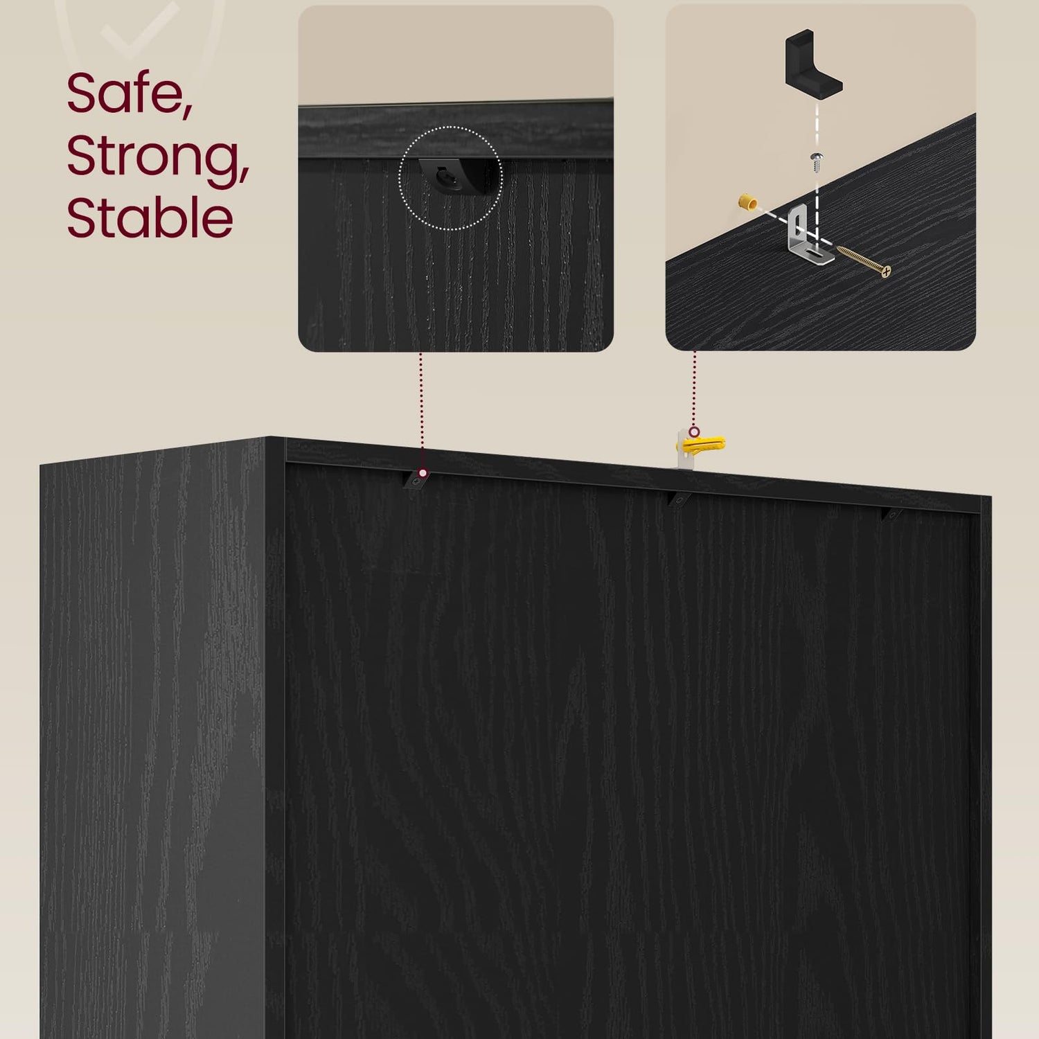- 【SOLID, STABLE, SAFE】This display stand, made from 12 mm thick E1 particleboard, is built to last, with each compartment supporting up to 33 lb. For added stability and safety, an anti-tip kit is included for secure wall attachment