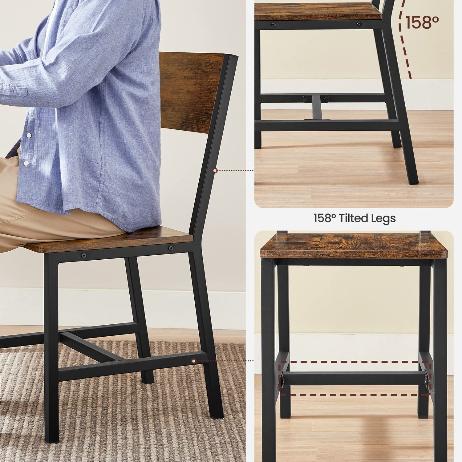 VASAGLE Dining Chair Set of 2, Rustic Wood Chairs with Metal Steel Frame, Easy to Assemble, Stable, Comfortable Seat, Modern Farmhouse Chair for