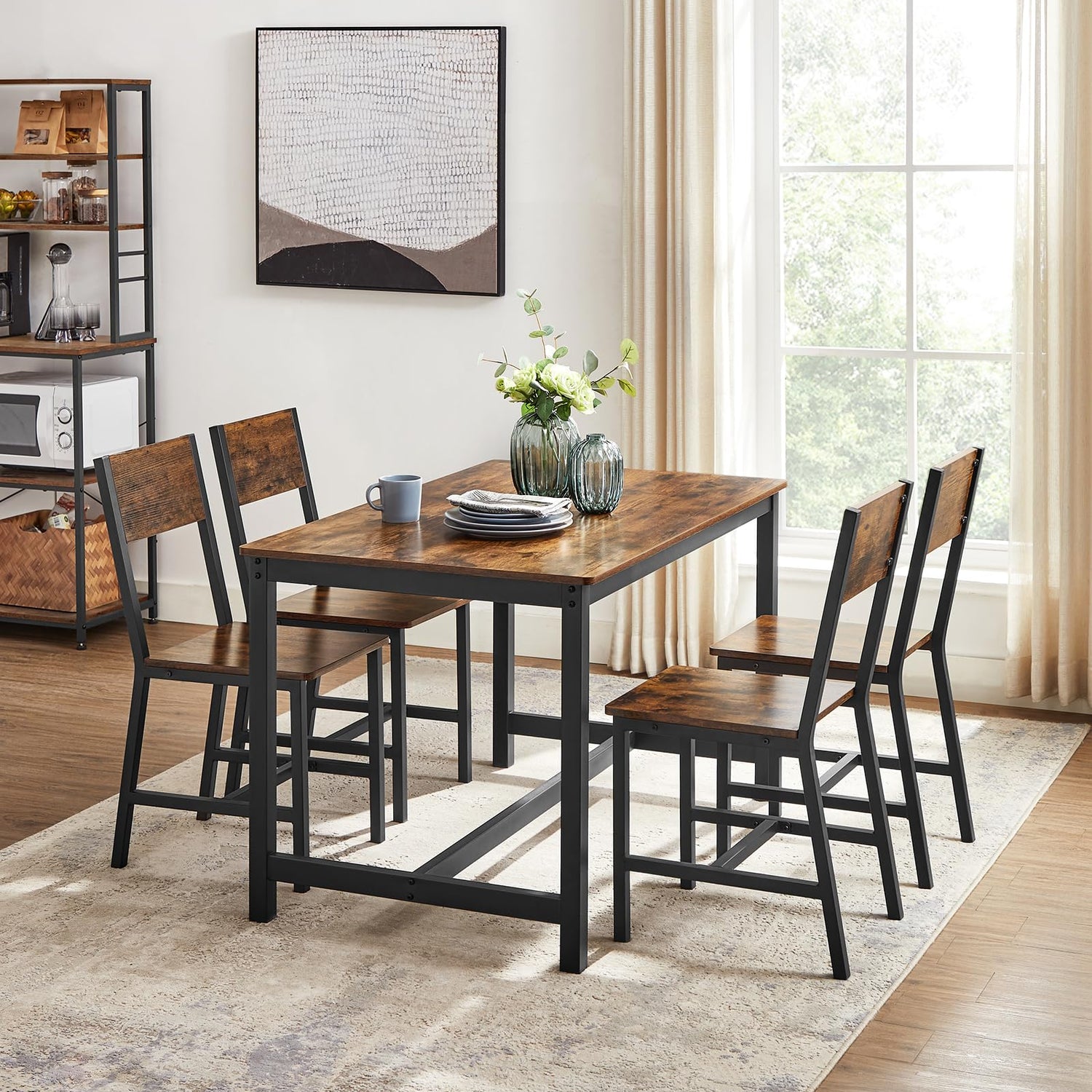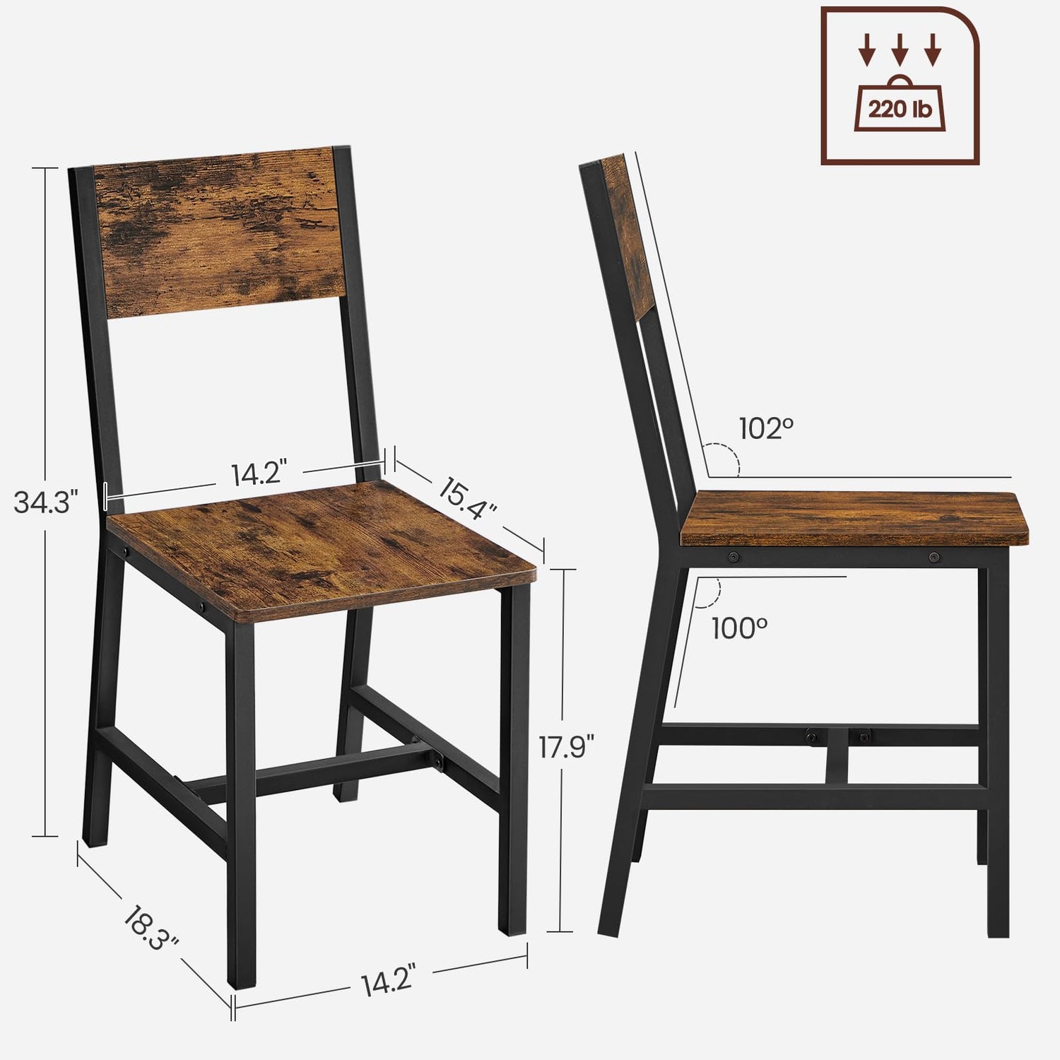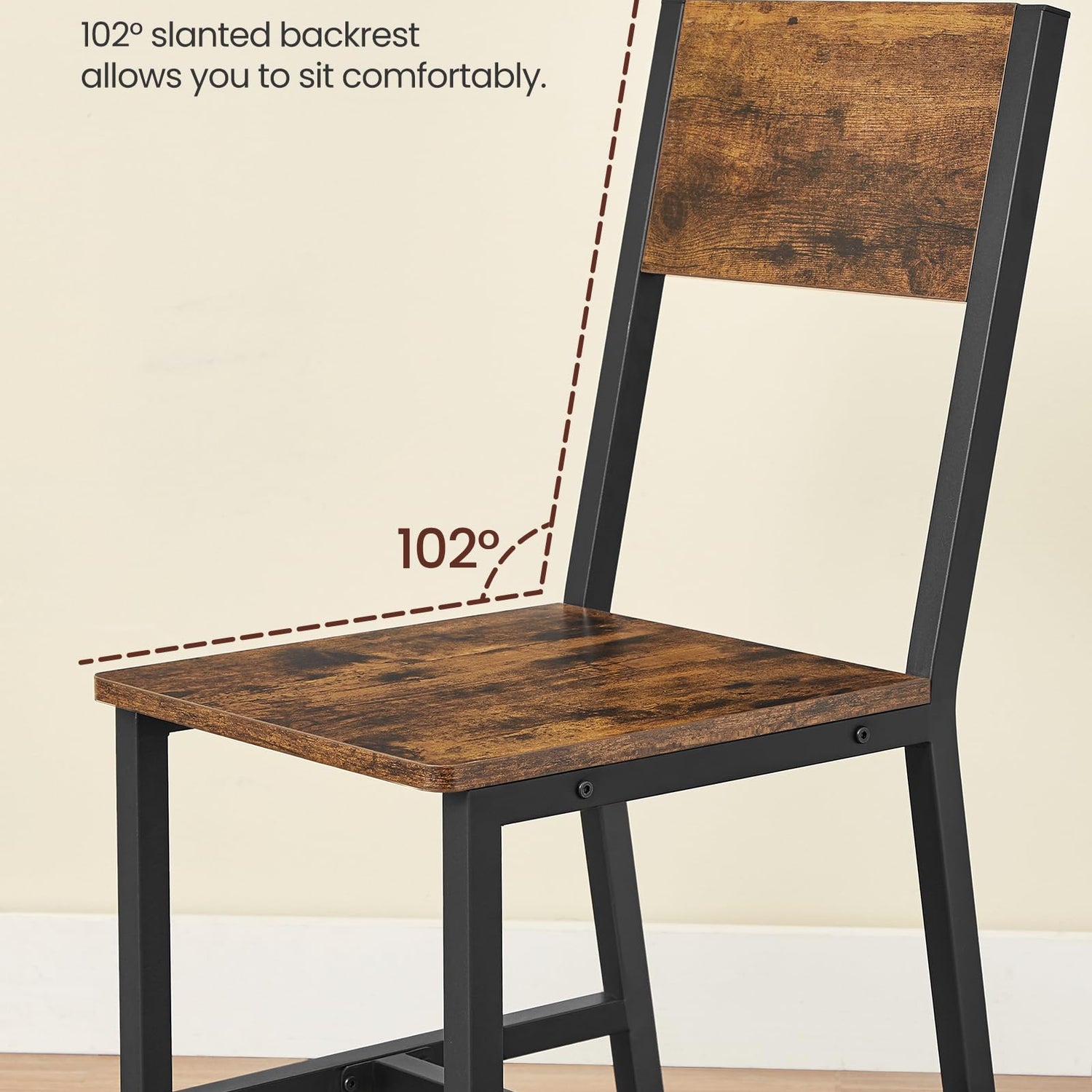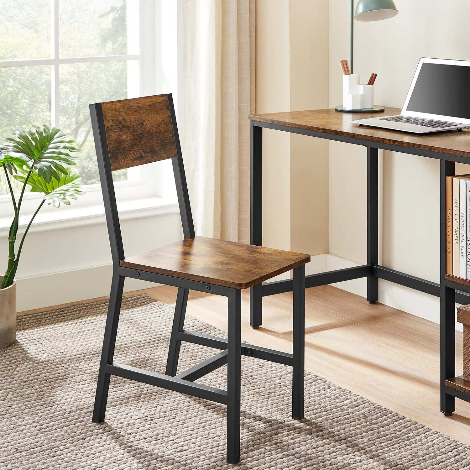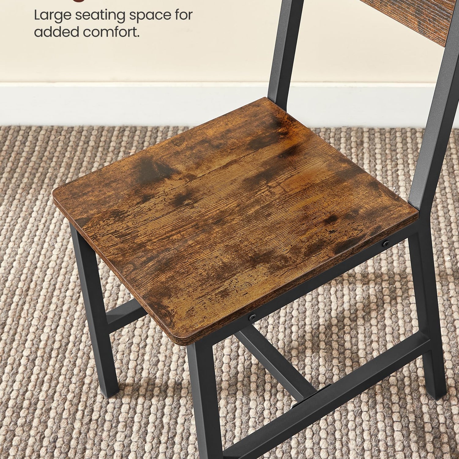 VASAGLE Dining Chair Set of 4, Rustic Wood Chairs with Metal Steel Frame, Easy to Assemble, Comfortable Seat, Modern Farmhouse Chair for Kitchen, Bedroom, Living Room, Rustic Brown and Ink Black