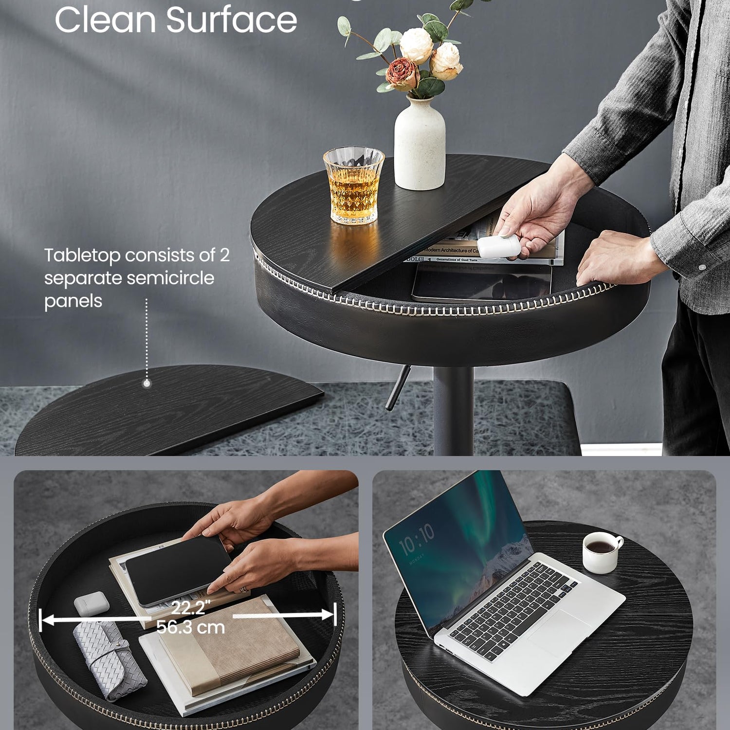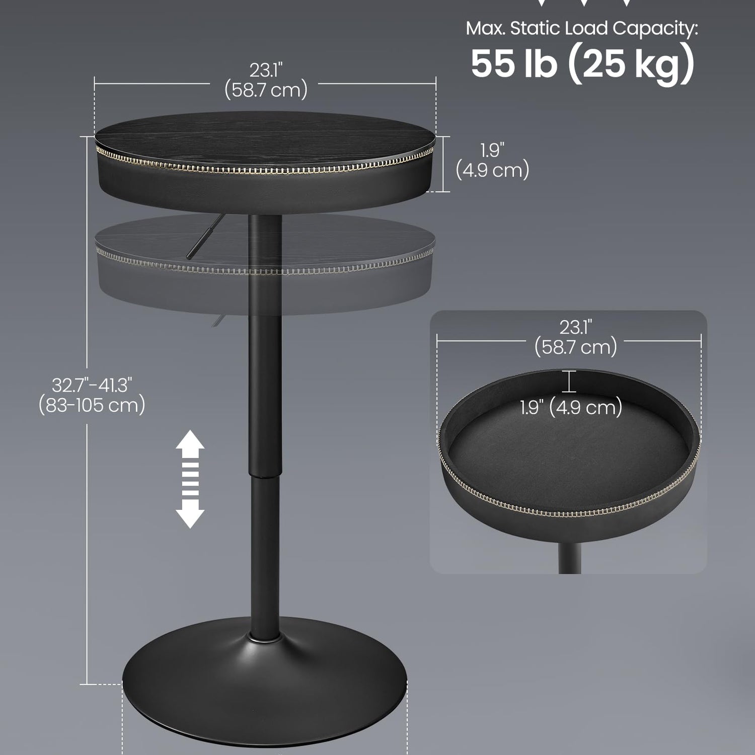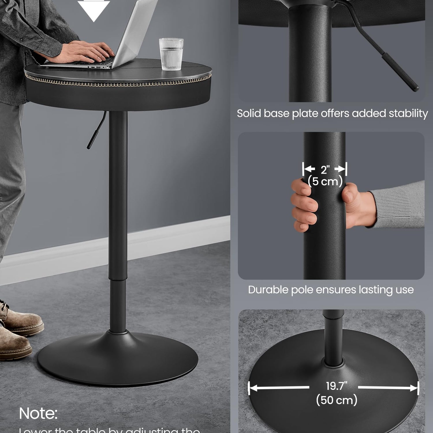 Height Adjustable Round Bar Table with Storage - VASAGLE EKHO Collection in Ebony Black and Ink Black