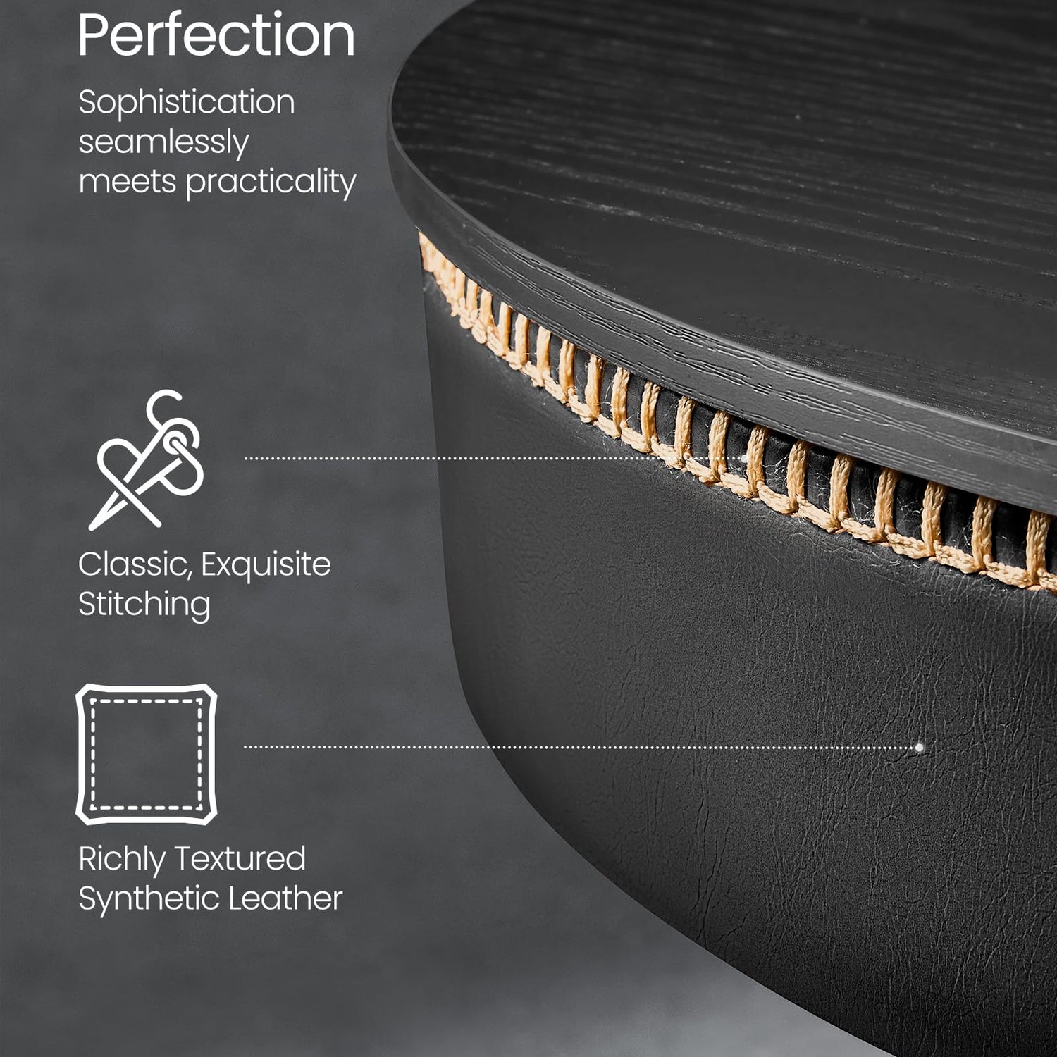 Crafted with precision, this bar table showcases the elegance of richly textured synthetic leather with refined stitching, making it a striking addition to any home. The sophisticated ebony black and ink black colour scheme elevates your space while speaking volumes about your taste in décor.