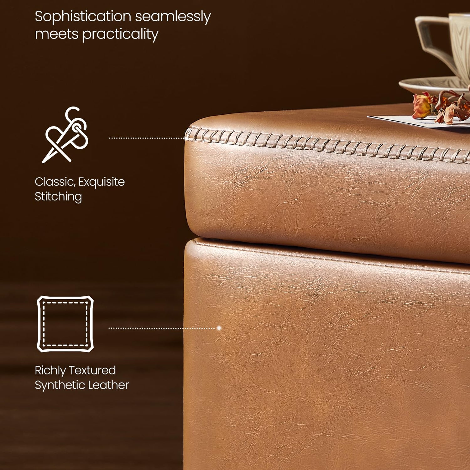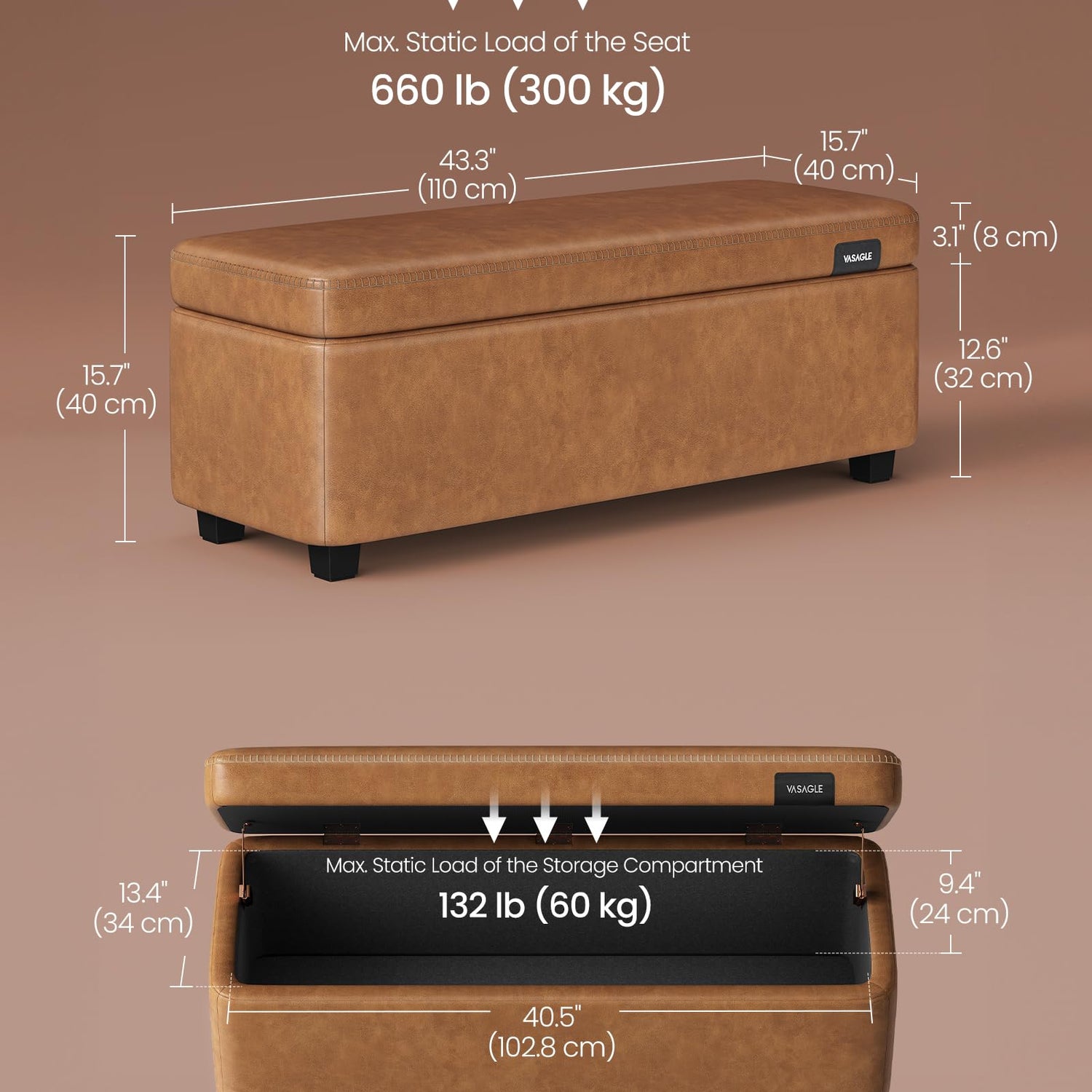 - [Style That Speaks] Recognized the Bronze A’ Design Award 2024, this storage bench from our VASAGLE EKHO Collection blends synthetic leather with refined stitching. A tangible homage to craftsmanship, it helps craft a home that speaks volumes about style