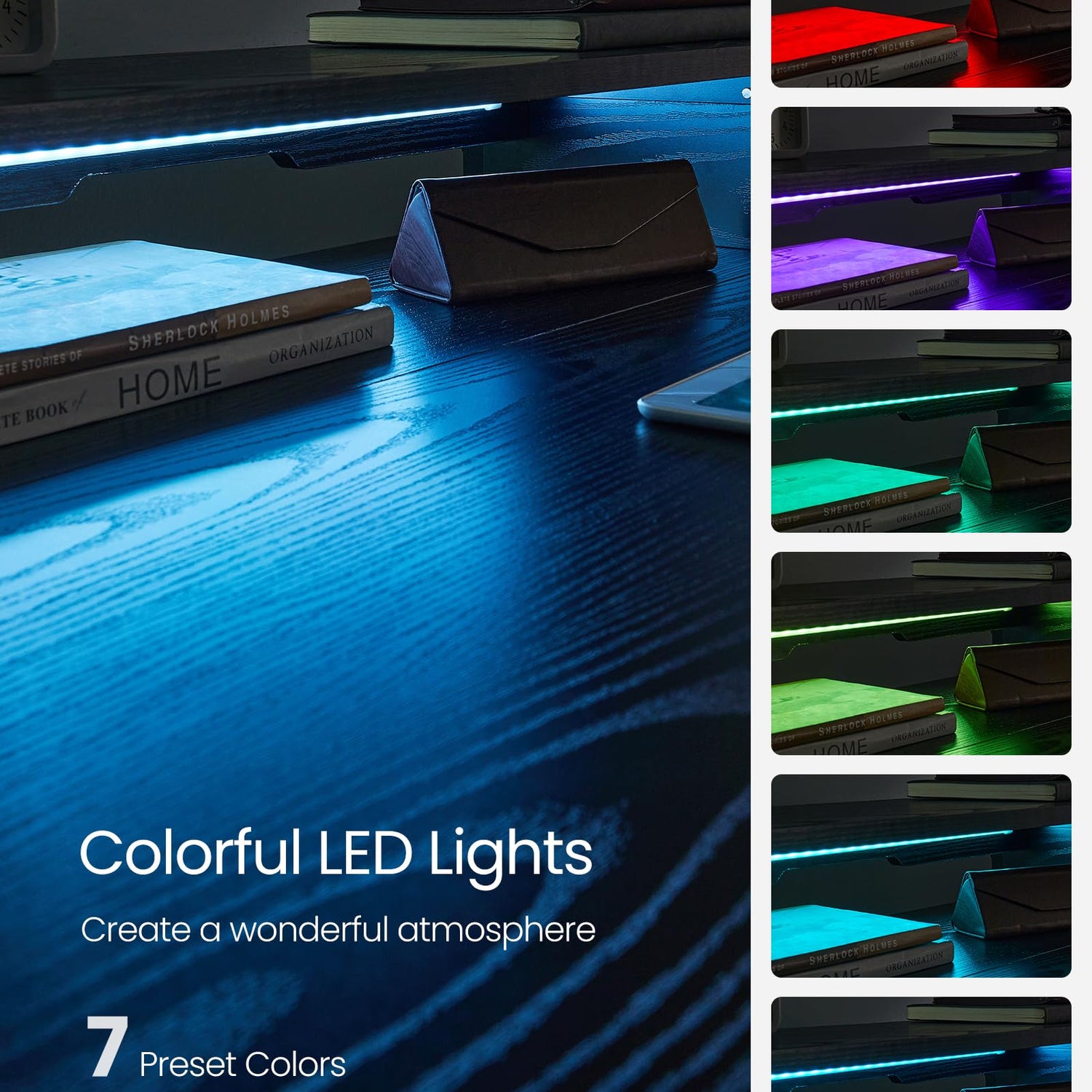 - 【LIGHT UP, POWER UP】The built-in LED lights with 20 colors and 5 brightness levels create a personalized work or study environment. The power strip with 2 AC outlets and 2 USB-A ports provides easy charging for your devices