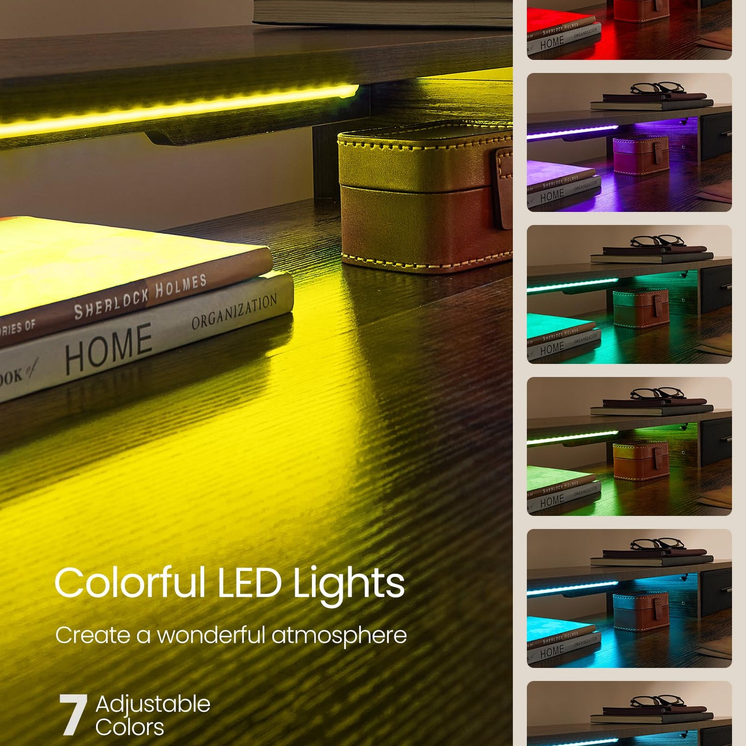 - [Hooks and Light Strip Included] The sit stand desk features 2 hooks on the side, keeping your headphones, bags, and other items within easy reach. Moreover, the adjustable LED light strip adds a pleasant ambiance to your workspace