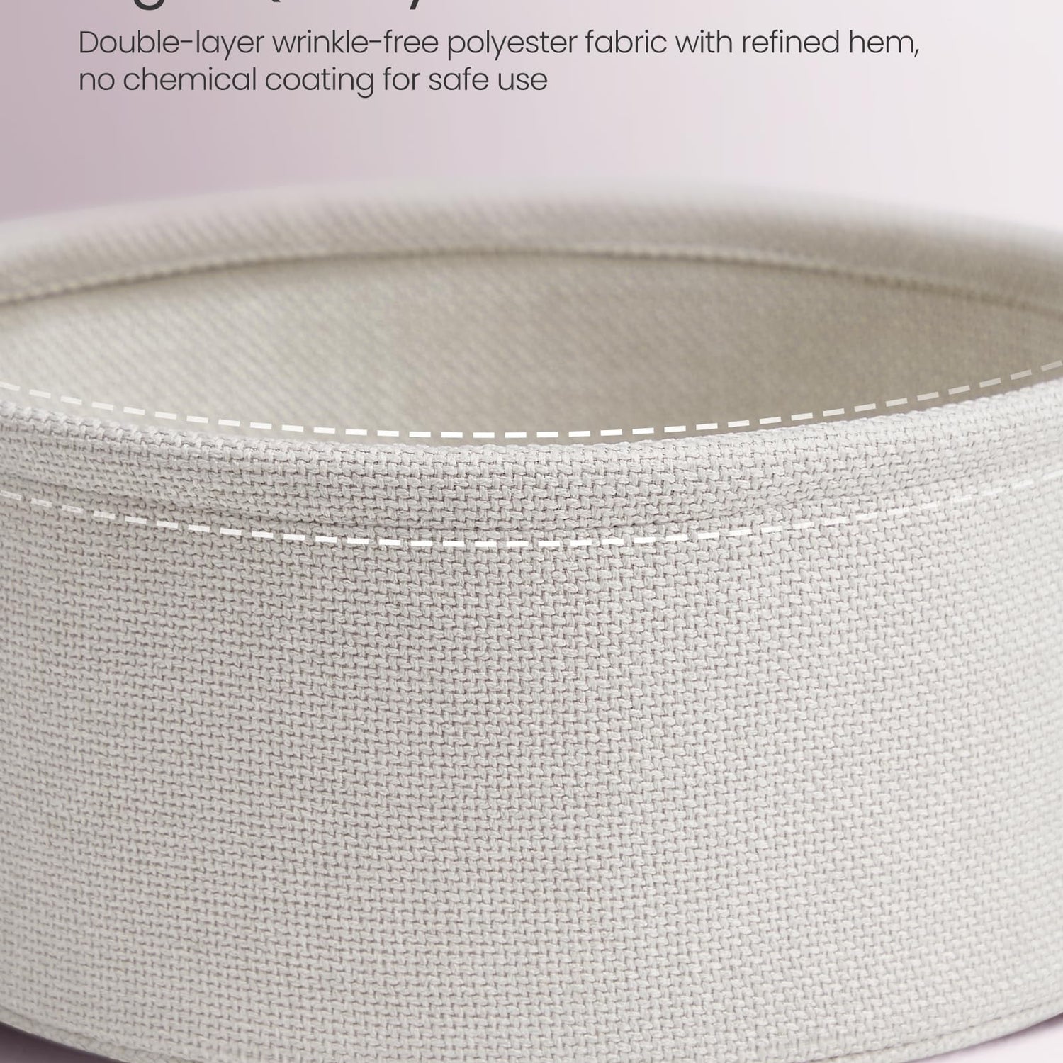 - [Quality Fabric Basket] The double-layered polyester fabric basket is visually appealing, crease-free, and free of chemicals, making it safe to use. Its linen-like appearance adds a touch of uniqueness to this round table
