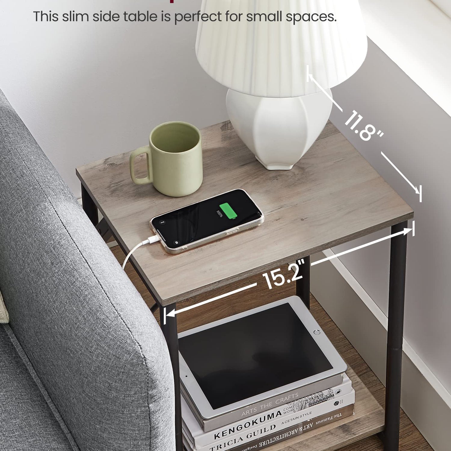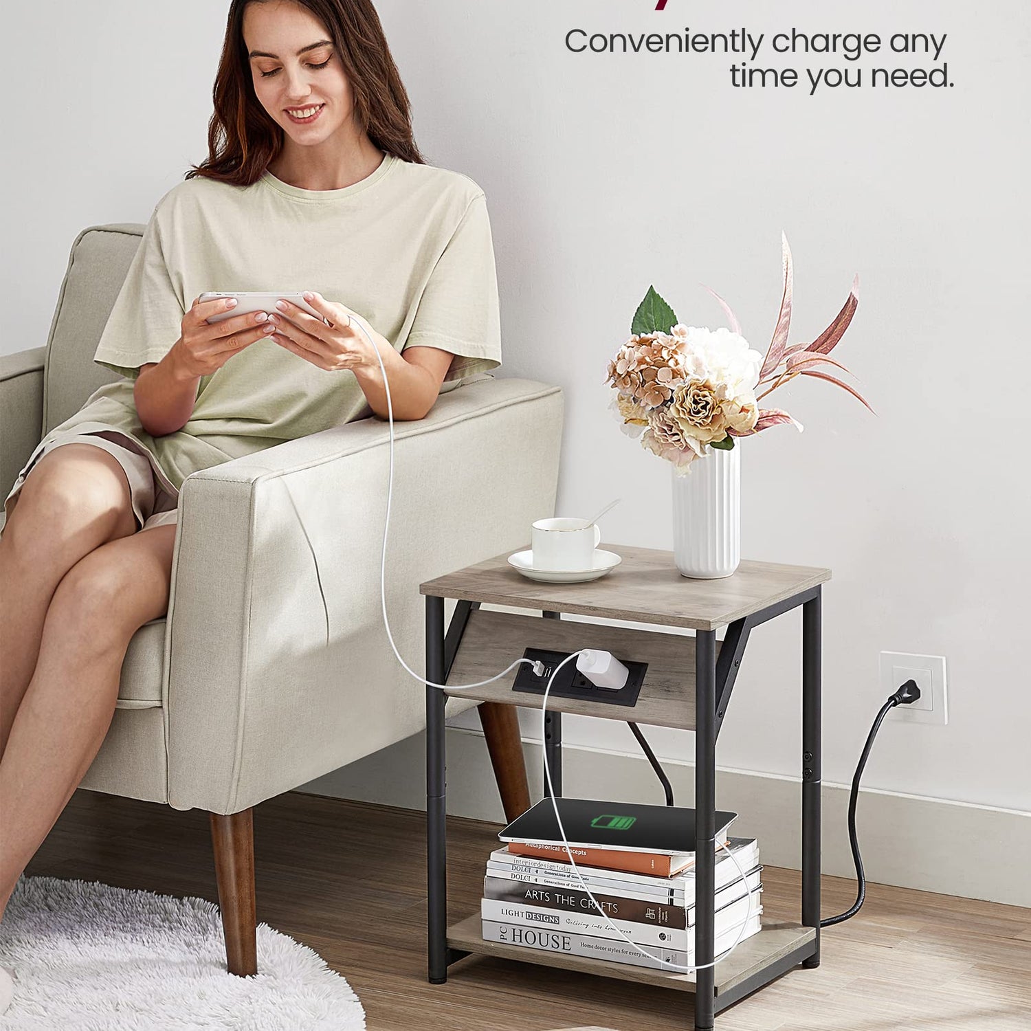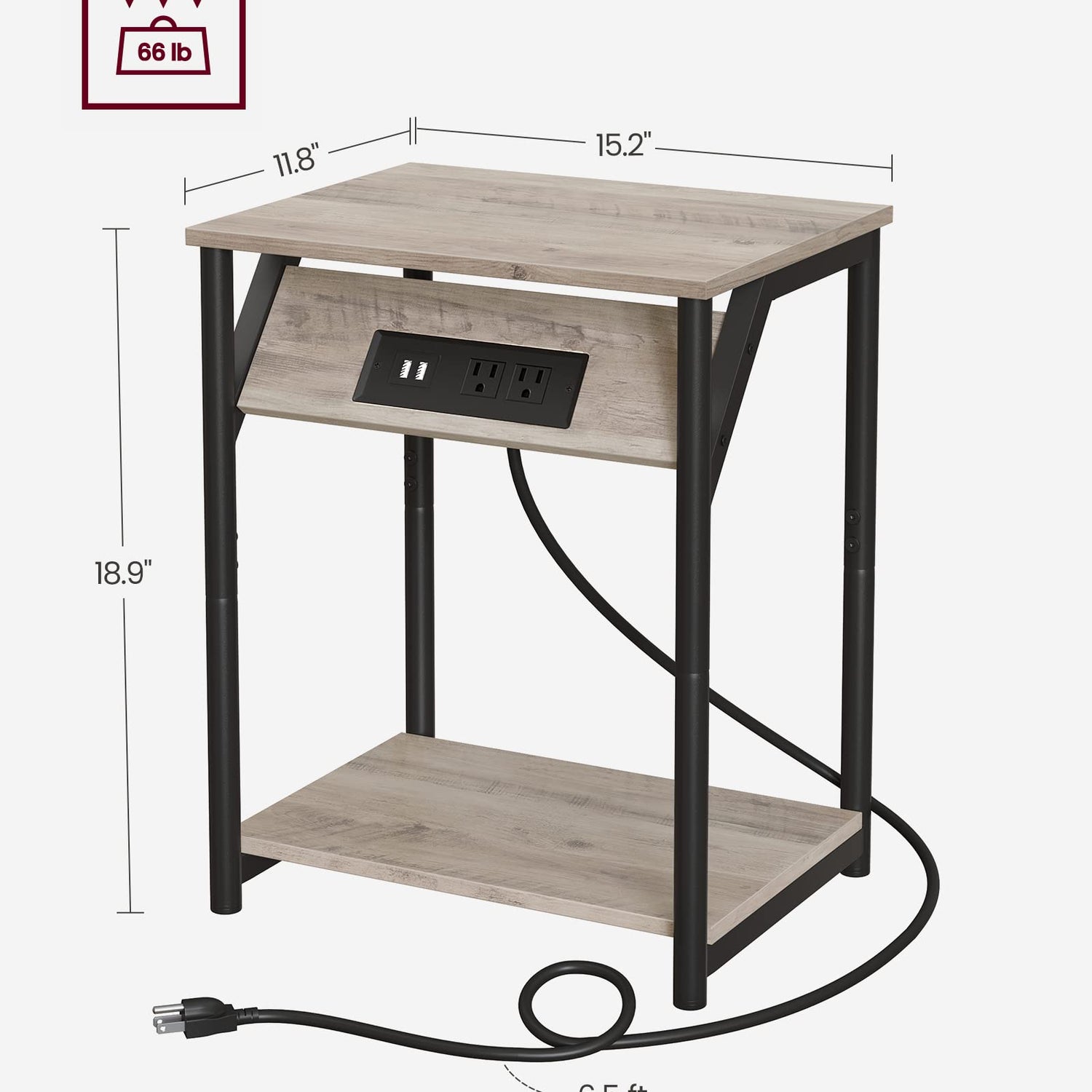 VASAGLE End Table with Charging Station, Set of 2, Small Side Tables for Living Room, Bedroom, Nightstand with Outlets and USB Ports, Bedside Table with Storage Shelf, Heather Greige and Black