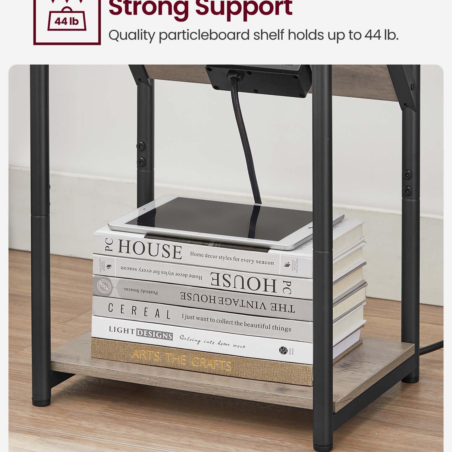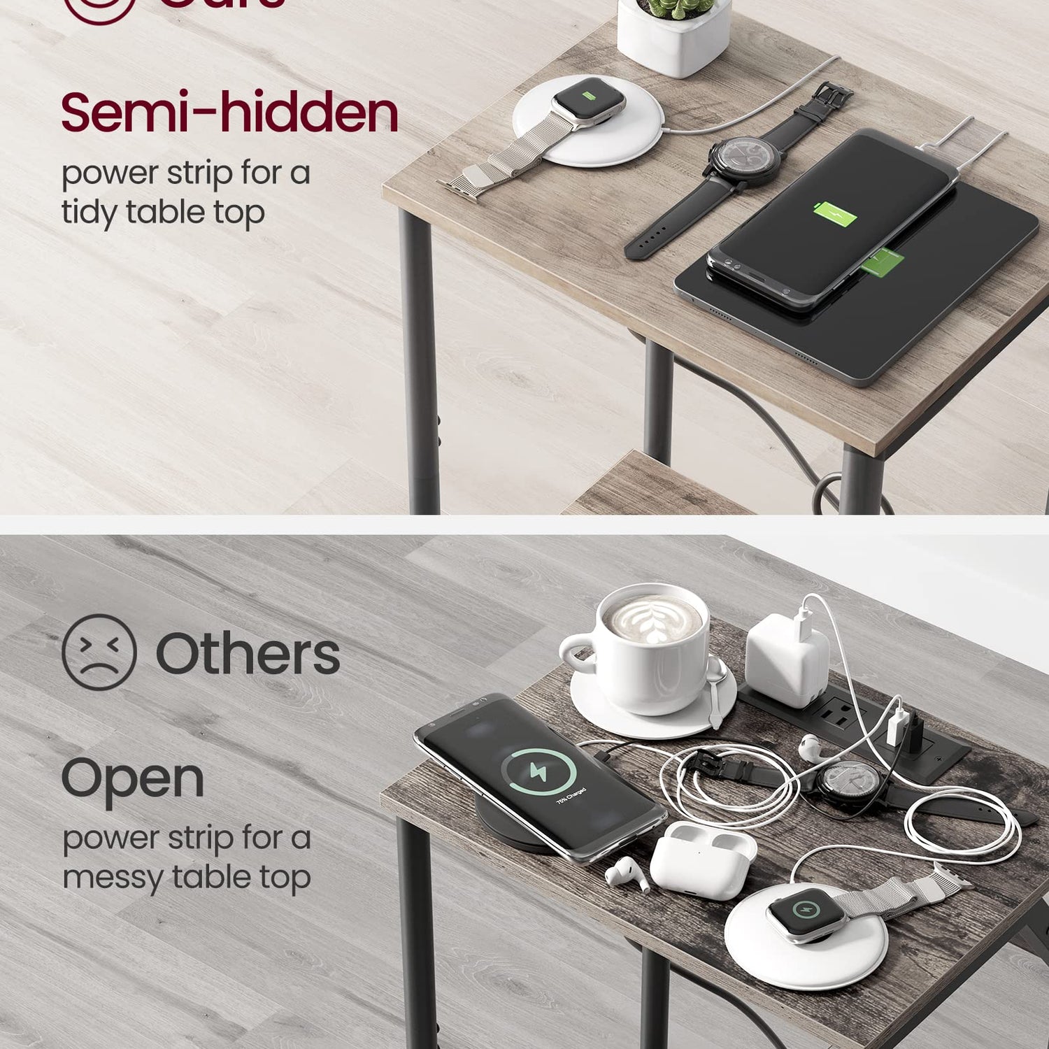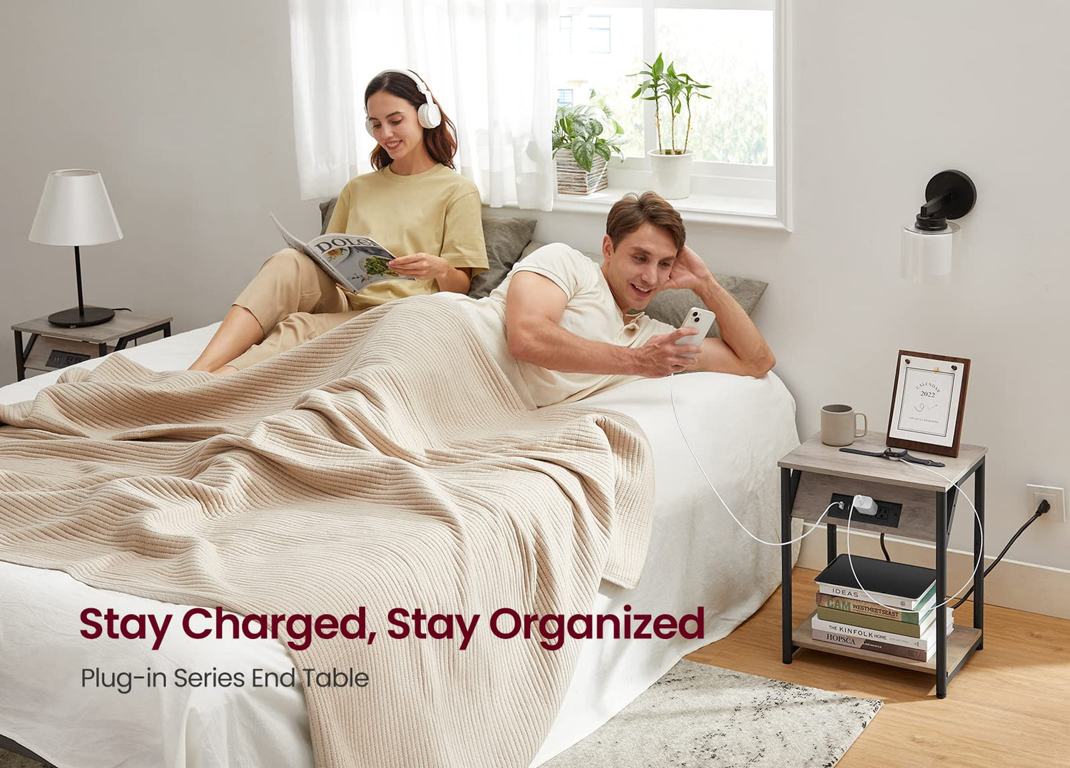 • [Side Tables with Charging Stations] Low battery? Charge your devices with these small tables featuring two AC outlets, two USB ports, and a 6.5 ft cord each. Also, the proper distances between outlets ensure you can use all of them at the same time