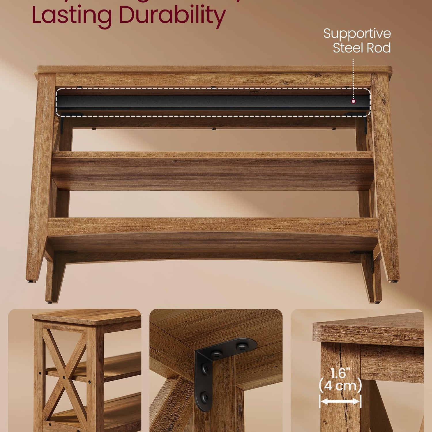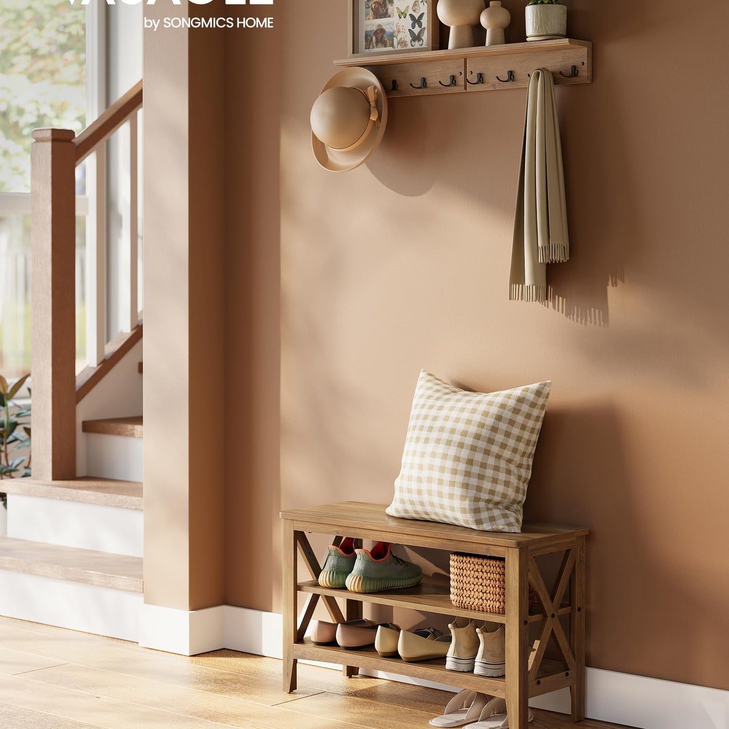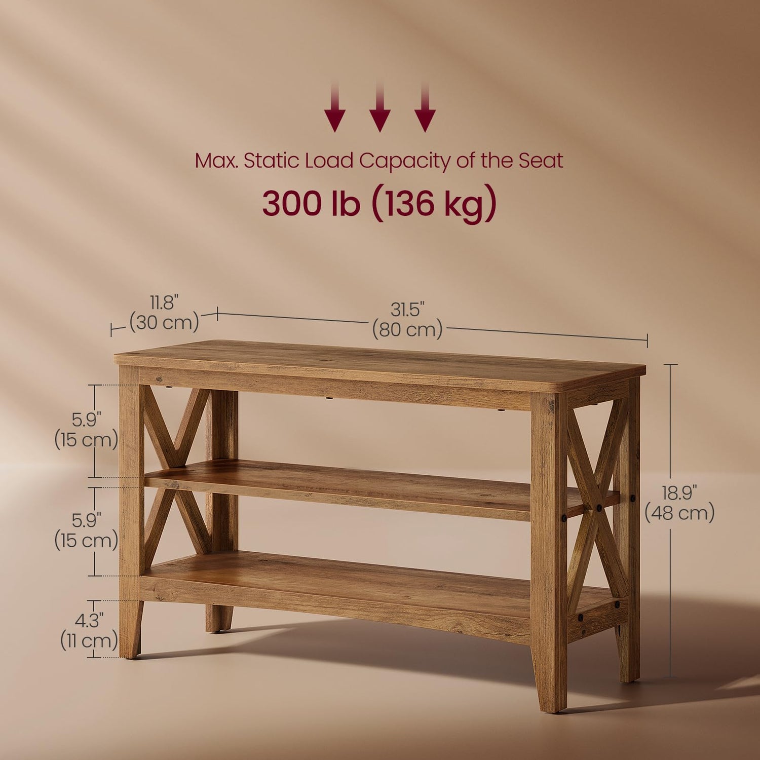 VASAGLE, Entryway Storage Bench, 2-Tier Shoe Rack, 11.8 x 31.5 x 18.9 Inches, Holds up to 300 lb, Farmhouse Style, for Living Room, Bedroom, Honey Brown ULSB053K41
