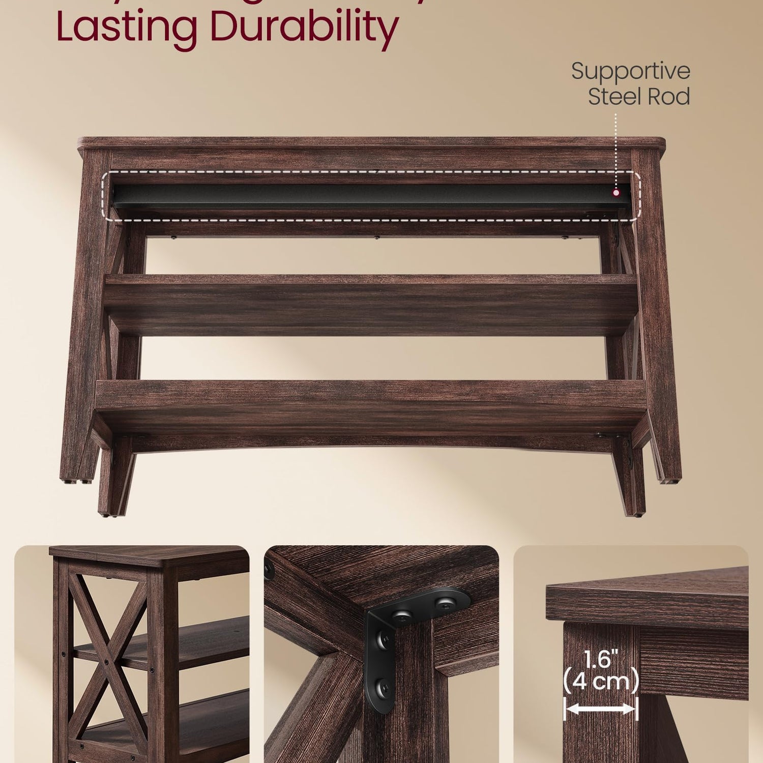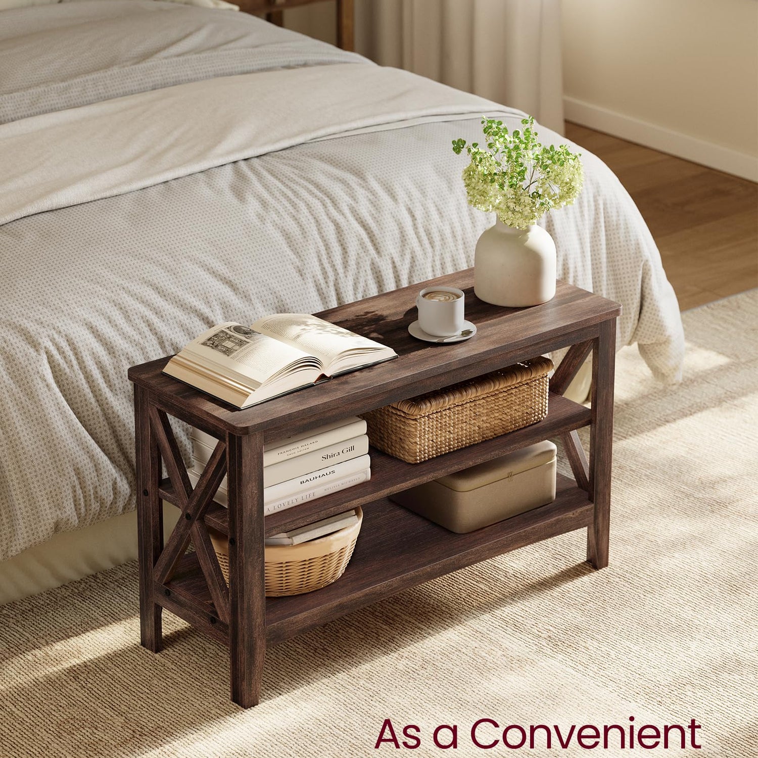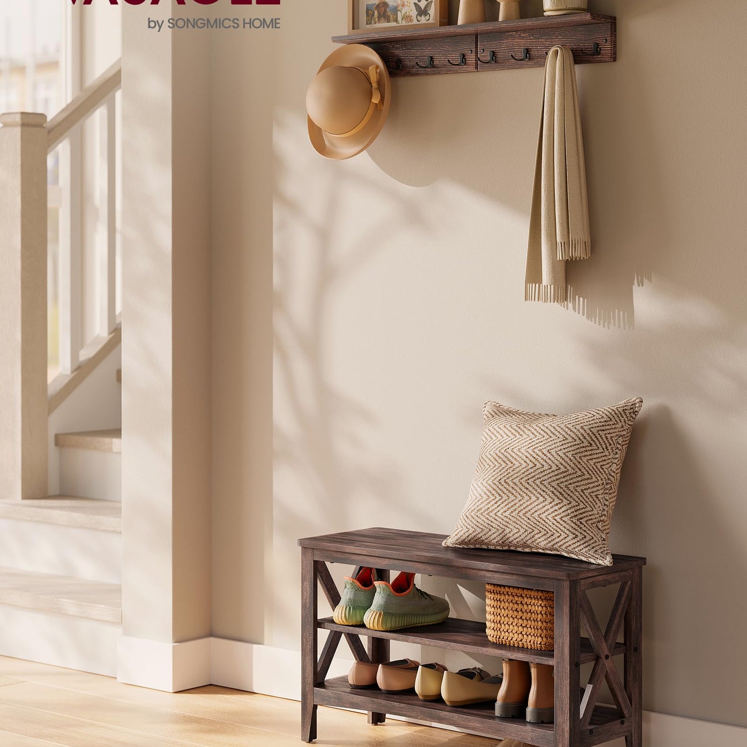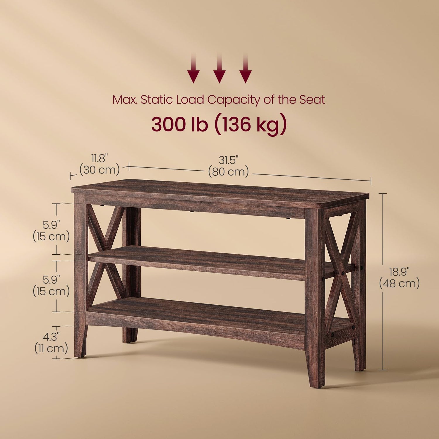 VASAGLE, Entryway Storage Bench, 2-Tier Shoe Rack, 11.8 x 31.5 x 18.9 Inches, Holds up to 300 lb, Farmhouse Style, for Living Room, Bedroom, Maroon Brown ULSB053K51