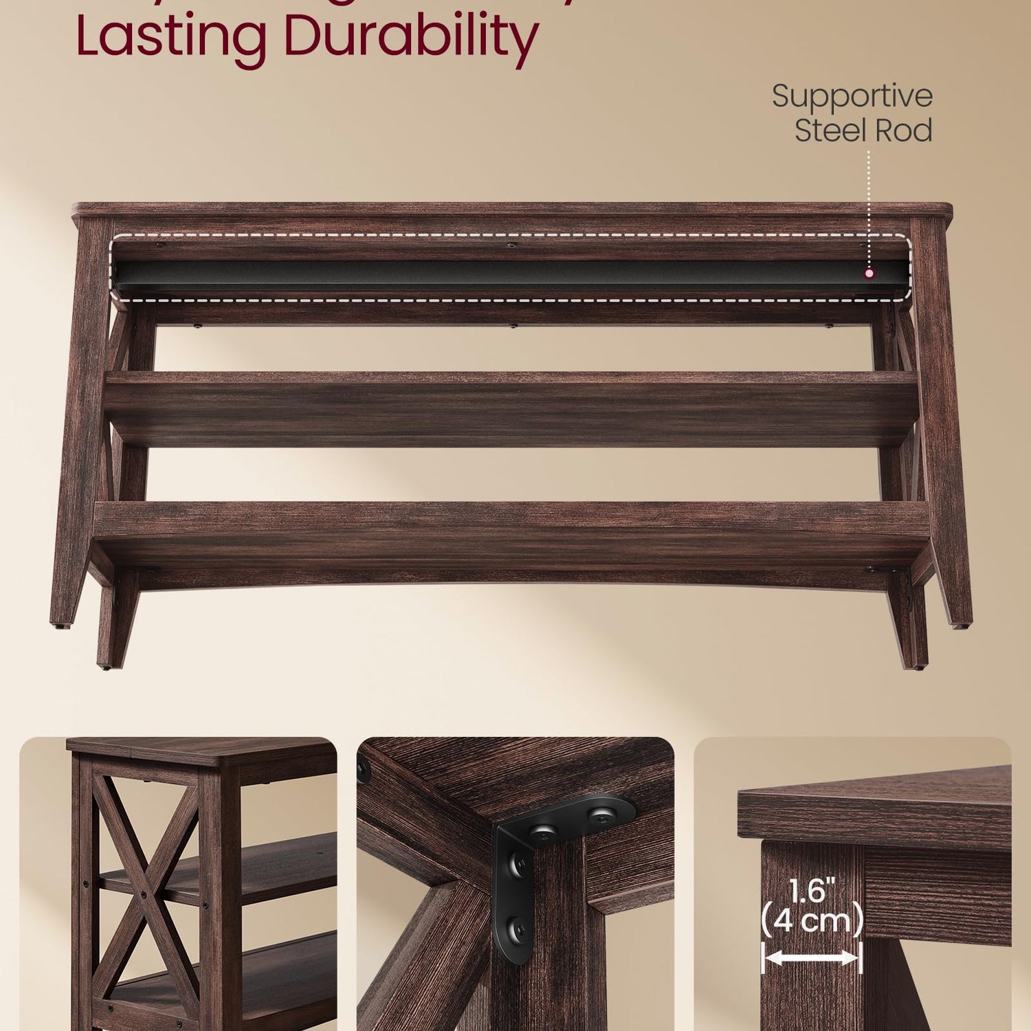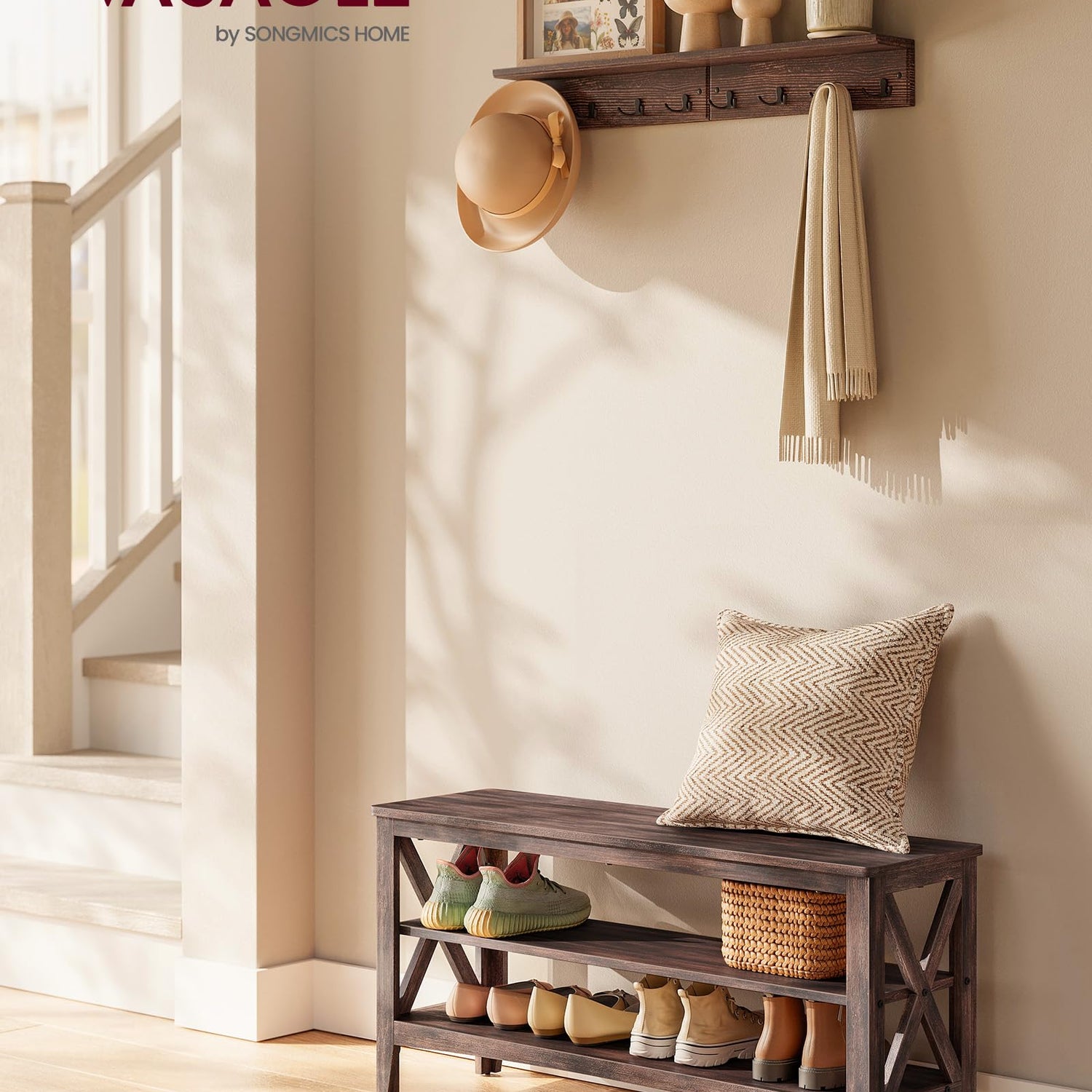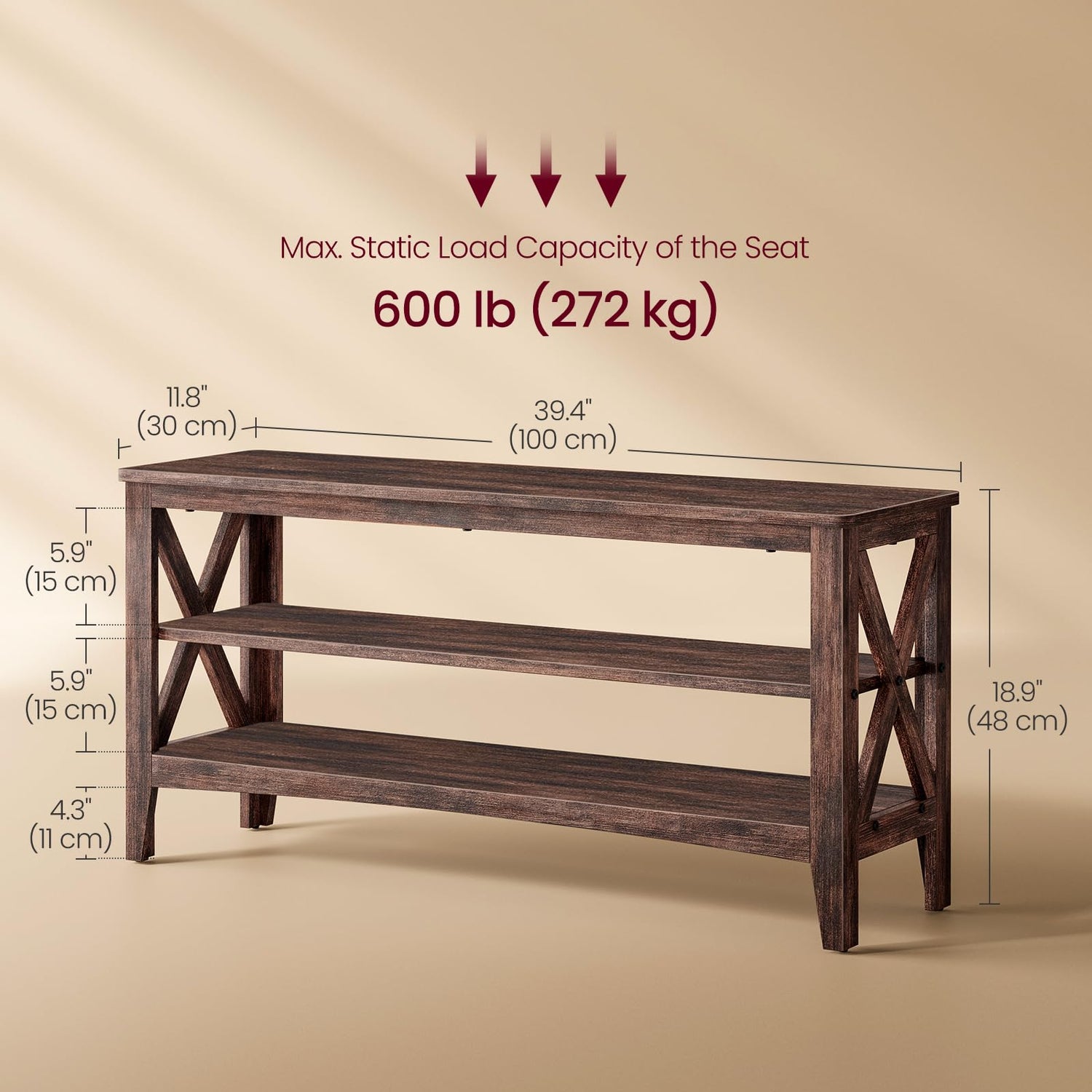 VASAGLE, Entryway Storage Bench, 2-Tier Shoe Rack, 11.8 x 39.4 x 18.9 Inches, Holds up to 600 lb, Farmhouse Style, for Living Room, Bedroom, Maroon Brown ULSB153K51