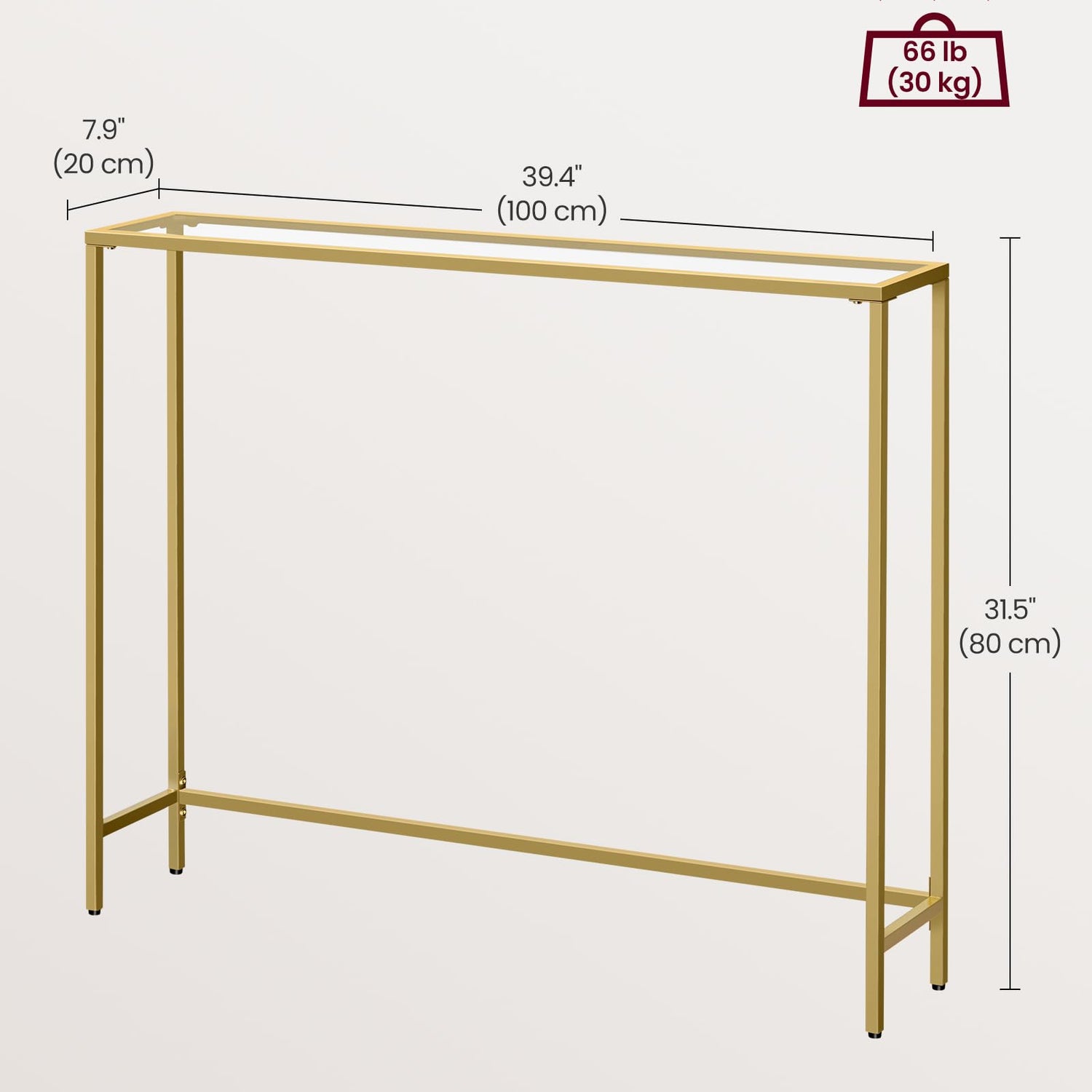 - [Strong Support] 5 mm thick tempered glass sits nestled atop the steel frame of this 7.9"D x 39.4"W x 31.5"H console table, offering sturdy support for up to 30 kg of plants, decorations, books, or cherished family heirlooms