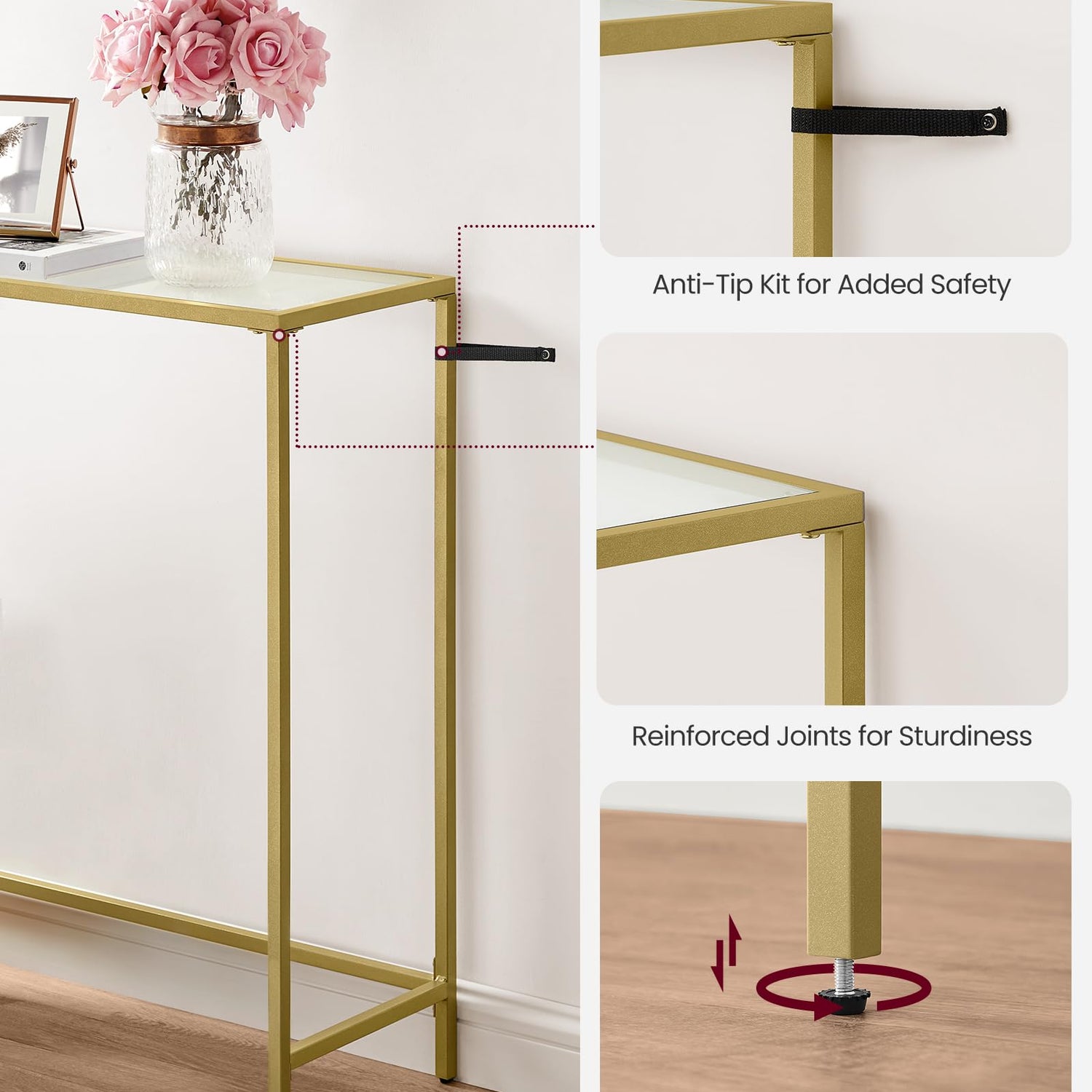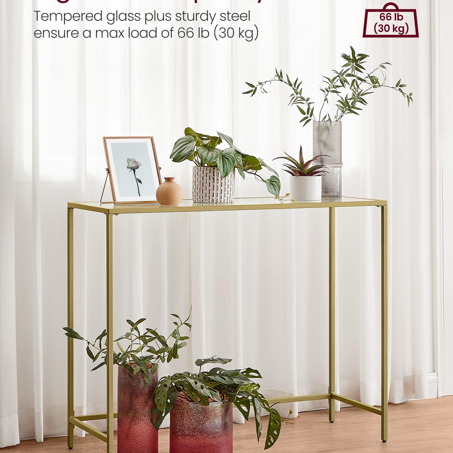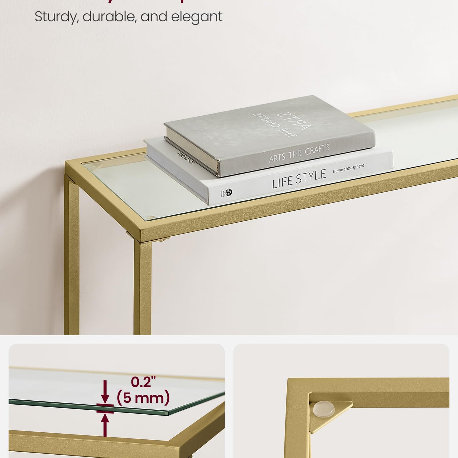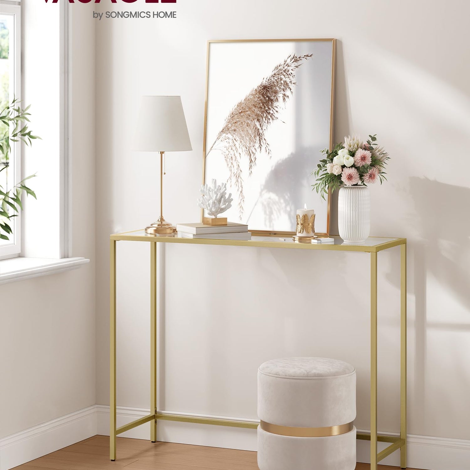 VASAGLE Entryway Table, Console Table, Tempered Glass Tabletop, Modern Sofa Table, Easy Assembly, with Adjustable Feet, for Living Room, Entryway, Pale Gold and Transparent ULGT132A01