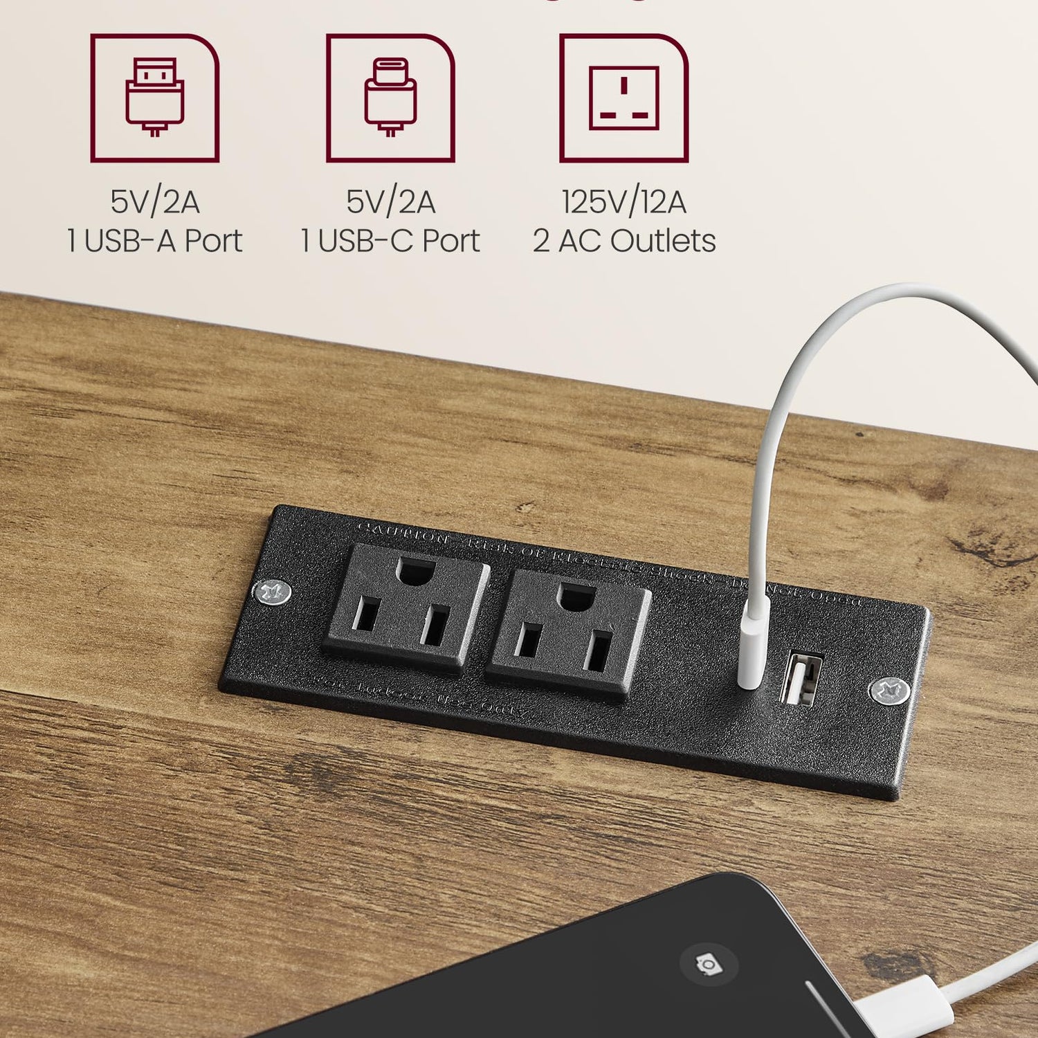 - [Convenient Charging Station] Stay away from low battery alerts with our nightstand's built-in charging station. It includes 1 USB-A port, 1 USB-C port, and 2 AC outlets, providing a handy power source for your devices