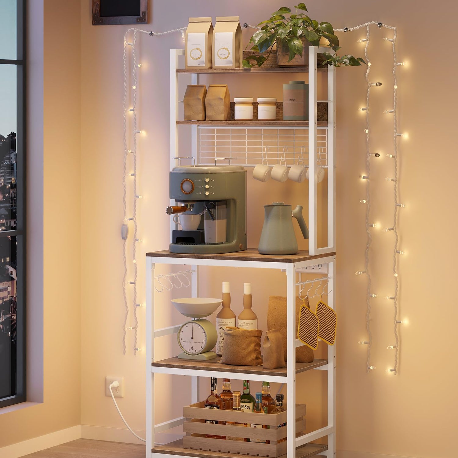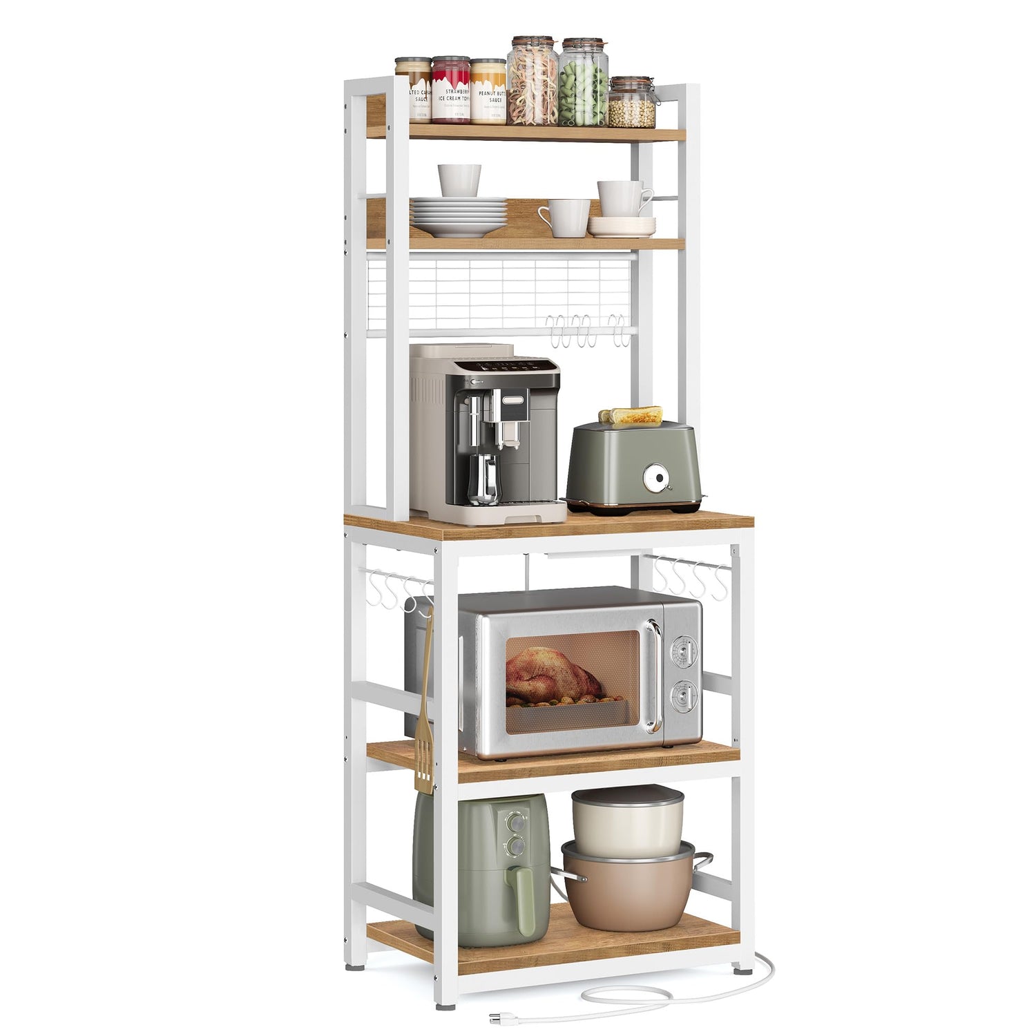 - [Safe, Reliable Power Strip] The built-in power strip of bakers racks for kitchens with storage features overload protection, leakage current protection, and an on-off switch that allows you to turn it off when not in use—all for safety!