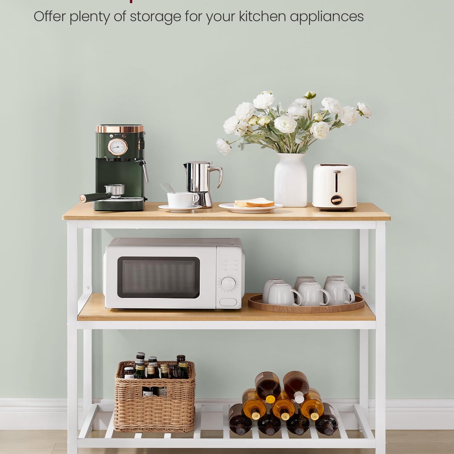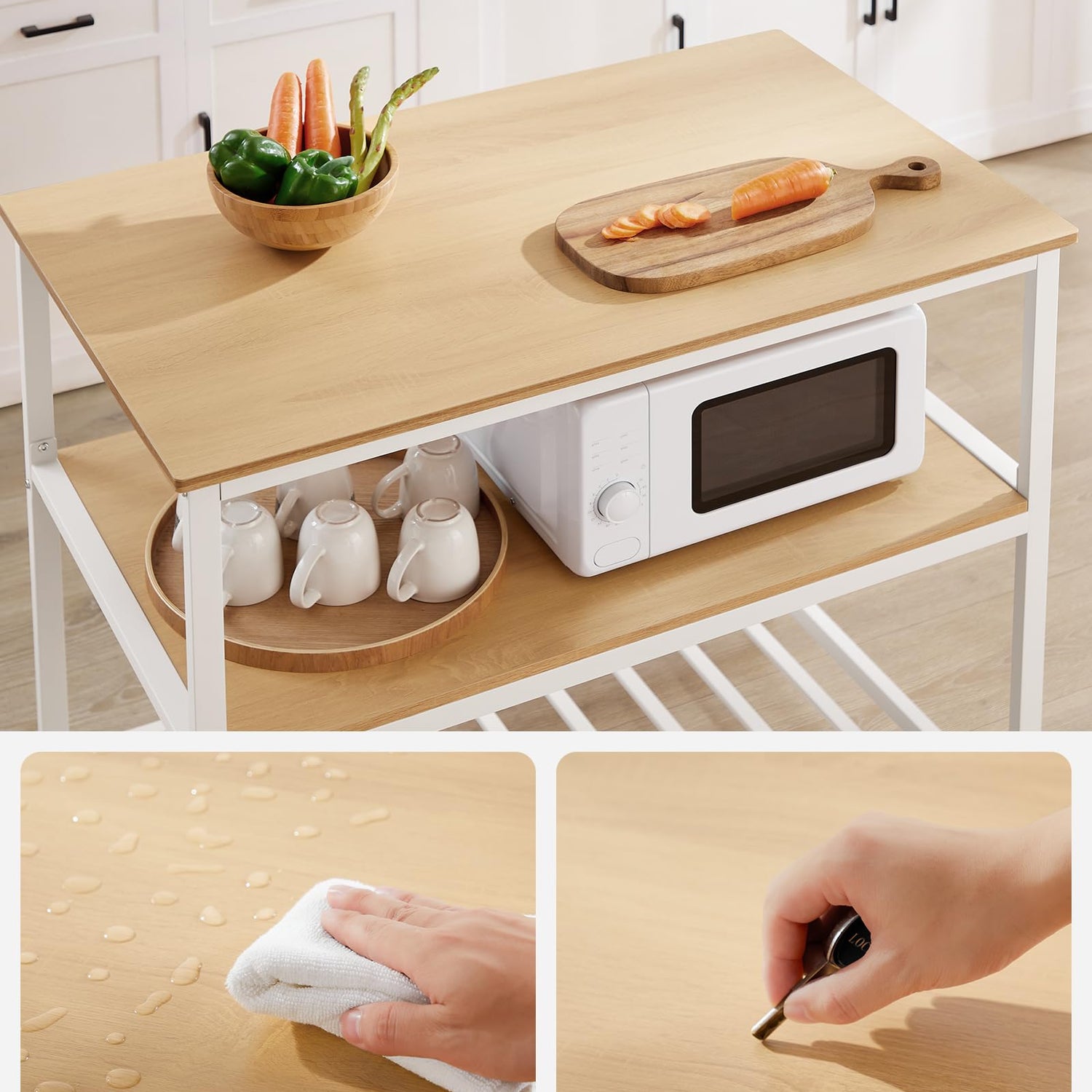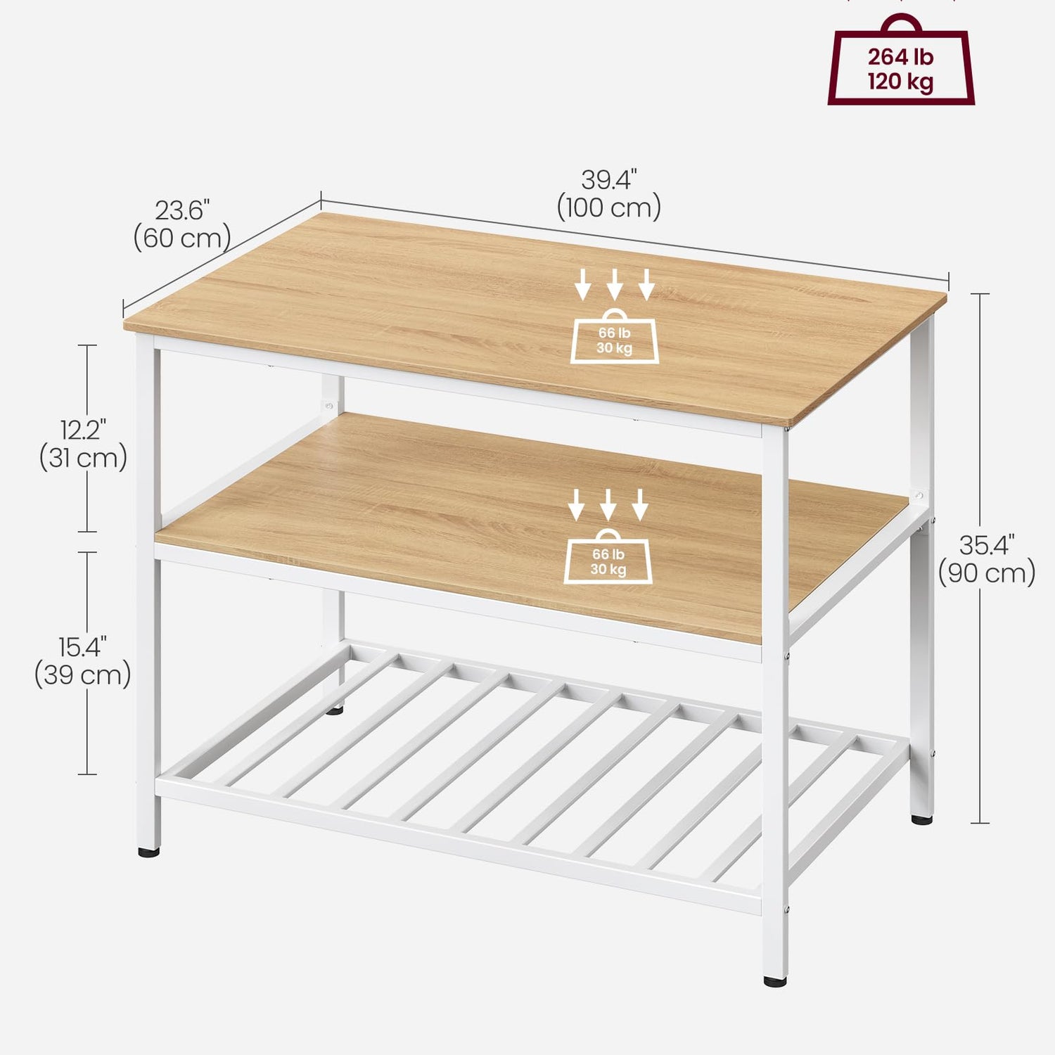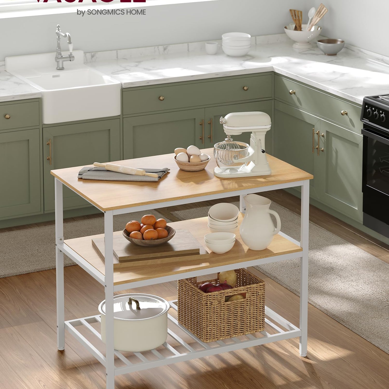VASAGLE 39.4-Inch Kitchen Island with 3 Shelves, Large Worktop, and Stable Steel Structure in Oak and White