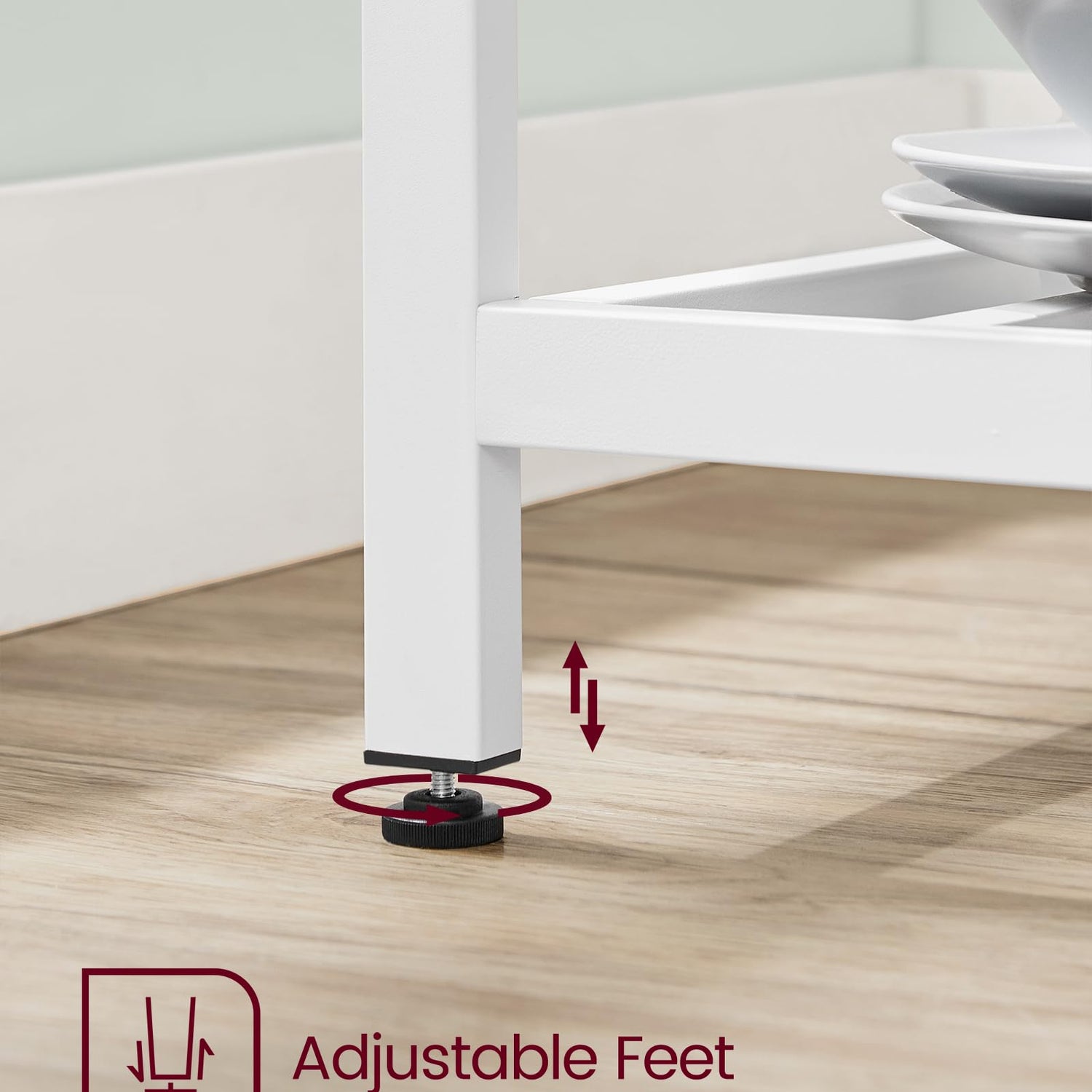 With its clever 3-tier storage solution, this kitchen island allows you to personalise your space. Showcase a beautiful flower vase or an elegant tea set on the top shelf, while the middle shelf accommodates kitchen appliances with ease. The lower grid shelf is ideal for stashing storage boxes and bakeware, ensuring everything you need is organized and within reach.
