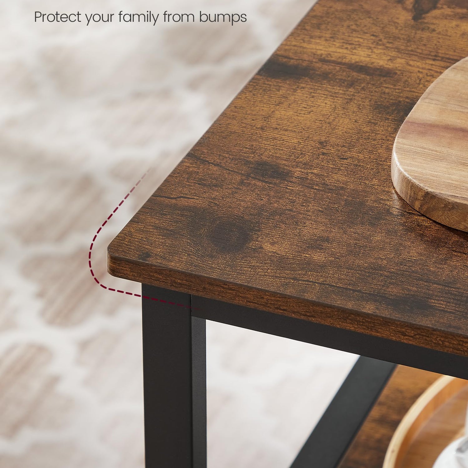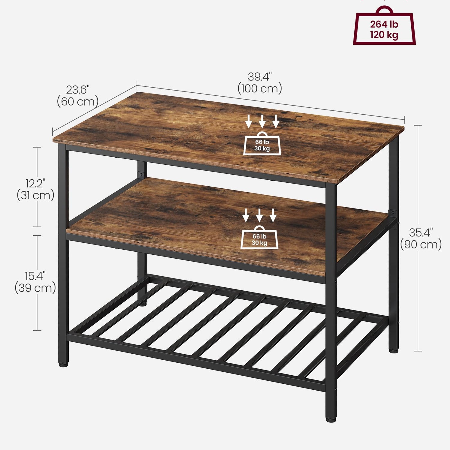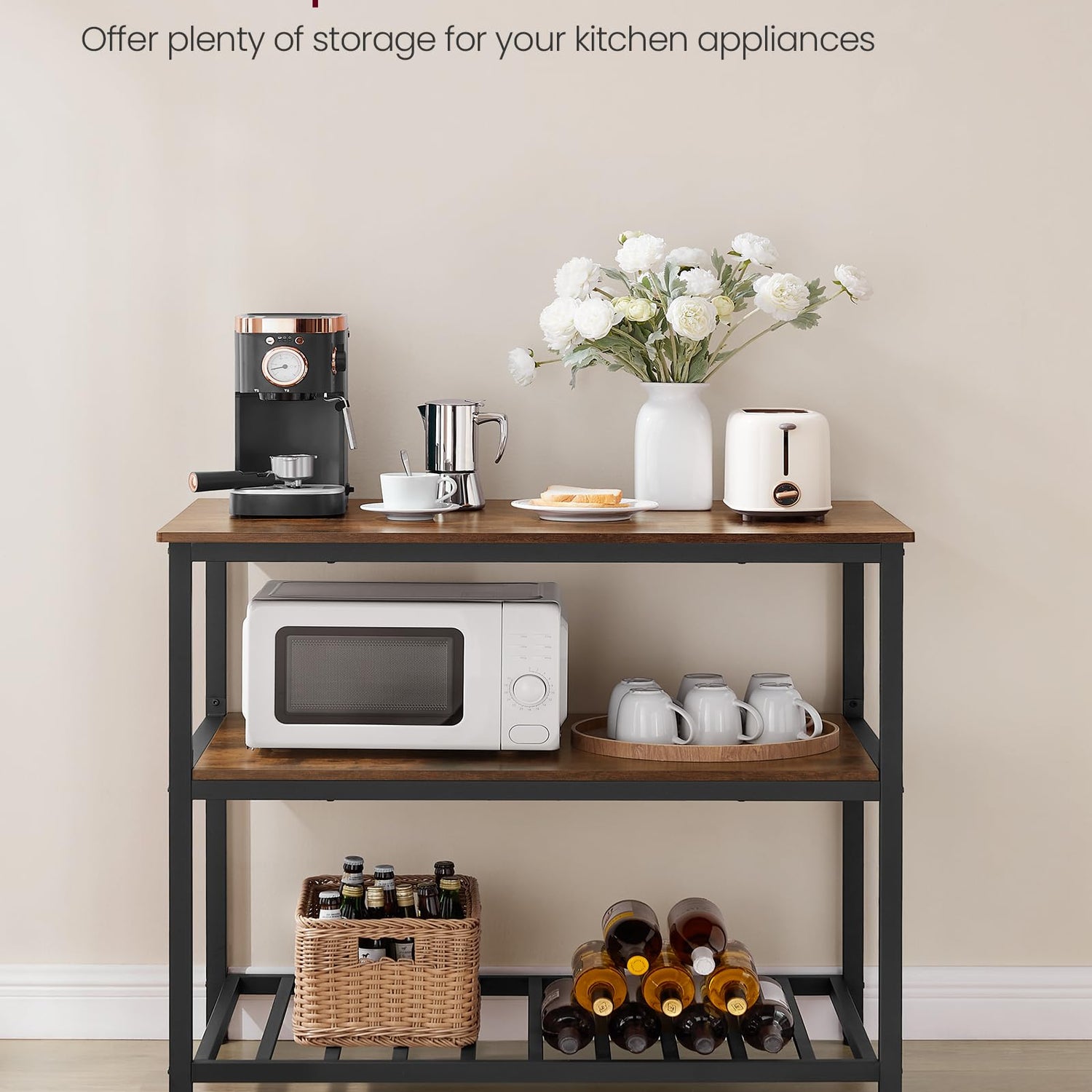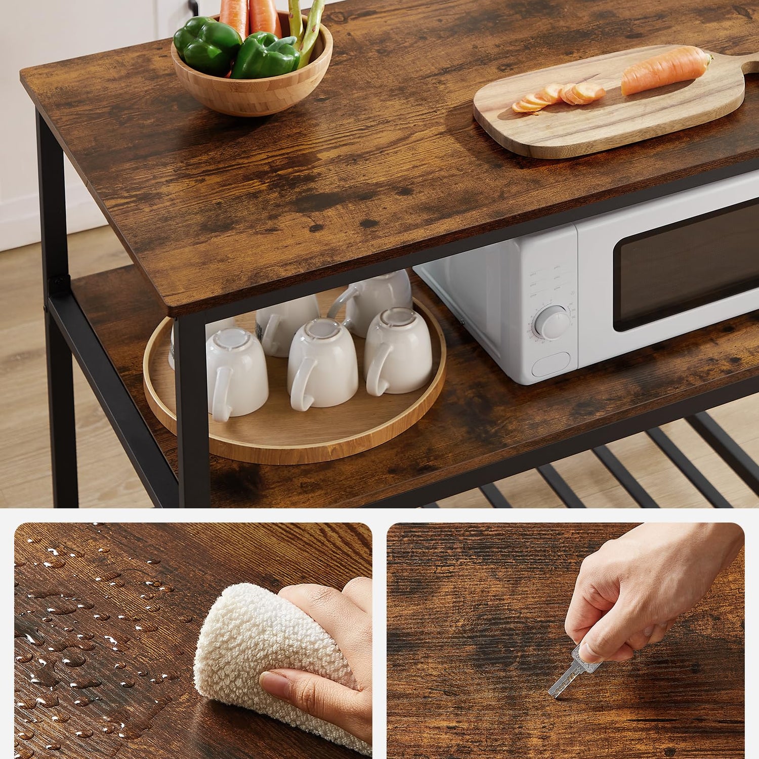 VASAGLE Kitchen Island with 3 Shelves, 39.4 Inches Width Kitchen Shelf with Large Worktop, Stable Steel Structure, Industrial, Easy to Assemble, Rustic Brown and Black UKKI005B01