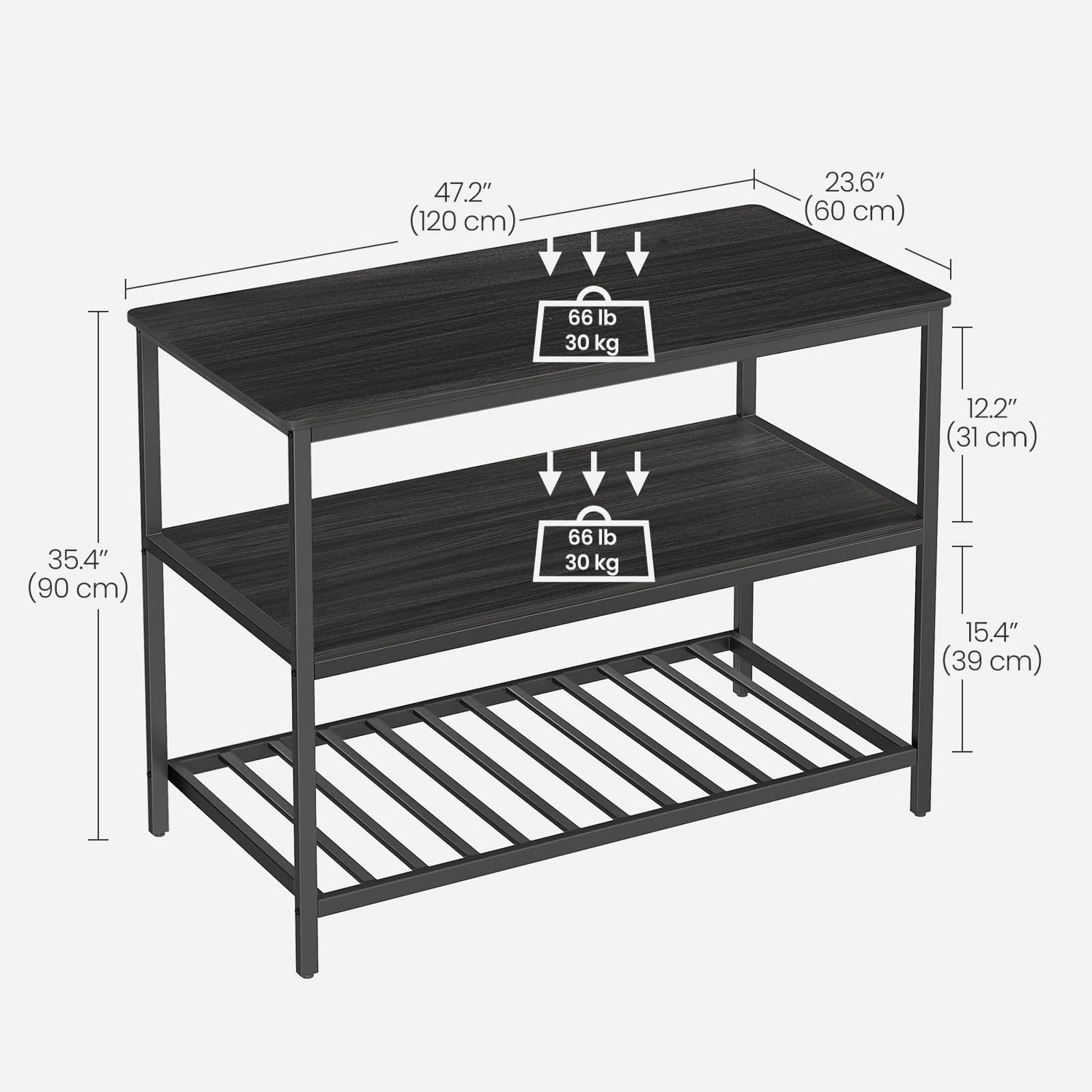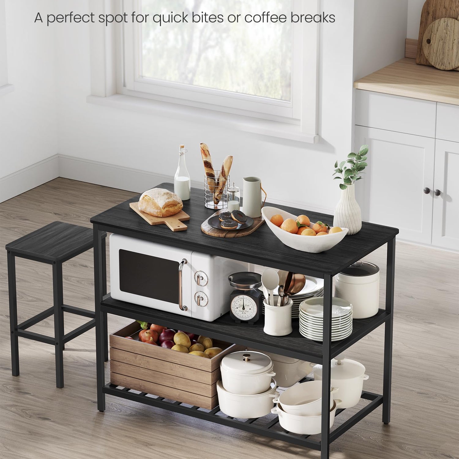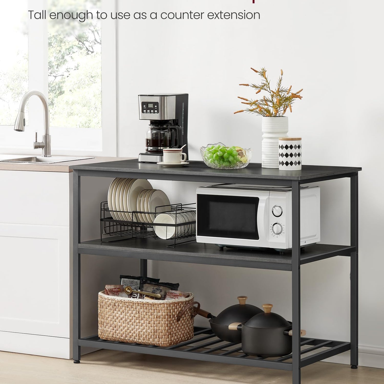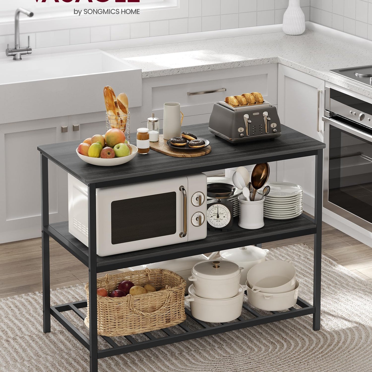 VASAGLE Kitchen Island with 3 Shelves, 47.2 Inches Width Kitchen Shelf with Large Worktop, Stable Steel Structure, Industrial, Easy to Assemble, Ebonised Oak and Black UKKI001B42
