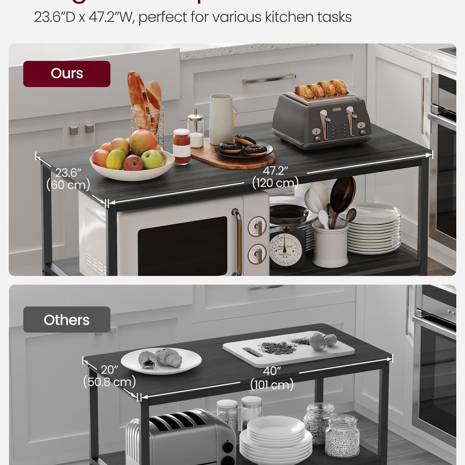 - [Large Worktop] The 23.6”D x 47.2”W surface of this kitchen island allows you to prepare food while being spacious to keep a toaster or coffee machine close by. Large worktop for great convenience!