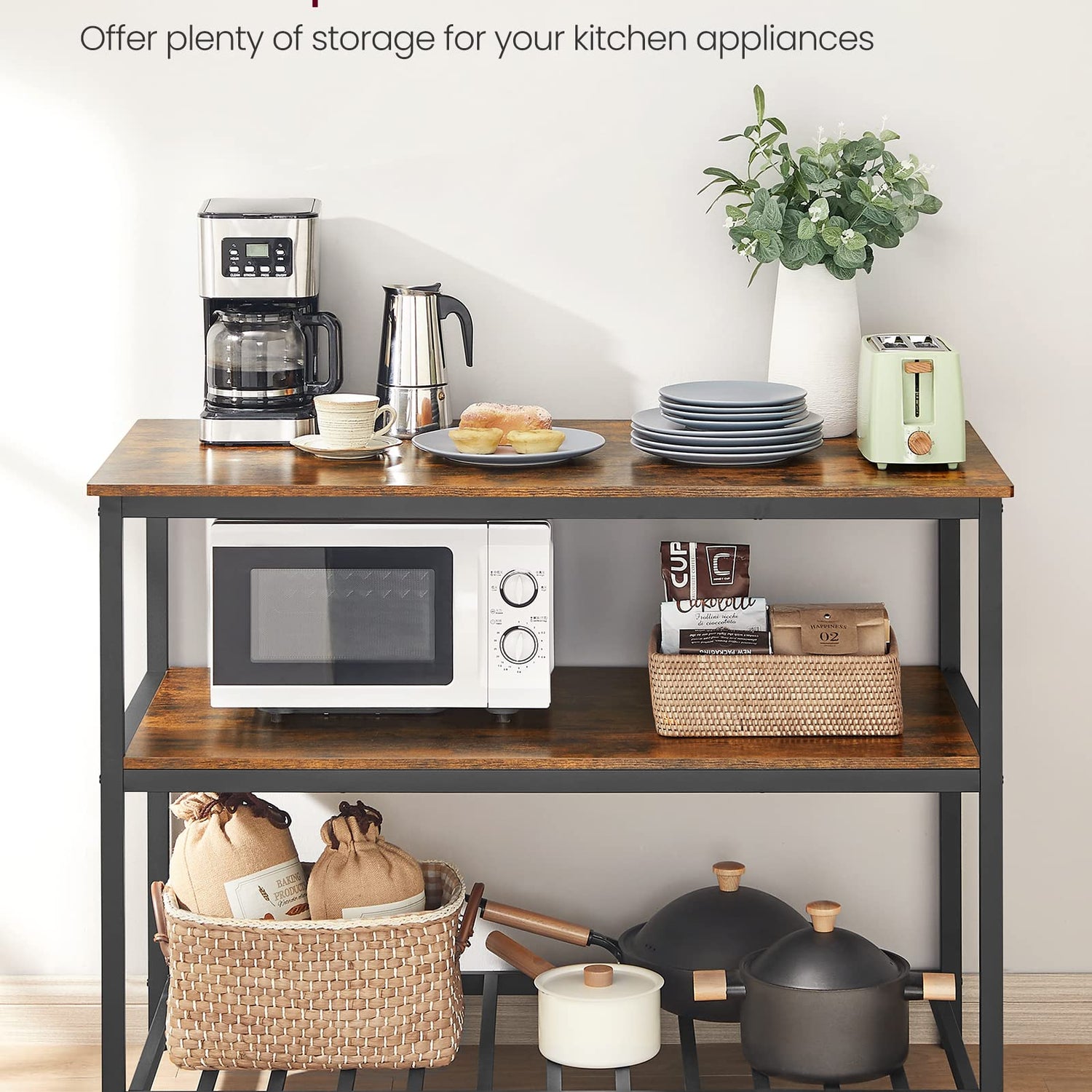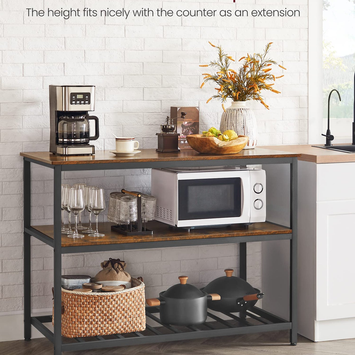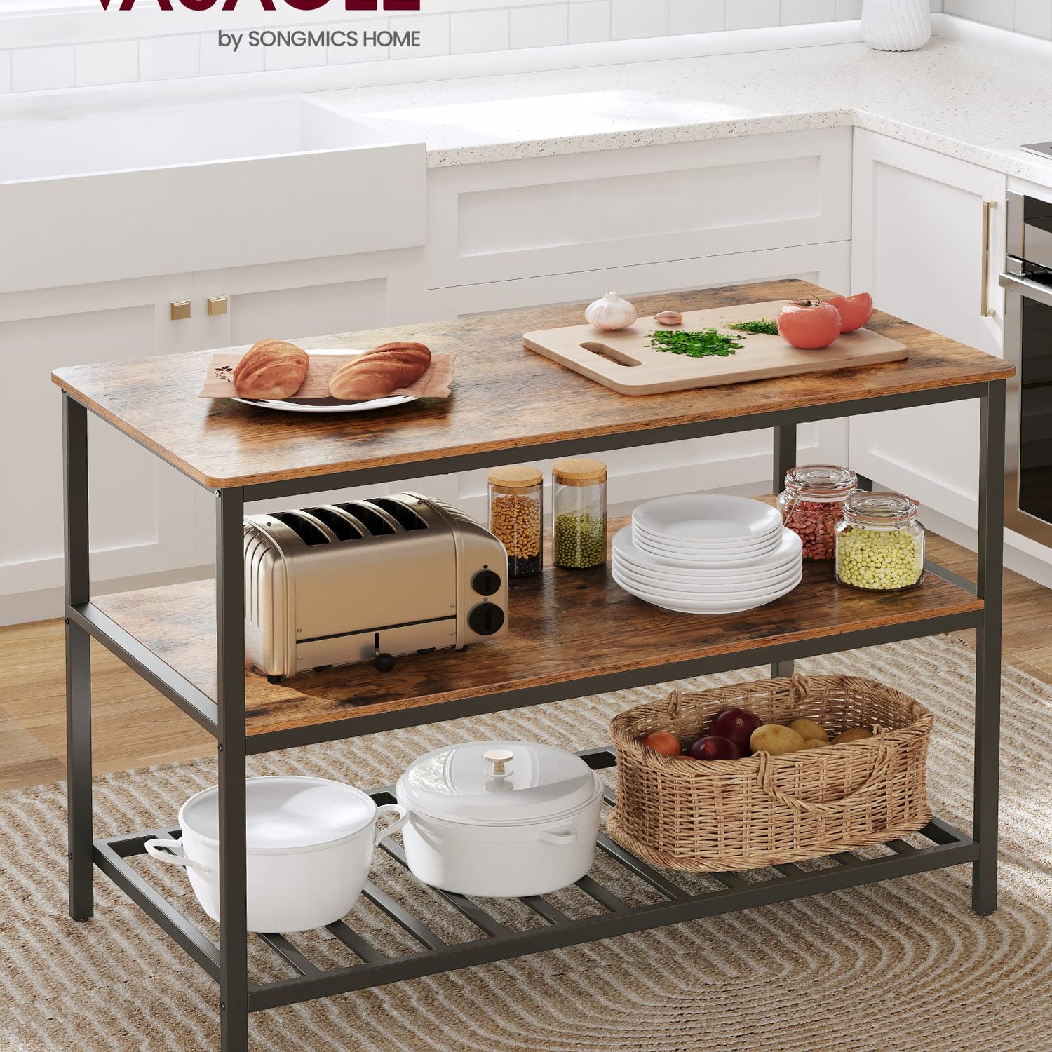 VASAGLE Industrial Kitchen Island with 3 Shelves and Large Worktop in Rustic Brown and Black